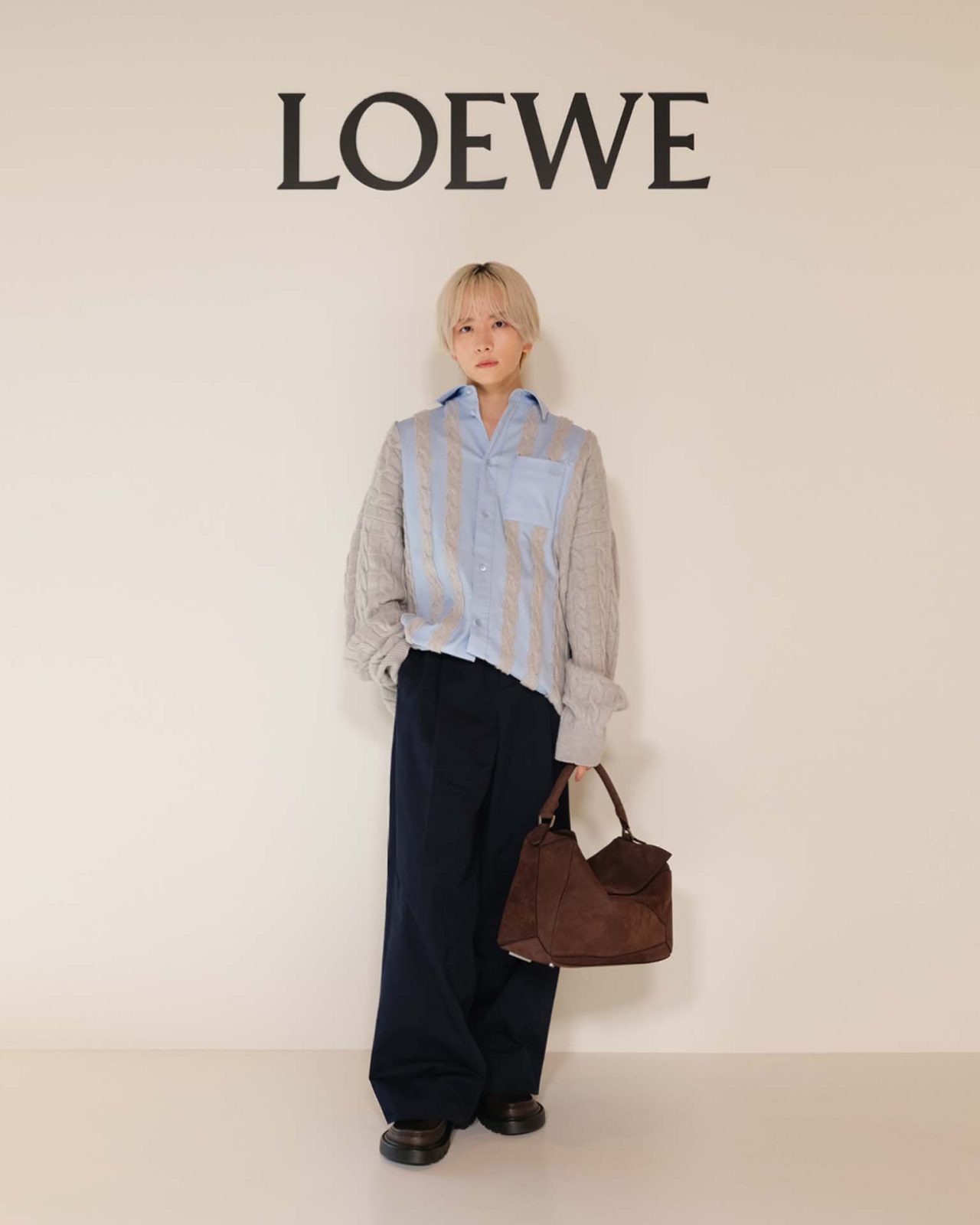 また、ブランドのクラフトマンシップに触れた、端正な佇まいと確かな演技力で幅広い世代から支持される俳優の向井理は、 「ロエベはクラフトマンシップというか職人さんが丹精込めて作っているというイメージがありますね。とにかく内装がすごく素敵で、最初にインパクトが大きかったのは 1 階の木(のデコレーション)があるところです。ちゃんとそこに花があったり、鳥が止まっていたり、細かいところまでこだわっているという印象が強いです。」と、その緻密な空間作りを絶賛。