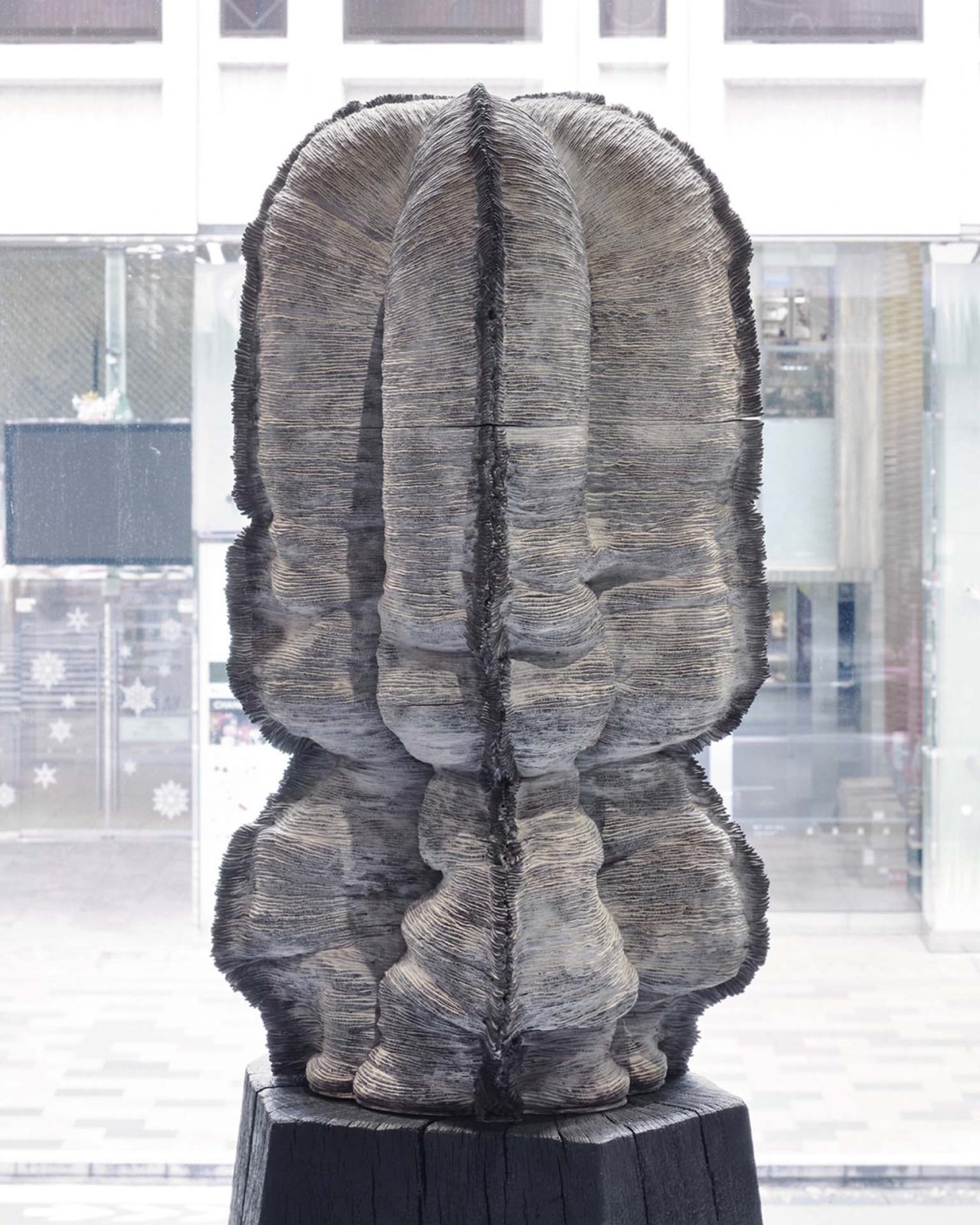 さらに、唯一無二のファッションセンスを持ち、アートへの造詣も深い俳優の板垣李光人は、 「プライベートで美術館に行ったり、アートの制作をしたりするのが好きなので、ショッピングしながらアートをたくさん見られるというのは、本当に感服だなと思いながらお店を回っていました。2 階に、陶器でできた粘土をぐるぐると巻きつけたような作品があったのですが、パッと見たときに生命力というか力強さみたいなものをすごく感じました。」と、店内に点在するアートピースとの出会いを振り返った。
