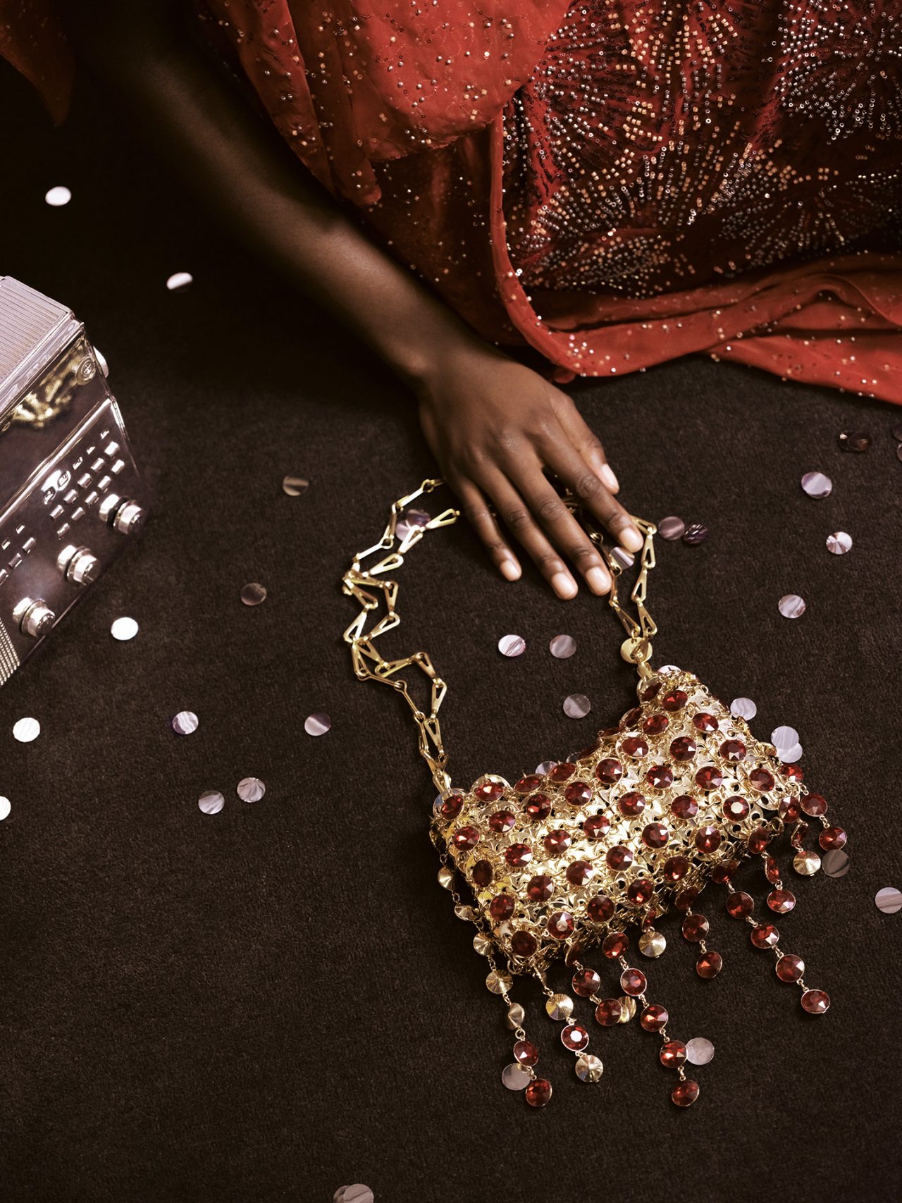 また今回のキャンペーンでは、ブランドのミューズであるシンガー Françoise Hardy (フランソワーズ・アルディ) に着想を得た60年代スタイルを、 rabanne ならではの視点で現代的に再解釈。そのムードが随所に漂っている。
