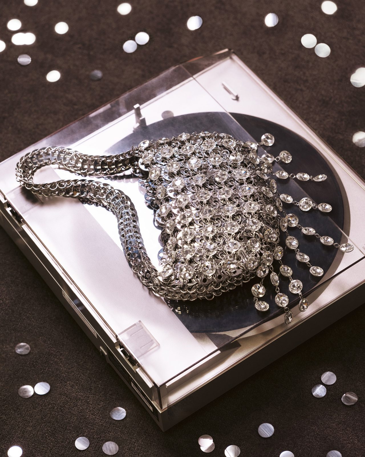 シグネチャーバッグにはジュエルのディテールがきらめき、新作バッグやフラップタイプも加わり、ラインナップはさらに広がりを見せる。アールデコから着想した煌めくタッセルや、マイラーバルーンを想起させるリンクなどのアクセサリーが揃い、スタイリングに大胆さを加えることも、さりげないウィットを添えることも自在に。