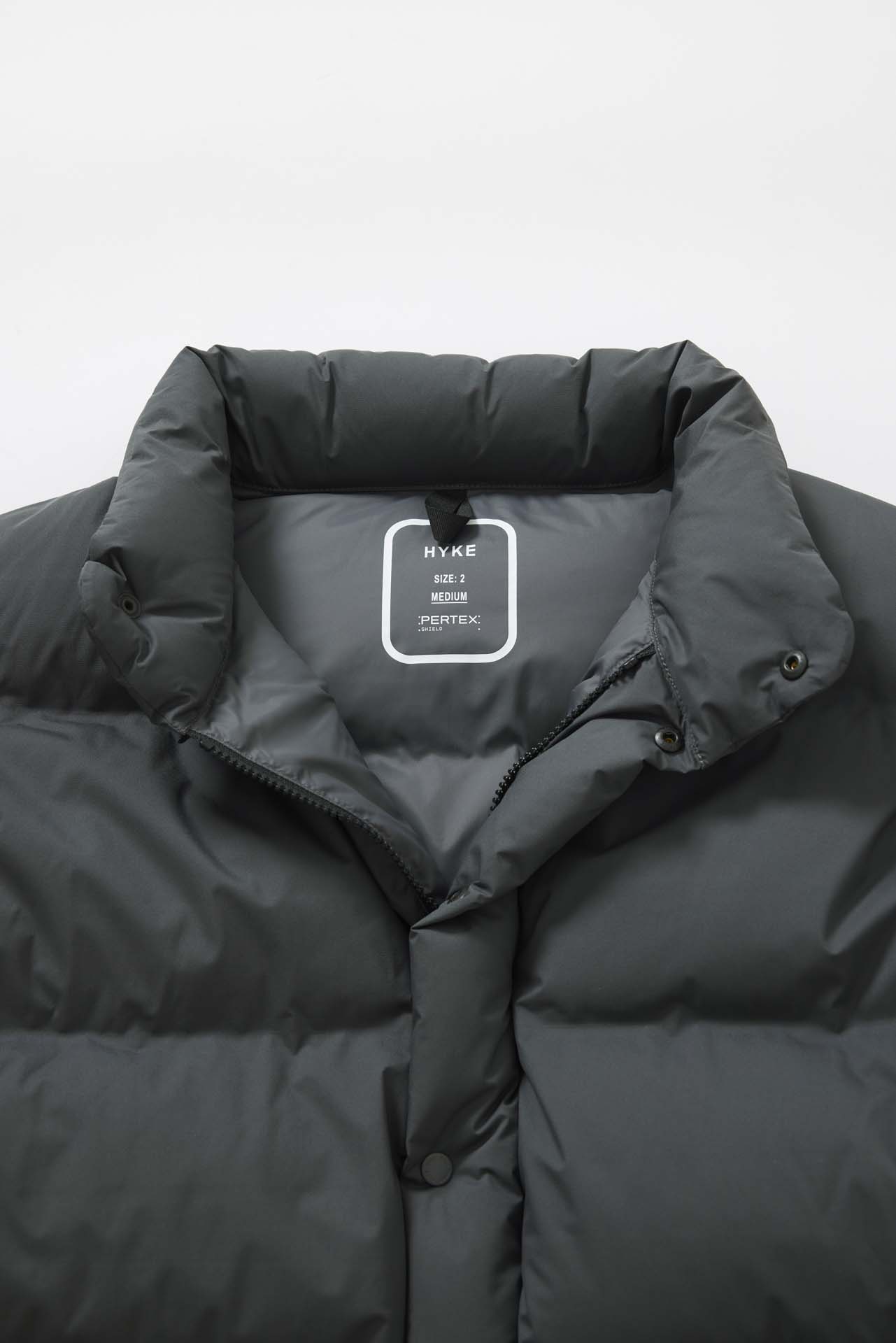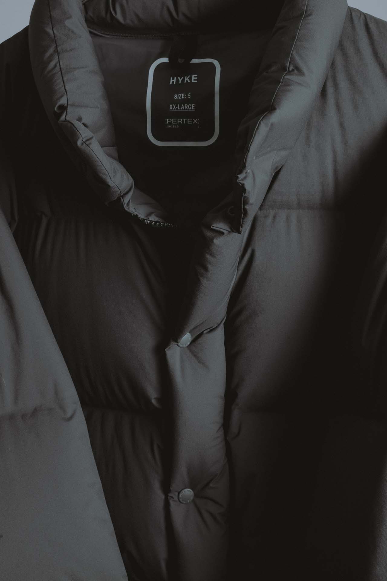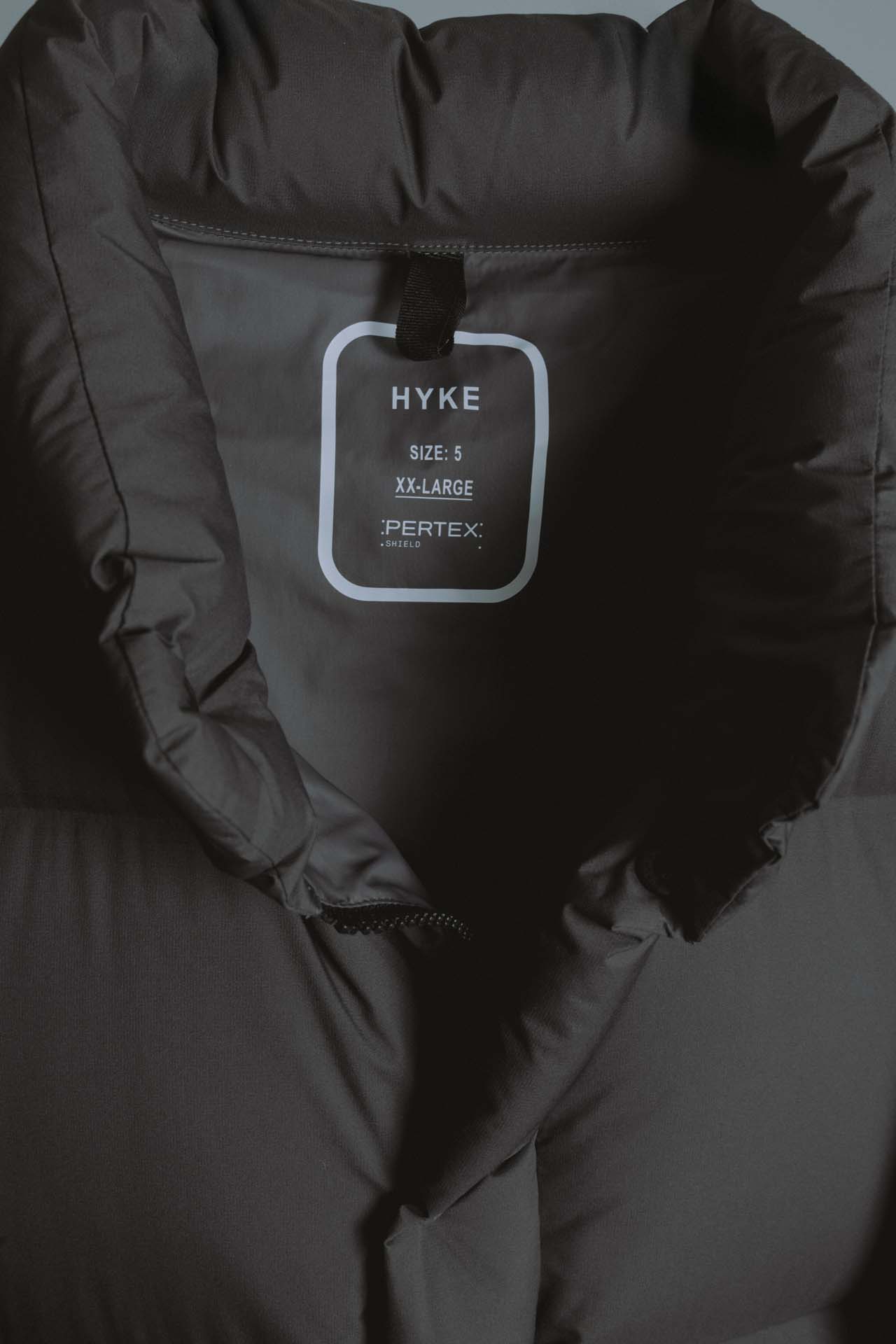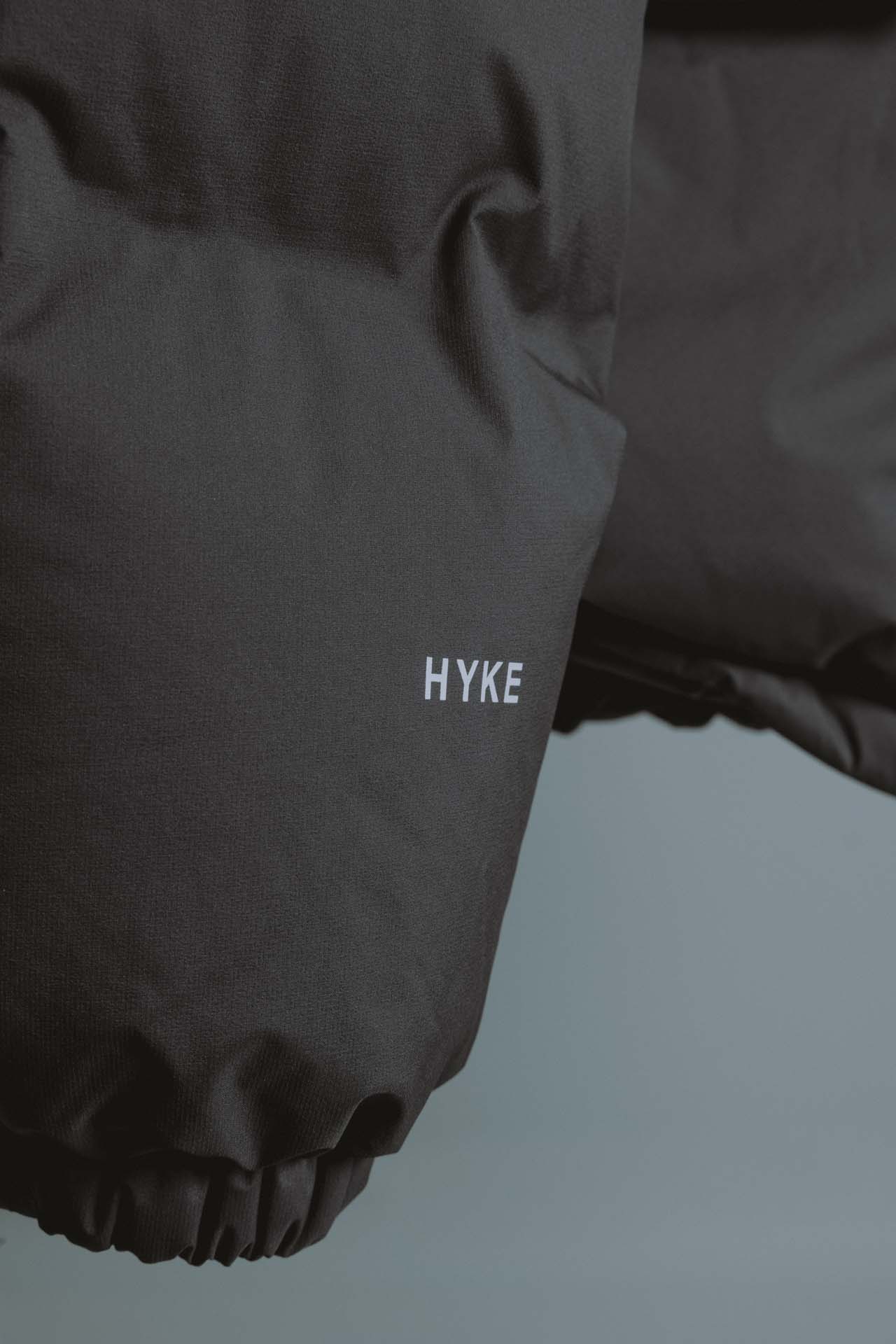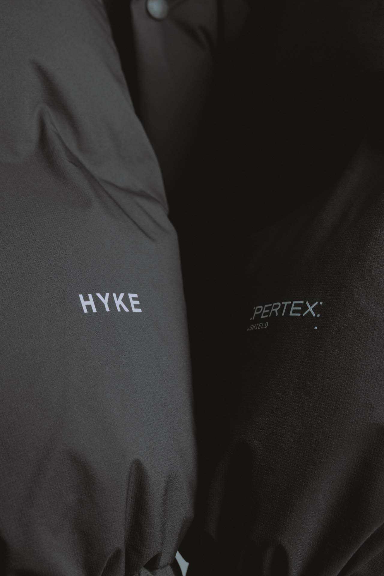 中綿にはダウン80%、フェザー20%を使用し、水濡れにも強く、高い防寒性と防風性を確保。軽量性と機能性を両立しながら、冬のあらゆるシーンに対応する仕上がりとなっている。サイズはユニセックスで着用可能な5サイズ展開。右袖には HYKE、左袖には PERTEX®︎ のロゴを配し、裾にはドローコードを備えることでシルエットの調整も可能だ。