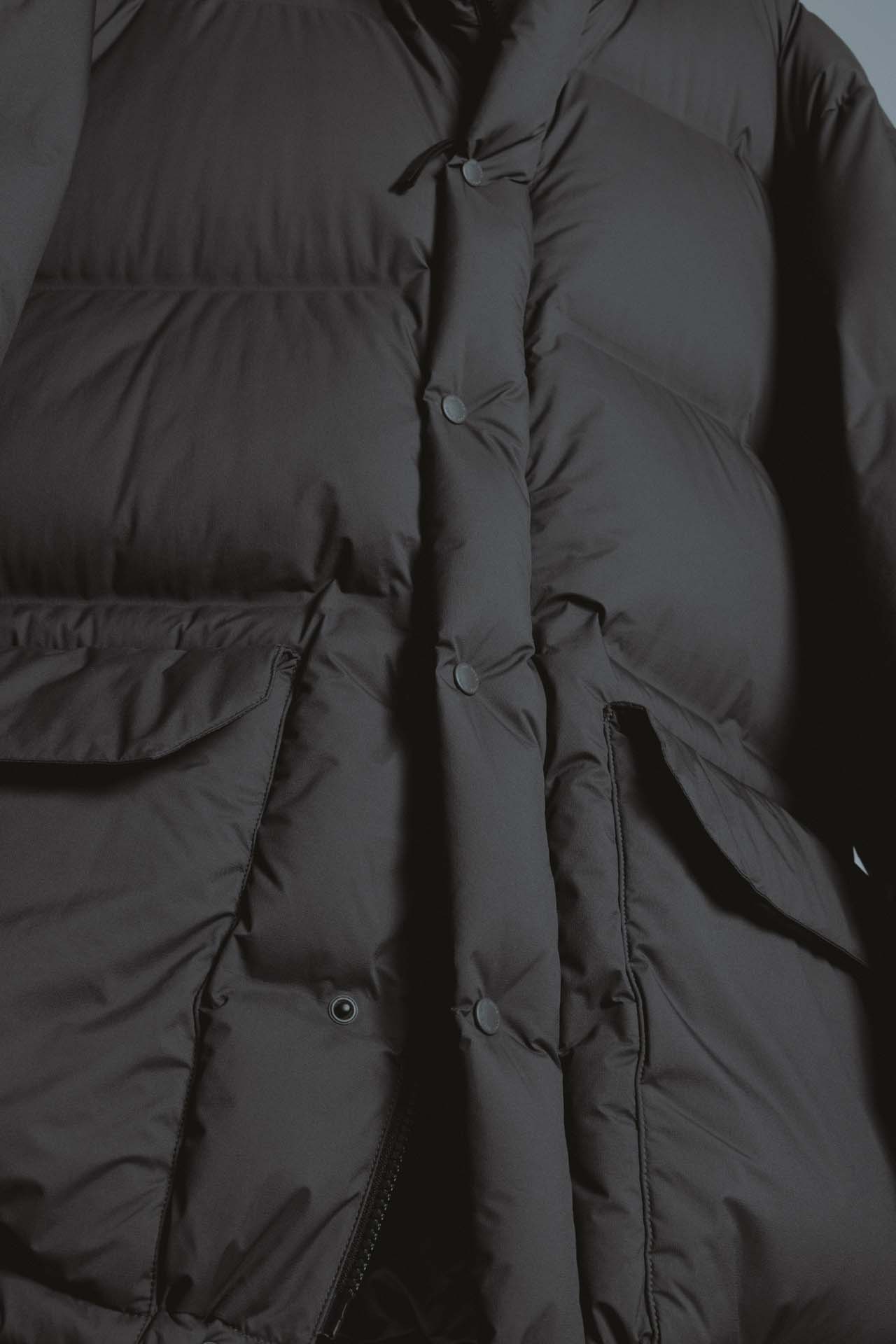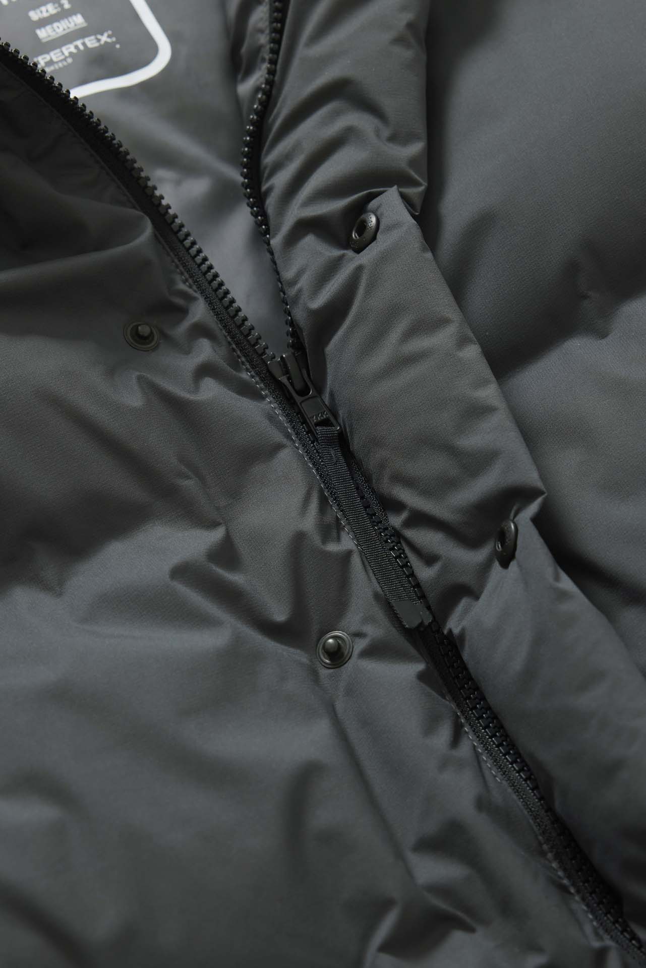 1970~80年代のクラシックなダウンジャケットから着想を得たデザインは、たっぷりとしたシルエットとボリューム感が特徴。表地には、防風性と耐久性を兼ね備えた「PERTEX®︎ SHIELD」を採用し、マットで落ち着いた質感によって現代的にアップデートされている。裏地には「PERTEX®︎ QUANTUM」を使用し、滑らかな肌触りと快適な着心地を実現した。