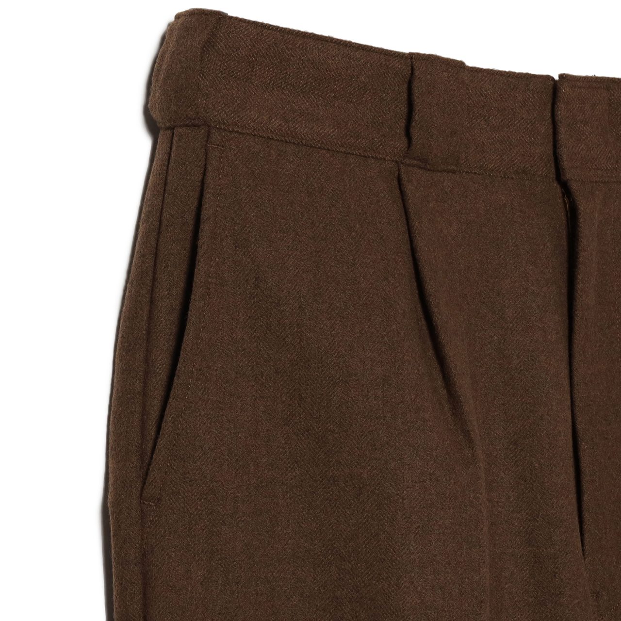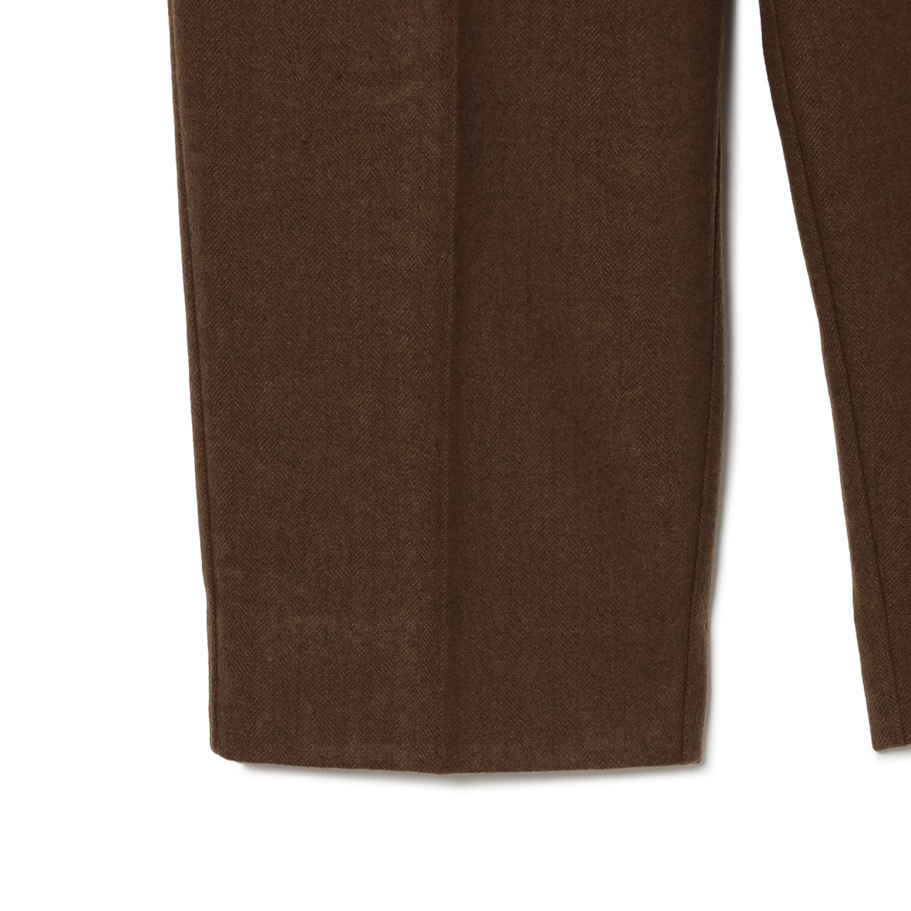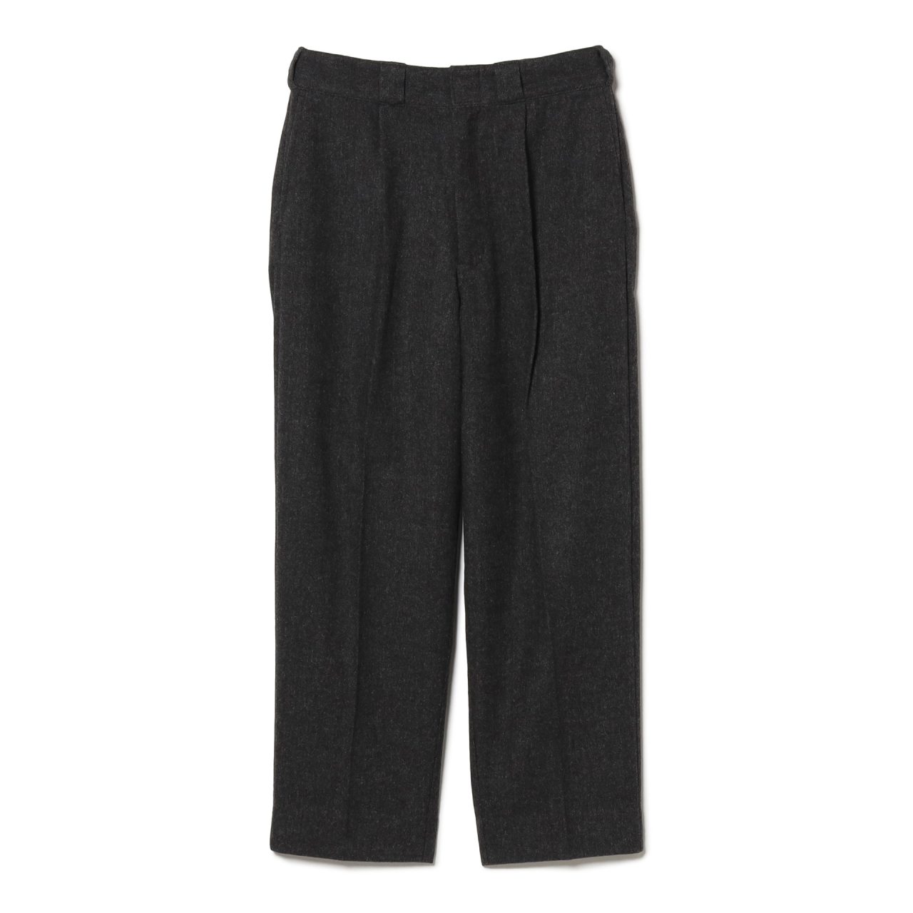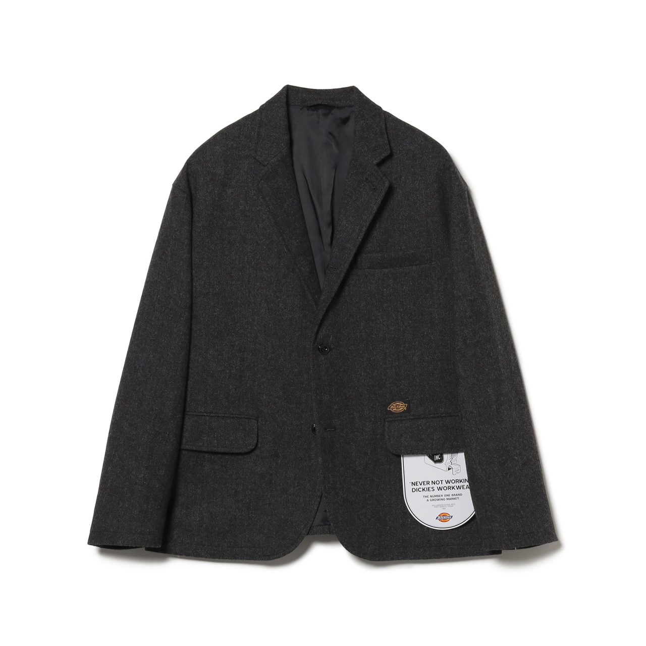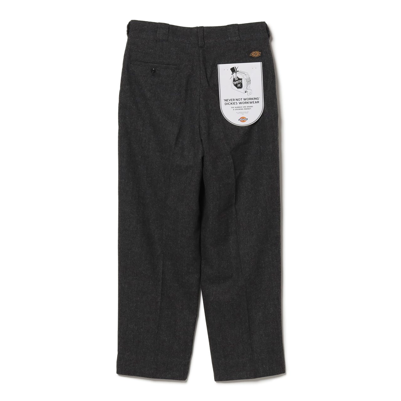 今回で第8弾となる TRIPSTER と Dickies® のコラボレーションシリーズ「紳士服の Dickies®」。今回は、2019年以来となるツイード仕立てのセットアップとなり、保温性と吸放湿性を兼ね備えた1着に仕上がった。他の生地では表現し得ない、柔らかな凹凸感と奥行きのある陰影が、落ち着きのある洗練された存在感を演出する。シルエットは、前回の第7弾に改良した仕様をそのまま落とし込み、ジャケットは胸の開き具合を程よく狭め、ショート丈のボクシーなフォルムに。ツイード特有の質感が加わることで、よりドレッシーで端正な佇まいを表現。太ももから足首にかけて緩めのテーパードが施されたタック入りのパンツは、フォーマルな印象を際立たせている。