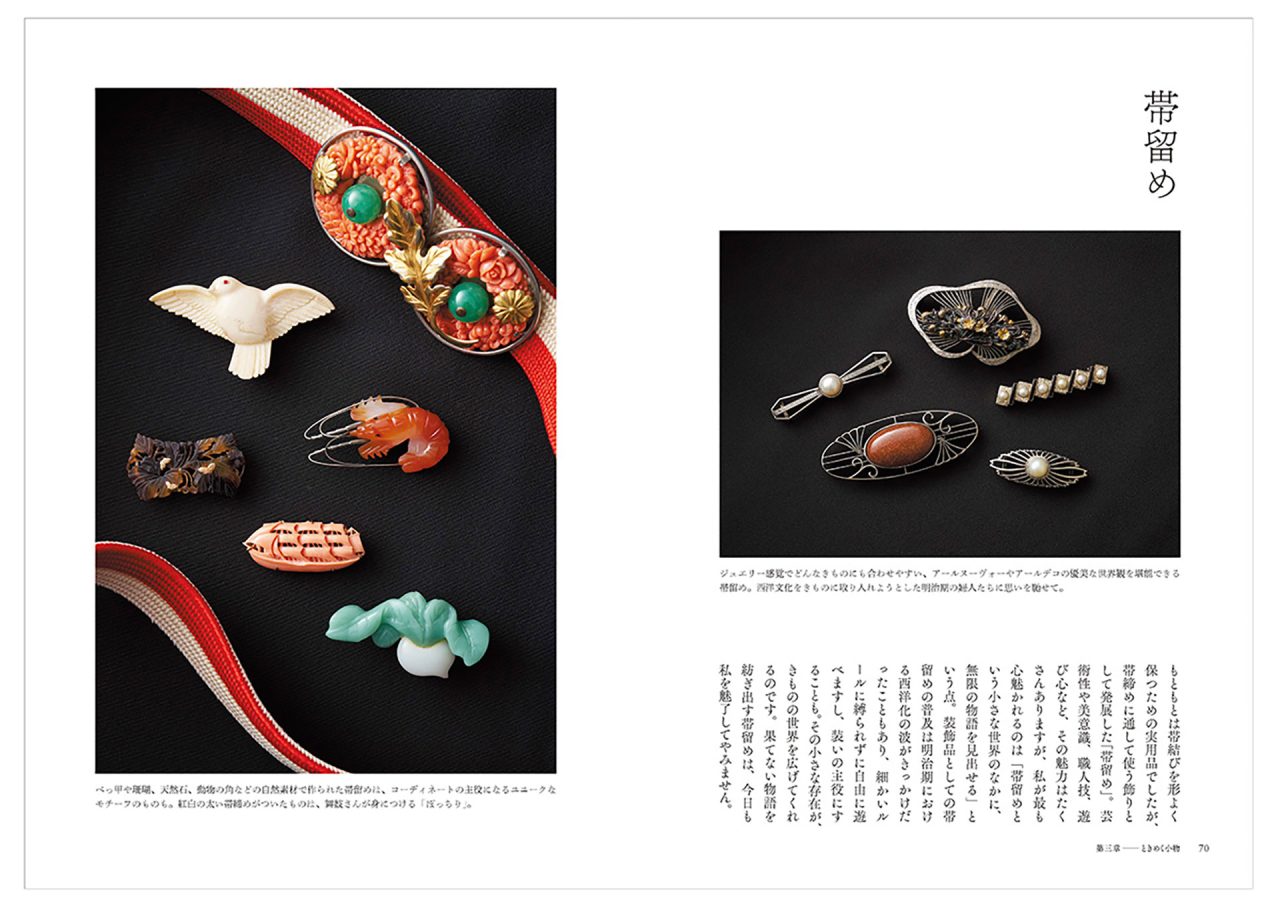 きものをワードローブのチョイスとしてとらえてほしい。そんな思いから、きものを愛するひとはもちろん、これまできものに馴染みがなかった人も楽しむことができる一冊『きもののとりこ』。本書では、きものの種類や着分け方などをわかりやすく解説するほか、ユリア流カラーコーディネートの提案、帯留めやバッグといった小物選びをレクチャーしてくれる。また、「きものの姿はヘアスタイルで50%決まる」と語る彼女ならではの、きものに合わせたヘアスタイルカタログまで紹介されている。最終章では、マドモアゼル・ユリアお墨付きの、きものや和の小物が揃う専門店、アンティークショップ、飲食店、感性を刺激するミュージアムなど、東京と京都の珠玉のスポットが掲載。