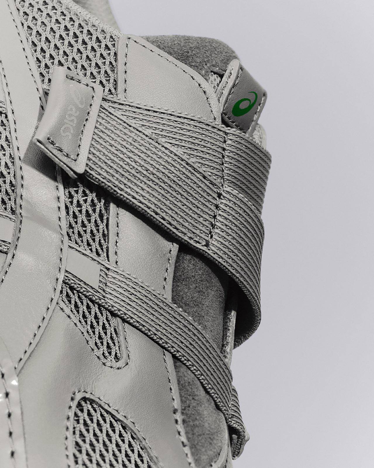 また、細身のレスリング用ラストをベースに、日常履きを想定して幅を広げた新たなラストを開発し、底設計ながら軽やかな履き心地を実現。さらに、アッパーには複数のレザーとメッシュを配し、象徴的な蛍光グリーン、オールブラック、オールグレーの3色で展開。シンプルなスタイリングのアクセントになるカラーリングがラインナップする。
