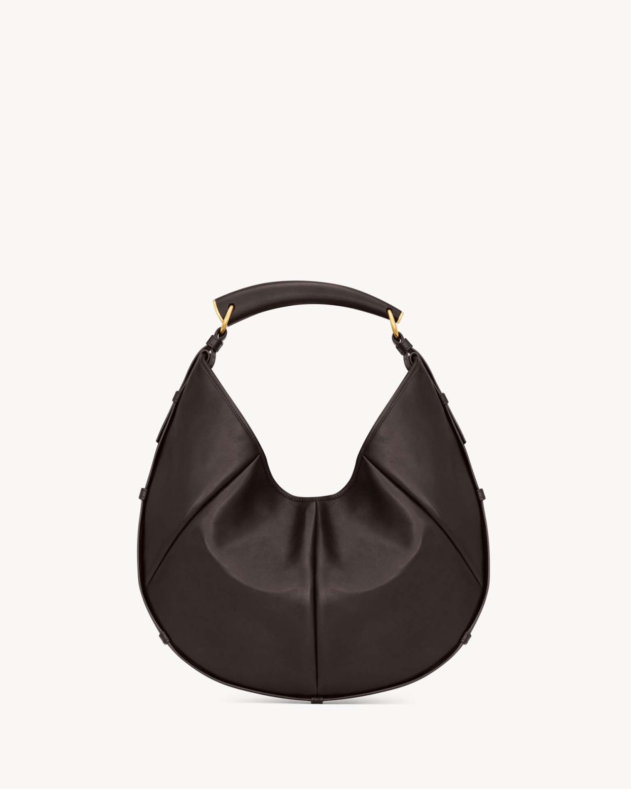 ラージとミディアムサイズには、上質なスエードのライニングと機能的なインナーポケットが備わり、クラフトマンシップが光るレザーハンドルで仕上げている。素材には、独特の質感が魅力のクシュヴェルレザーや、リュクスなポニーレザーを採用。カラーパレットは、タイムレスなブラックに加え、落ち着いたサンタル、深みのあるルージュカベルネの3色が揃う。