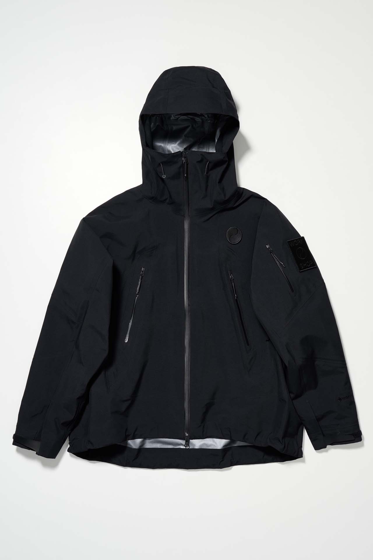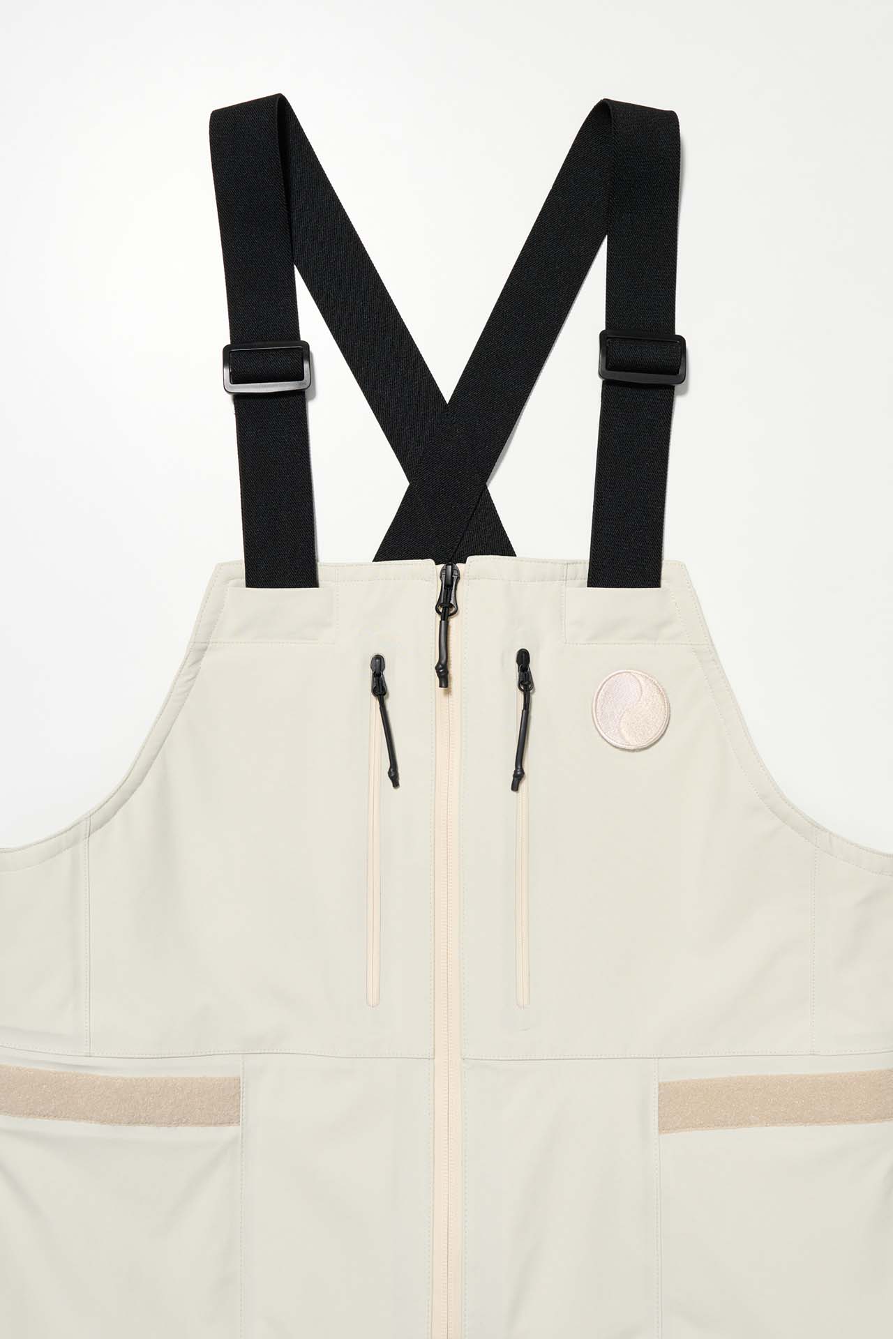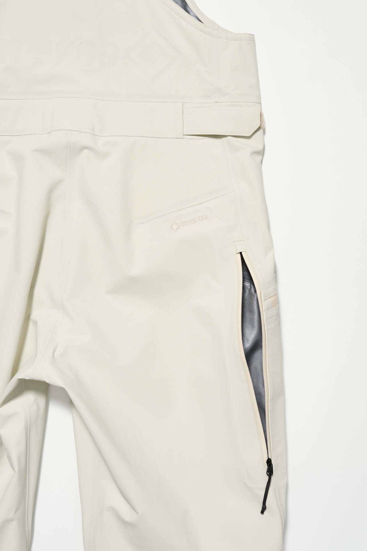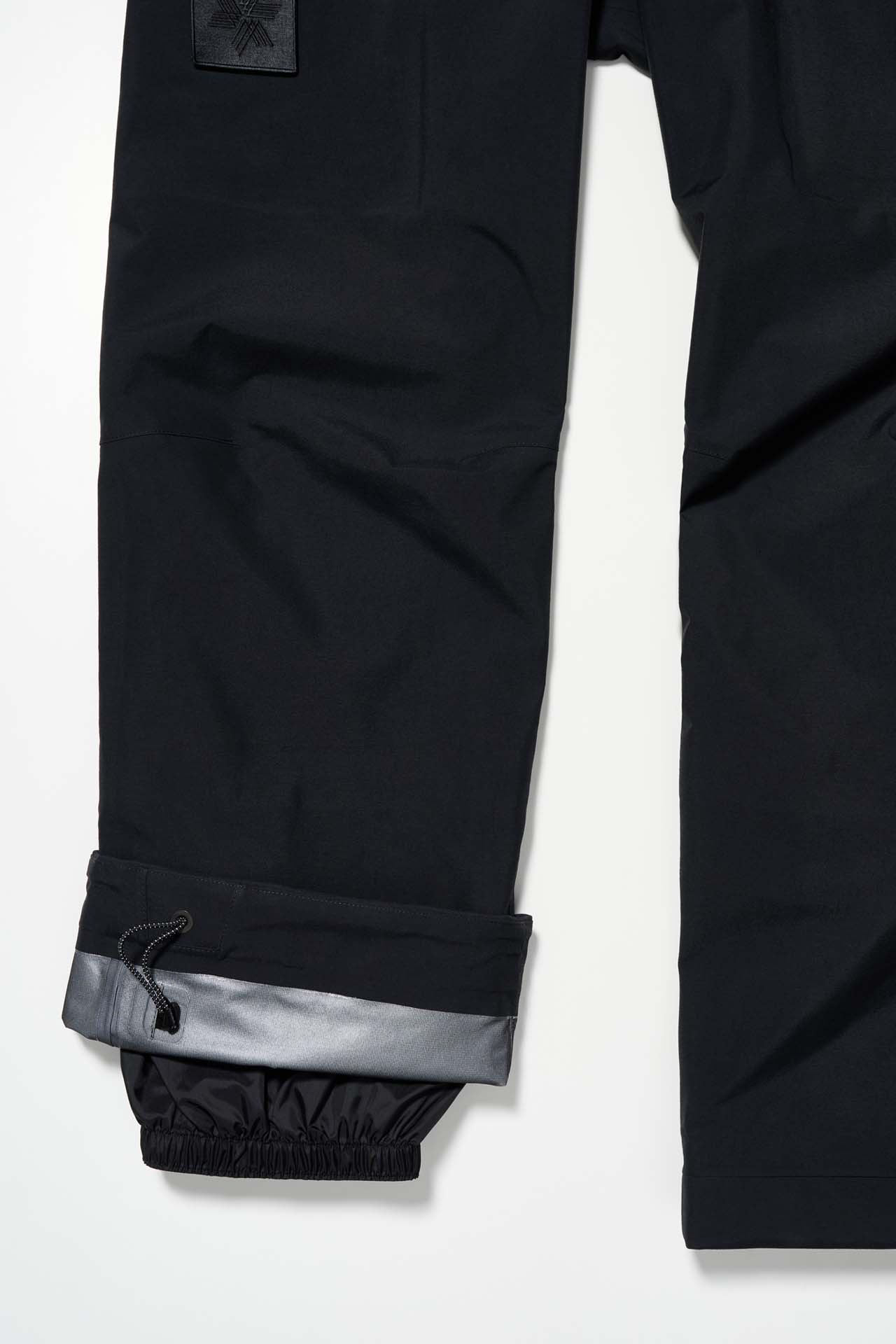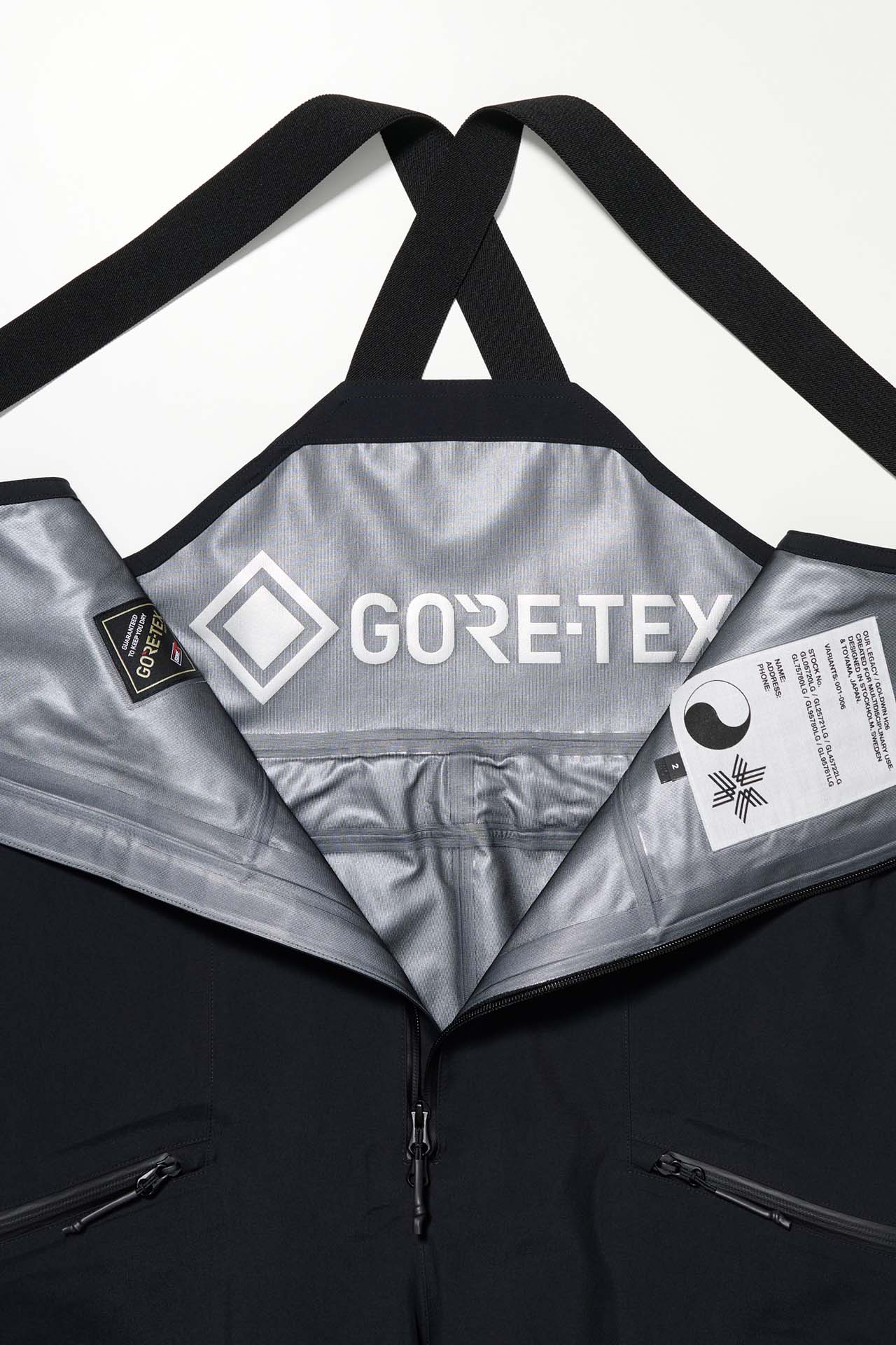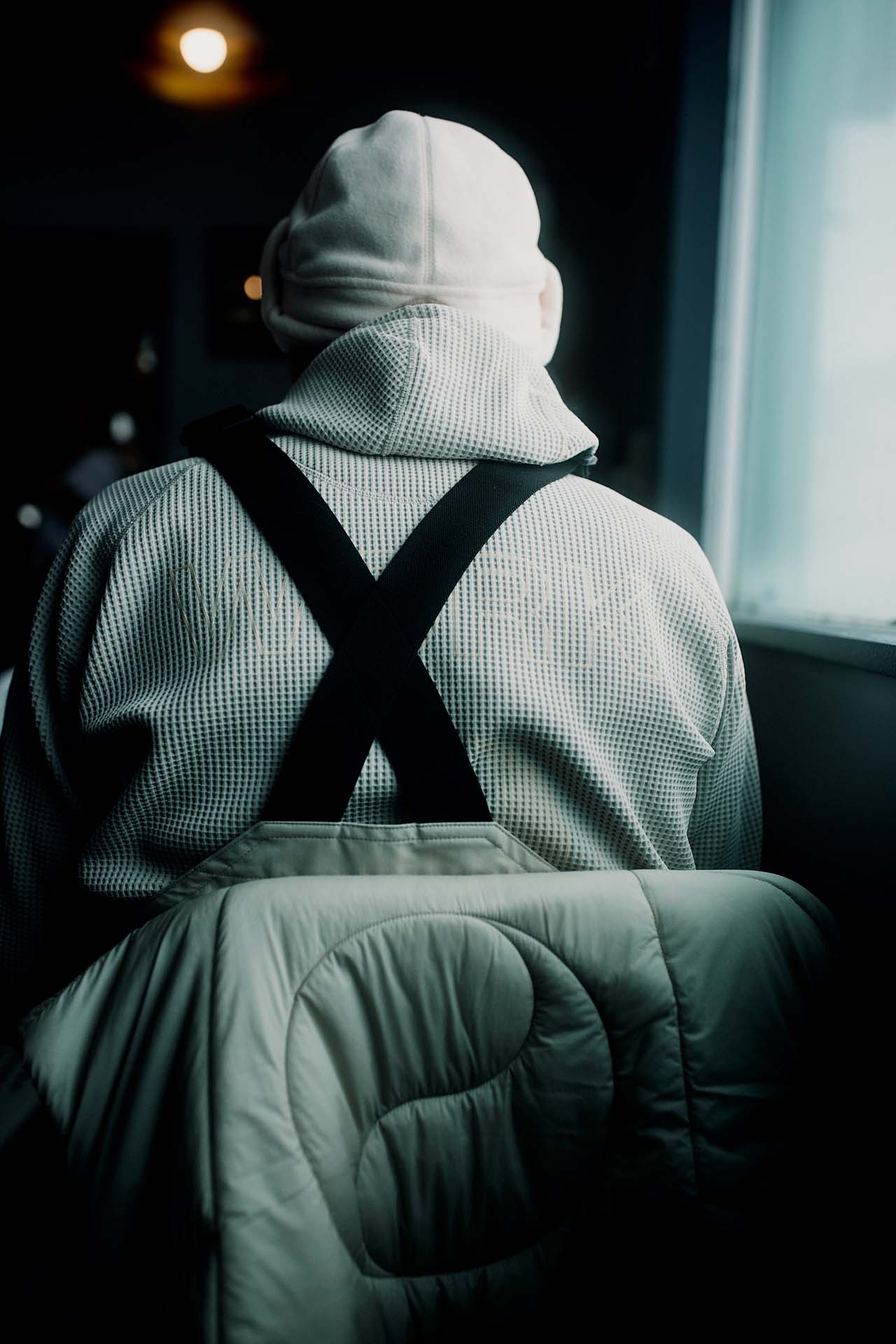 ジェットブラックとボーンホワイトの2色で統一された本コレクションは、山、森、あるいは都市など、いかなる過酷な環境下でも保温性と防水性を保持し、活動に全神経を集中できるよう設計された極めてテクニカルなレイヤリングシステムとなっている。GORE-TEX®︎ (ゴアテックス) 3レイヤー素材のシェルジャケットやビブパンツをはじめ、PERTEX®︎ (パーテックス)、SOLOTEX®︎ (ソロテックス)、POLARTEC®︎ (ポーラテック)、CORDURA®︎ (コーデュラ) といった最高峰の機能素材を組み合わせたプロフェッショナルな仕様に加え、細部に宿るストイックな意匠も WORK SHOP らしい魅力。外側には米軍規格 (ミルスペック) に着想を得た取り外し可能なパッチを配し、内側には各ファブリック・パートナーシップを象徴するリフレクティブ・プリントを施すなど、見えない部分にまで両ブランドの美学が貫かれている。
