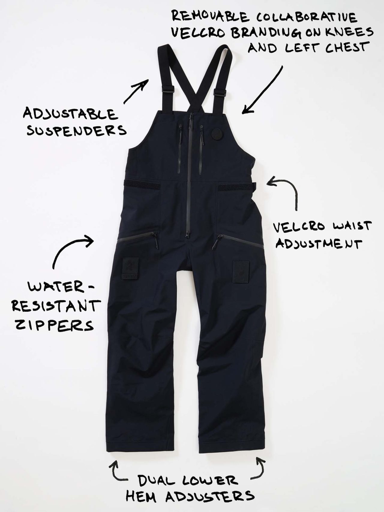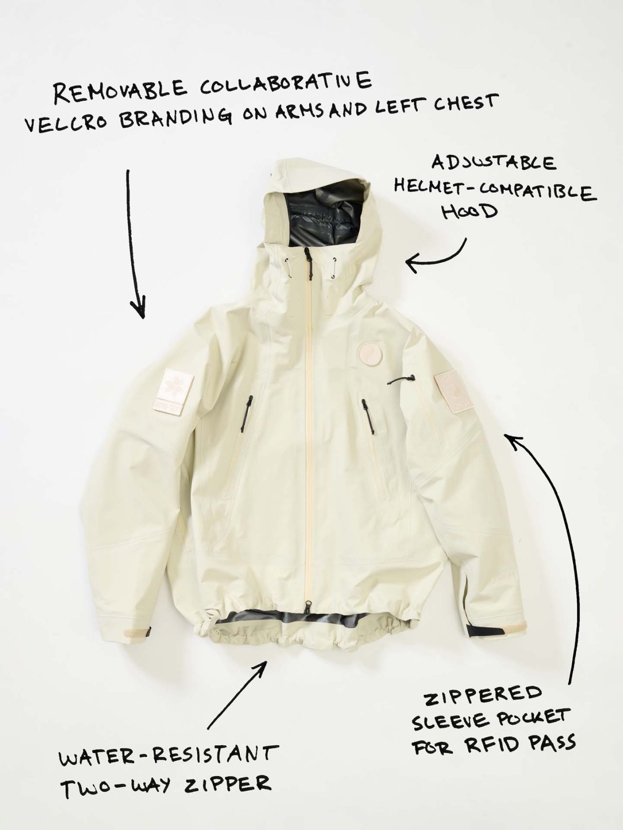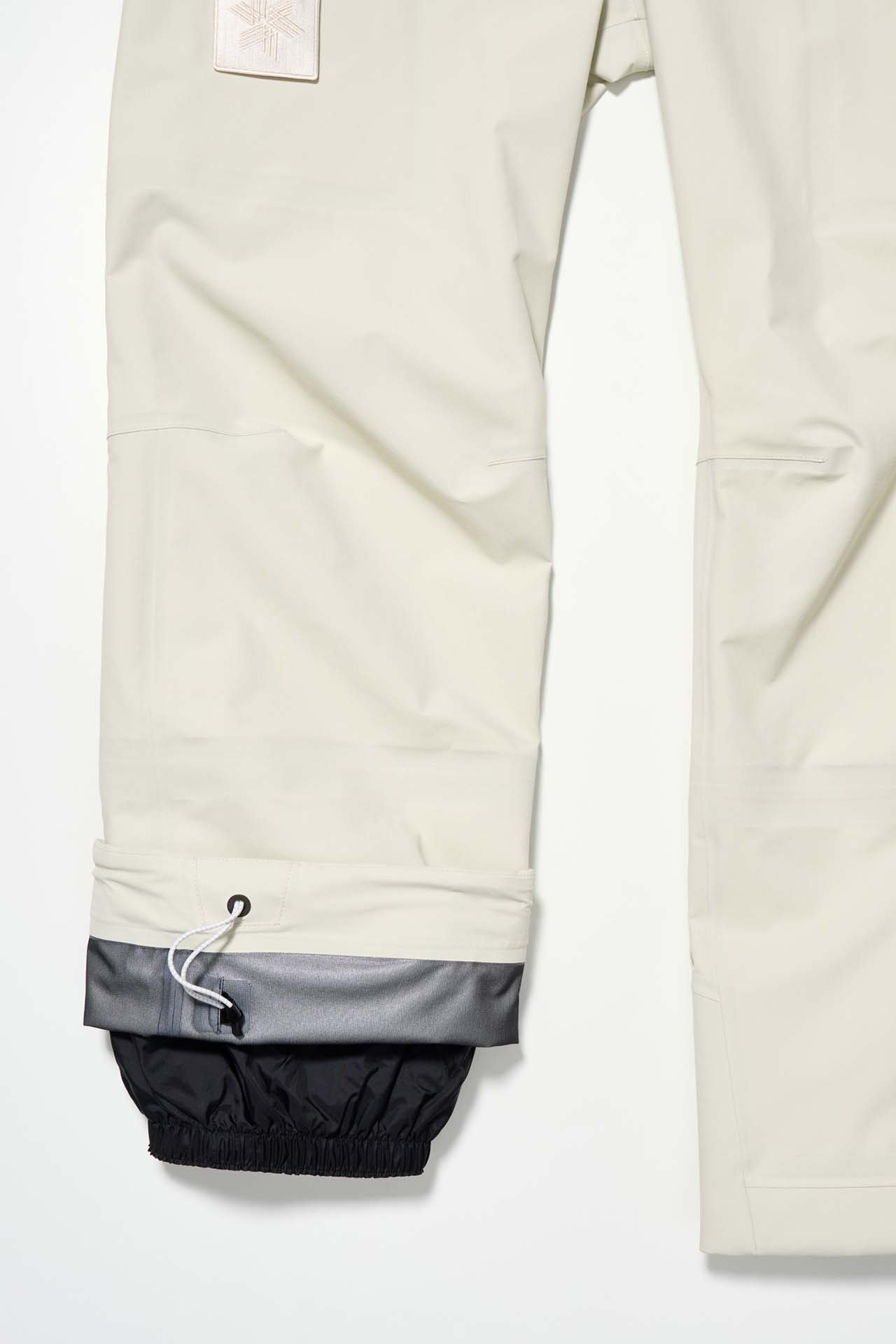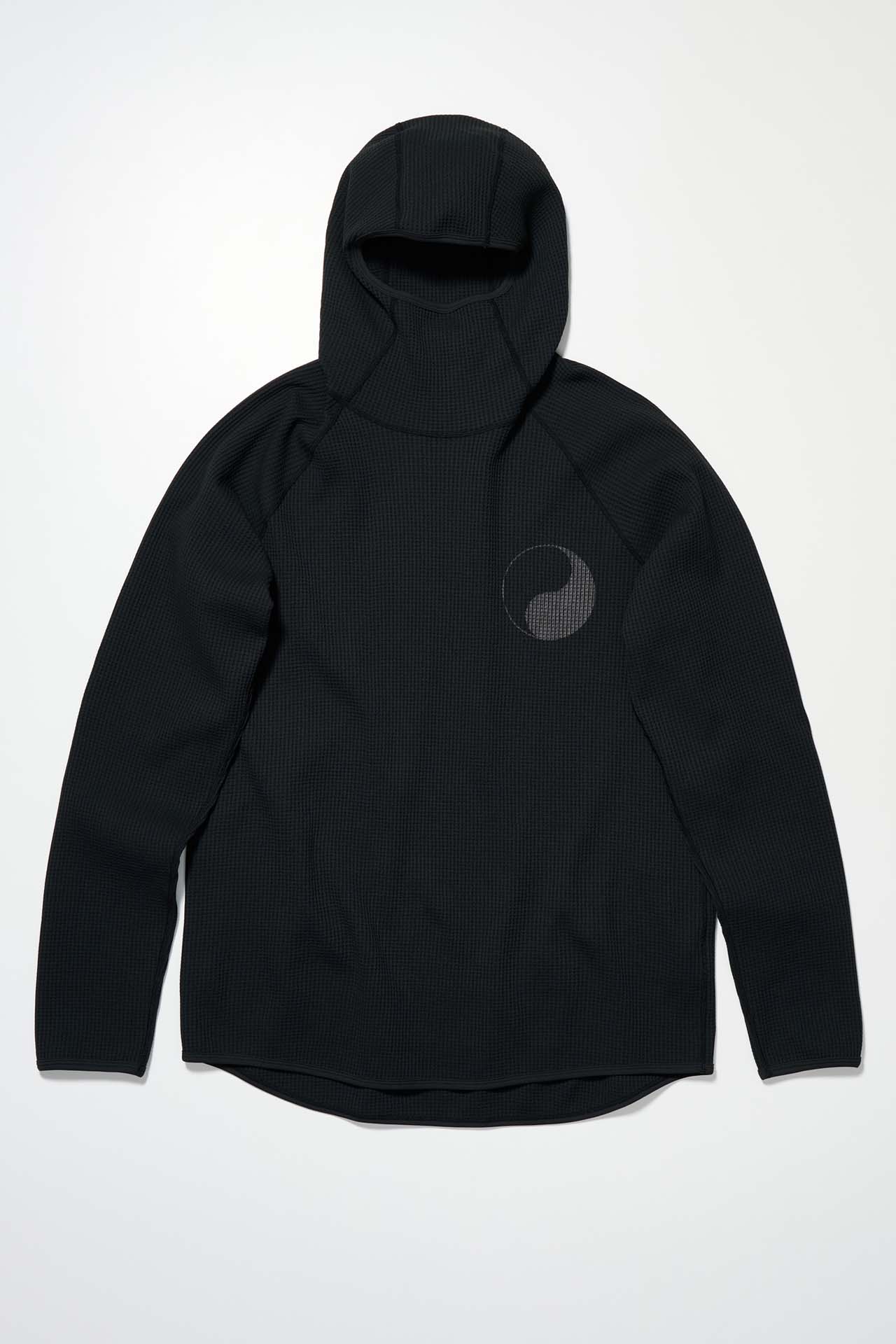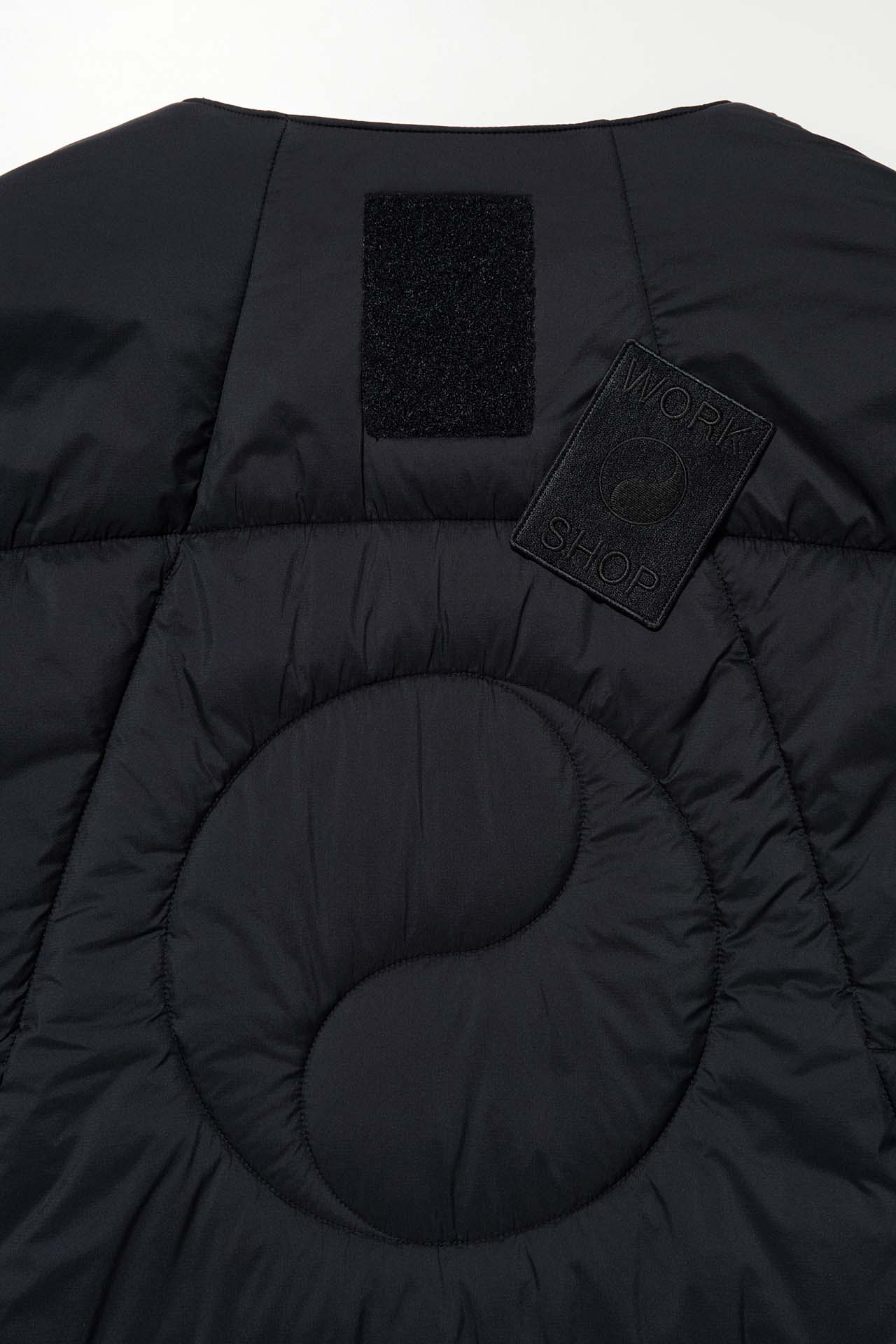 ジェットブラックとボーンホワイトの2色で統一された本コレクションは、山、森、あるいは都市など、いかなる過酷な環境下でも保温性と防水性を保持し、活動に全神経を集中できるよう設計された極めてテクニカルなレイヤリングシステムとなっている。GORE-TEX®︎ (ゴアテックス) 3レイヤー素材のシェルジャケットやビブパンツをはじめ、PERTEX®︎ (パーテックス)、SOLOTEX®︎ (ソロテックス)、POLARTEC®︎ (ポーラテック)、CORDURA®︎ (コーデュラ) といった最高峰の機能素材を組み合わせたプロフェッショナルな仕様に加え、細部に宿るストイックな意匠も WORK SHOP らしい魅力。外側には米軍規格 (ミルスペック) に着想を得た取り外し可能なパッチを配し、内側には各ファブリック・パートナーシップを象徴するリフレクティブ・プリントを施すなど、見えない部分にまで両ブランドの美学が貫かれている。