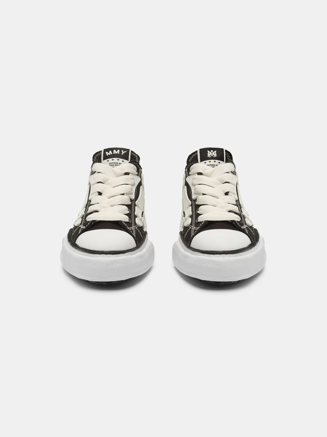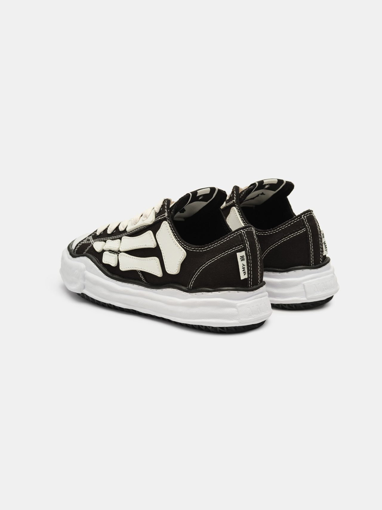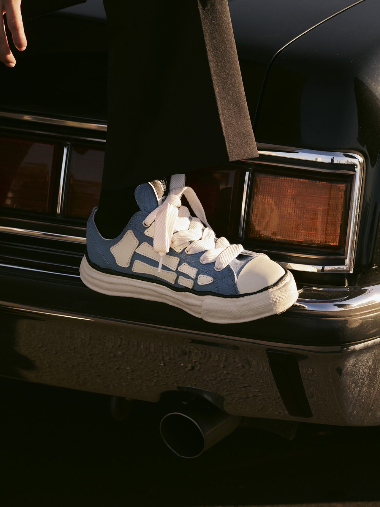 本アイテムは、Maison MIHARA YASUHIRO の象徴的な粘土を使って手作業で型取ったオリジナルソールに AMIRI のシグネチャーであるナッパレザーの「Bones」ワッペンがあしらわれ、両メゾンのヘリテージを受け継いだ唯一無二のアイテムに仕上がった。シュータンとヒールには互いのブランドロゴを刺繍したウーブンラベルが施され、互いのアイデンティティが込められた特別感を演出する。カラーは、前回登場したブラックに加え、新たにブルーのモデルがラインナップ。第1弾同様にモノクロームの世界観を基調にした本モデルは、大胆な構造、洗練された素材、職人技によるクラフトマンシップなど、DIY の精神と美学を取り入れている。