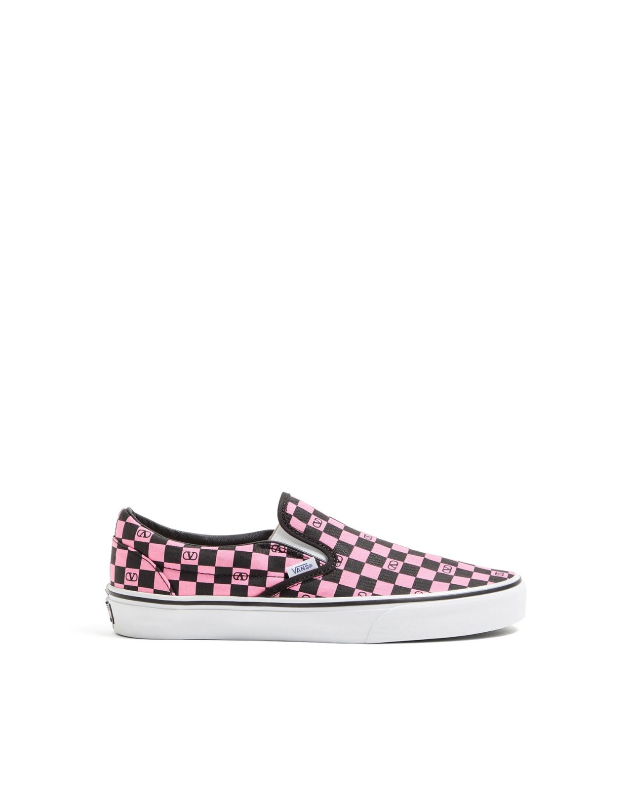 今シーズンのモデルは、複数のパターンを採用した6種類のバリエーションで構成され、両ブランドのコラボレーションによる特別仕様のインソールを採用。ブラック/レッド、ブラック/ピンクの V ロゴチェッカーボードをはじめ、大きなドットを配した V ロゴチェッカーボード、トロピカルリーフパターンなど、多彩なラインアップが揃う。