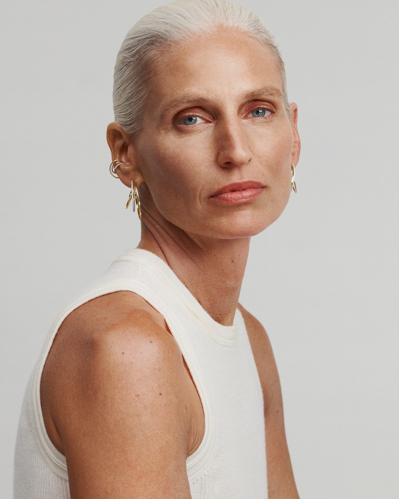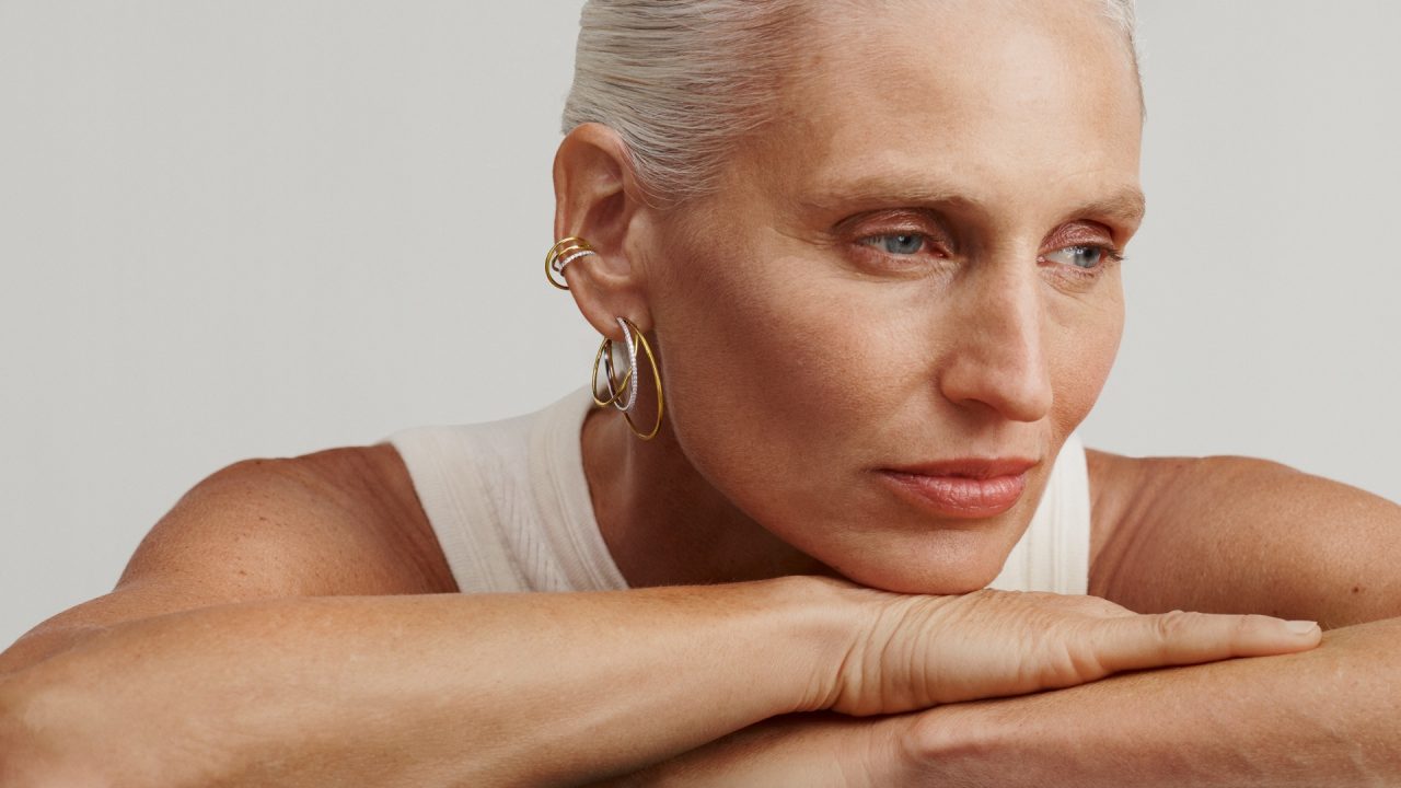 また、アイコン「シャンデリア」シリーズからは通常取り扱いのない希少なピースを含めた全ラインアップが揃う。なかでも、リブランディングを象徴する「シャンデリア ラディアント イヤーカフ」は耳全体を207ピースのダイヤモンドが包み込み、身体の動きに呼応