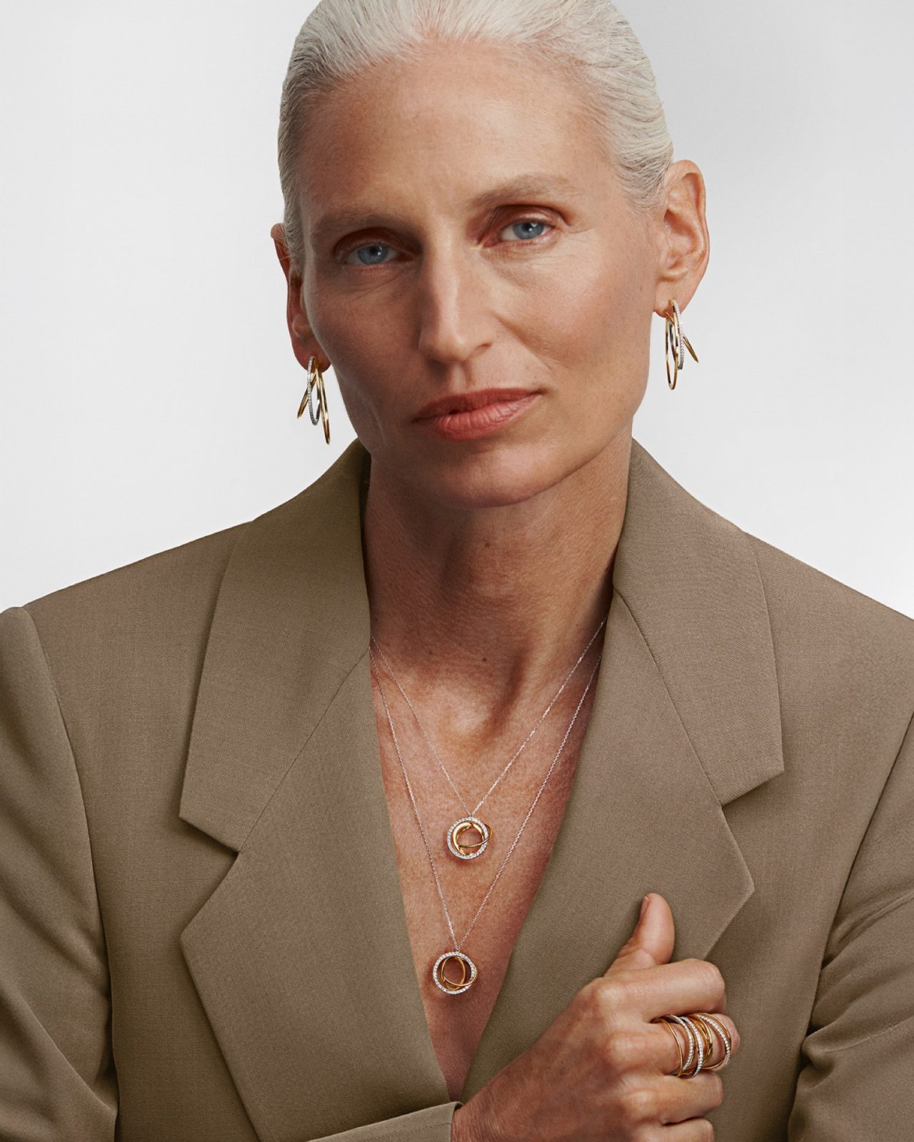 「エレメンツ」シリーズから、プラチナとイエローゴールドのラインが軽やかな浮遊感を宿す “エレメンツ フローティング” が登場。視線を移すたびに光の輪郭が新しい表情を描き出す、コンテンポラリーな立体美が魅力だ。