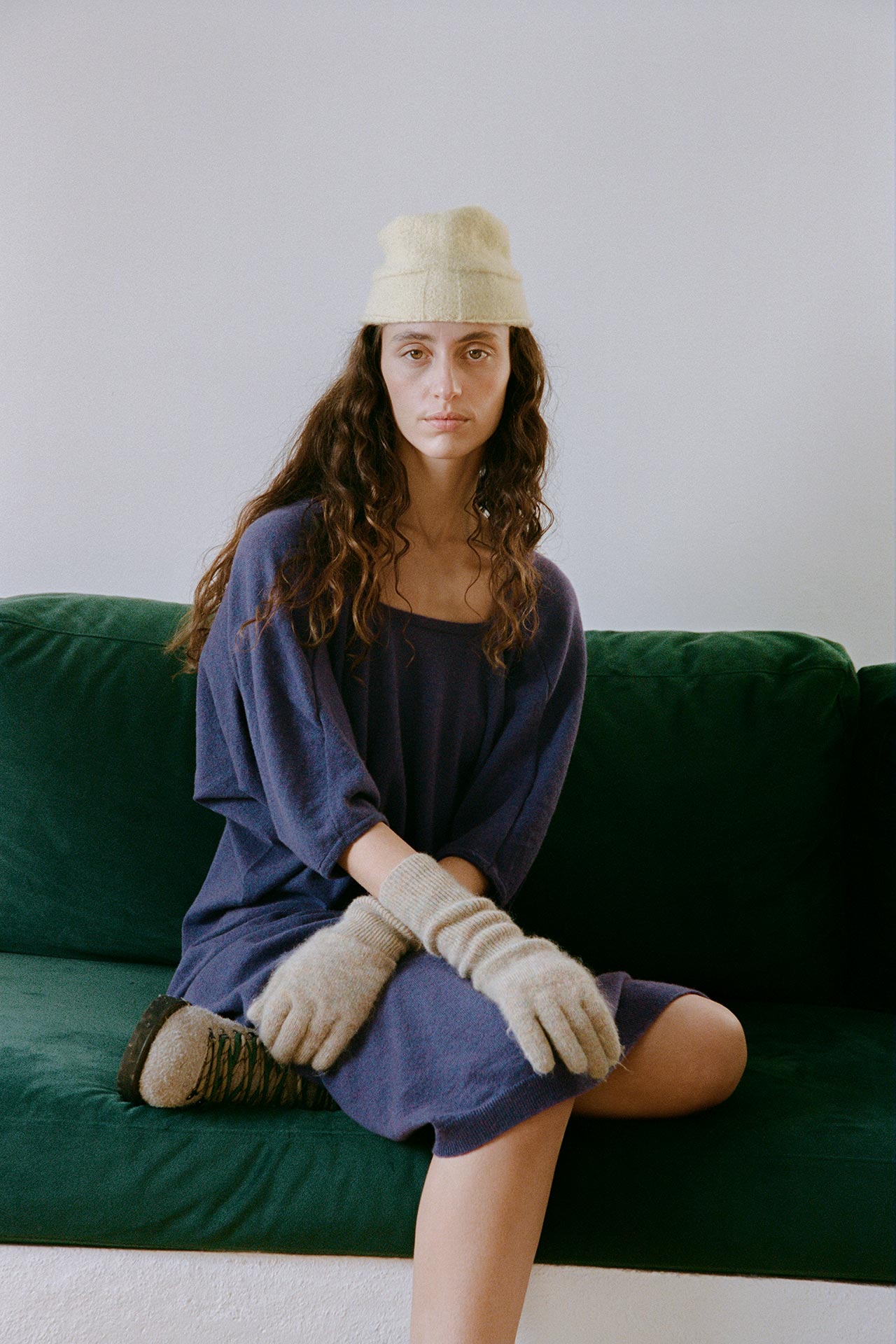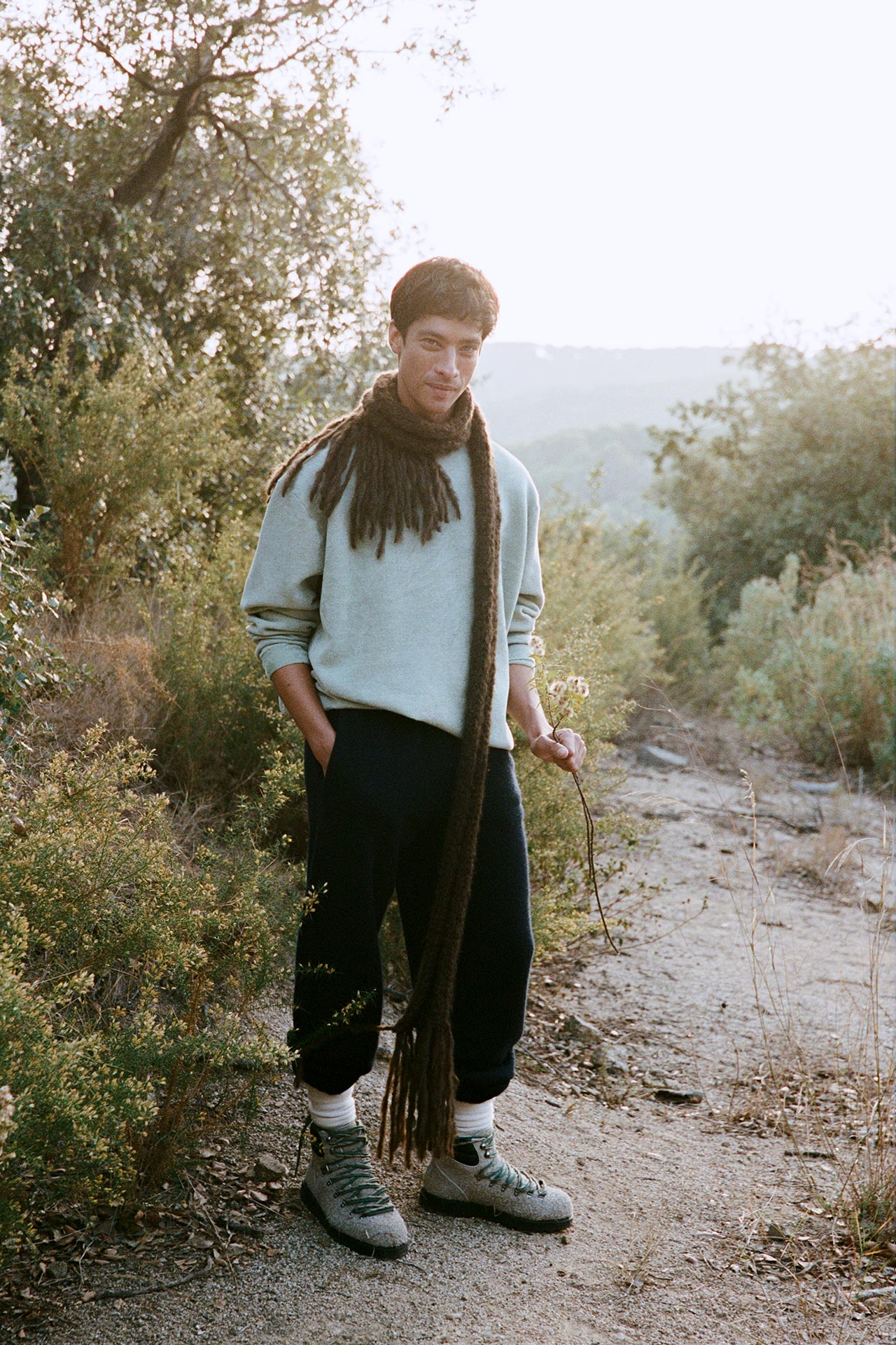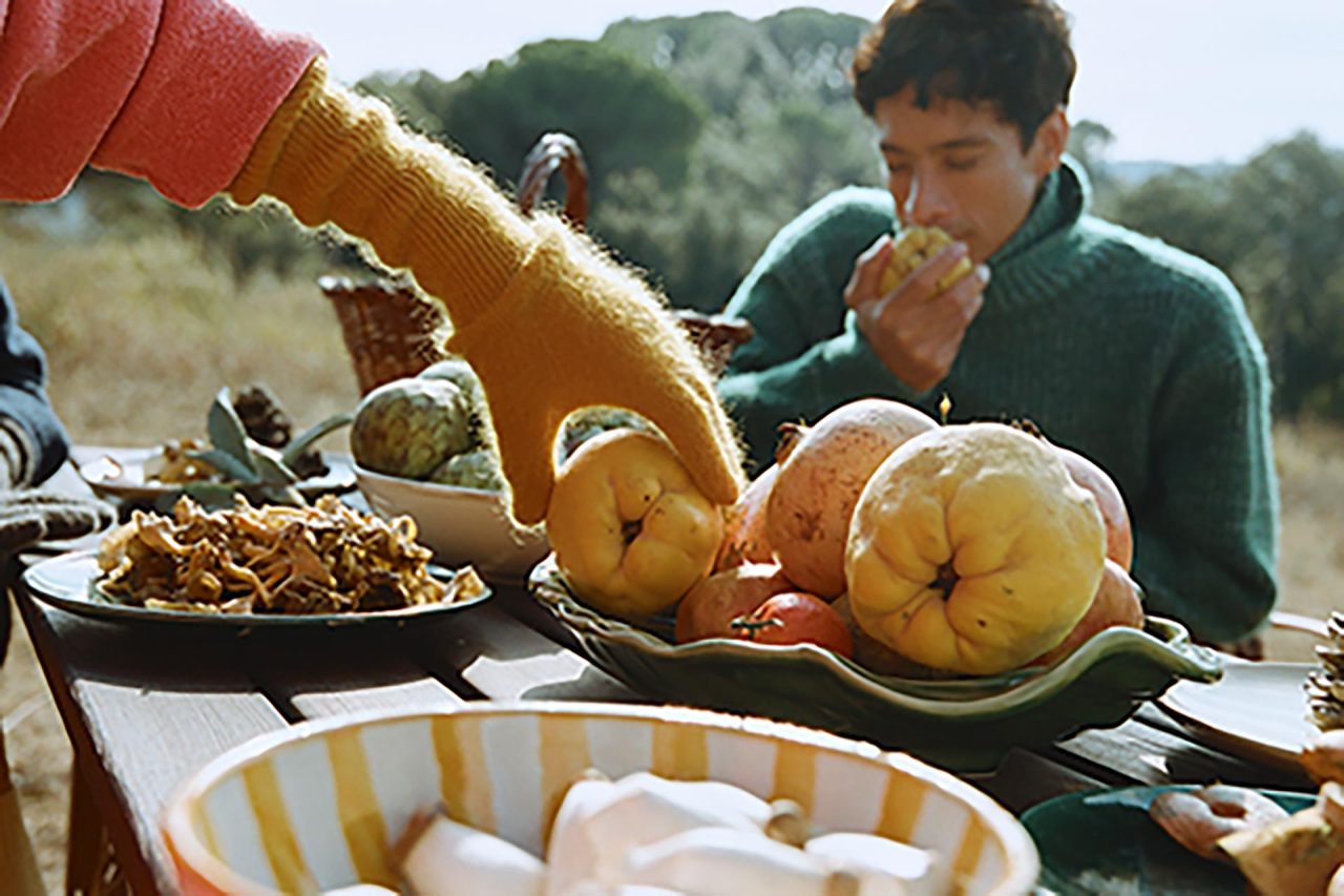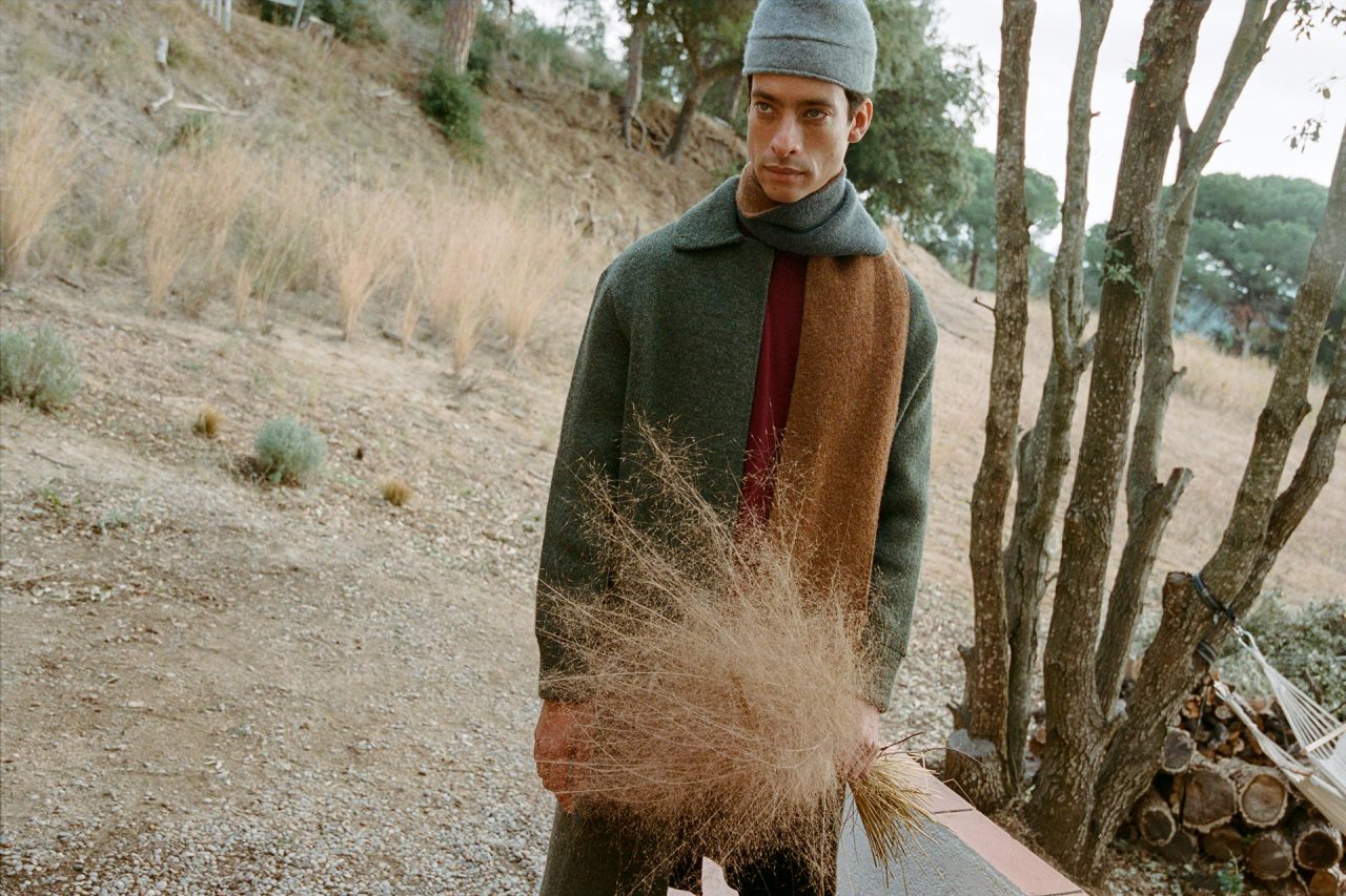 カタルーニャ山岳地帯の風景からインスピレーションを受けた本コレクションは、キノコ狩りなどの静かな採集の営みを通して、控えめかつ不思議な自然の美しさを讃える。菌類や土などの自然の触覚を核とし、ベルベットのように滑らかなビスコースから、しっかりと編まれた弾力のあるウール、そして贅沢なカシミアシルクまで多彩な素材が揃う。