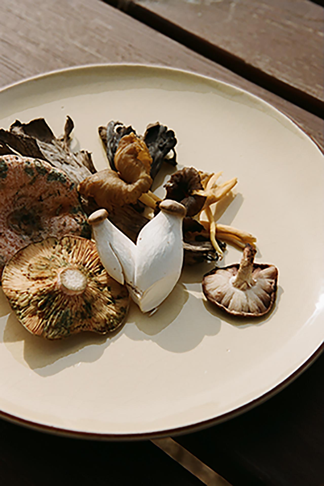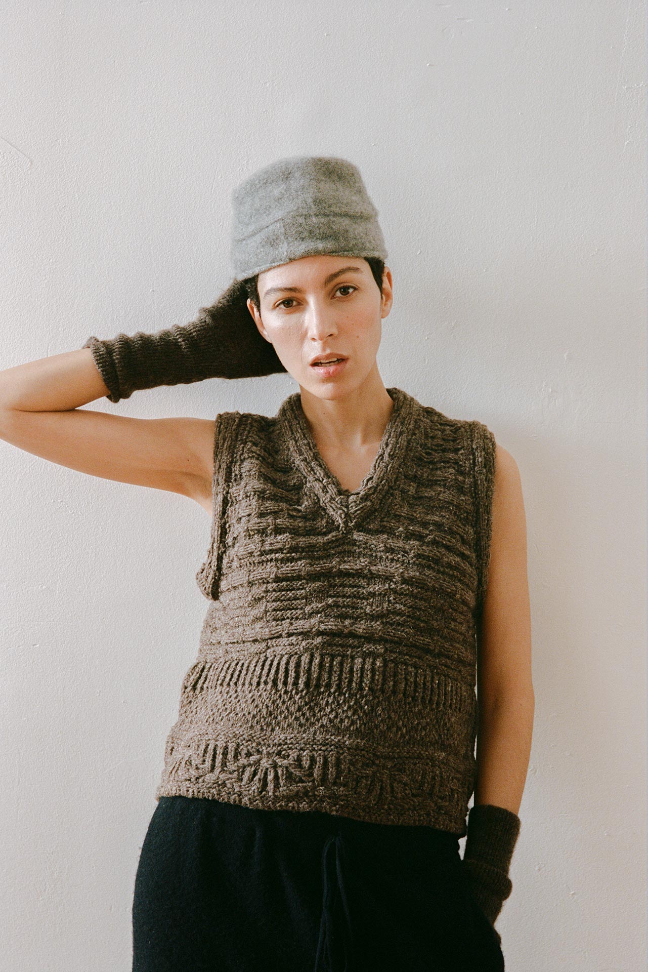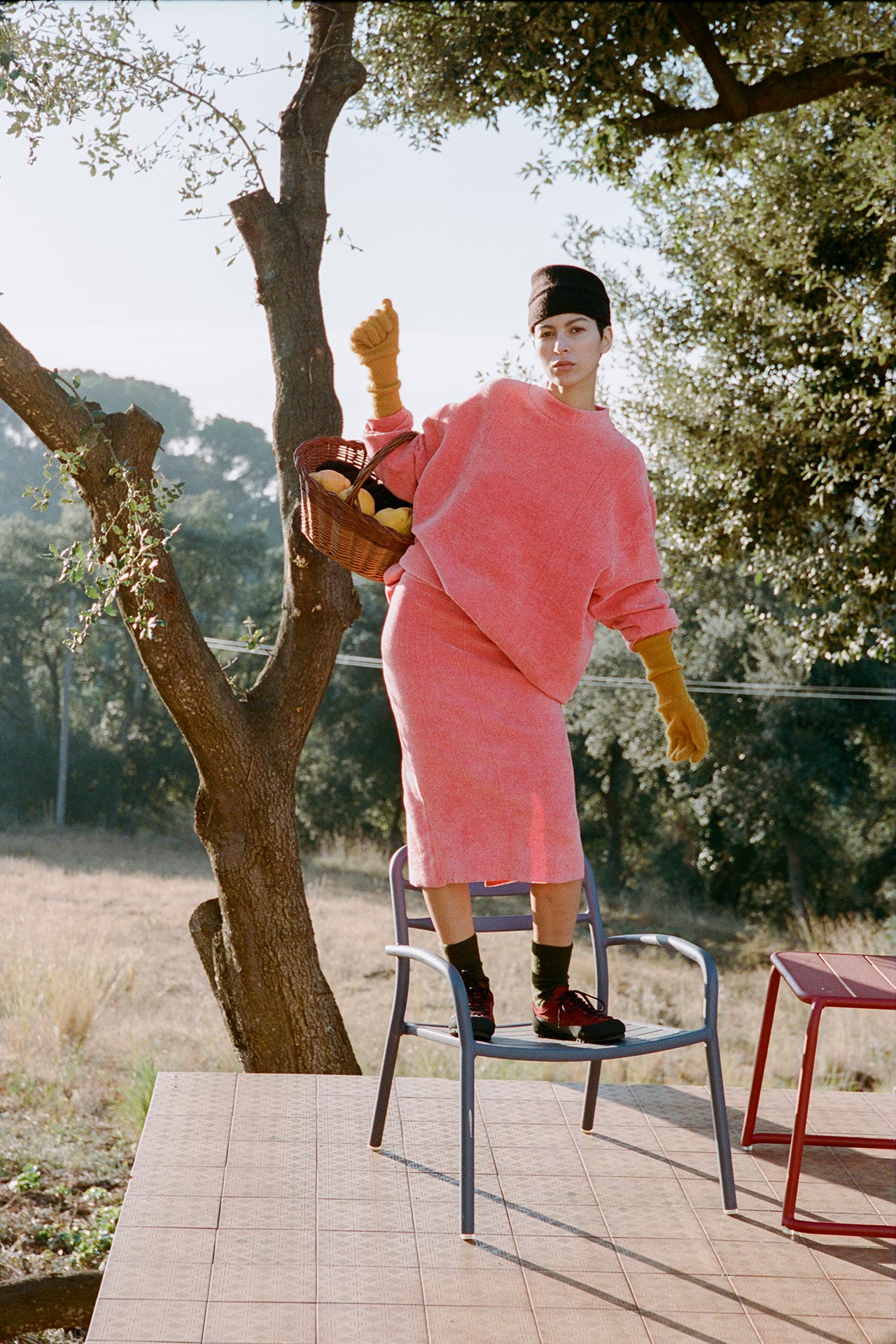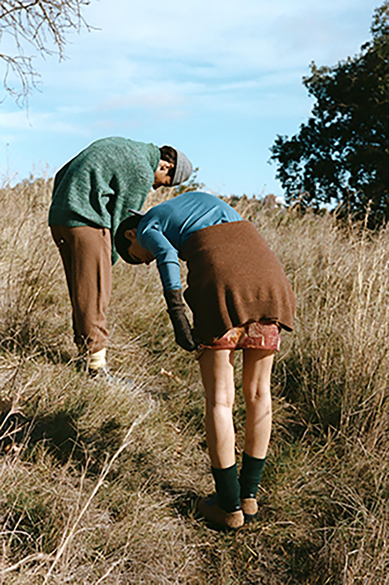 カタルーニャ山岳地帯の風景からインスピレーションを受けた本コレクションは、キノコ狩りなどの静かな採集の営みを通して、控えめかつ不思議な自然の美しさを讃える。菌類や土などの自然の触覚を核とし、ベルベットのように滑らかなビスコースから、しっかりと編まれた弾力のあるウール、そして贅沢なカシミアシルクまで多彩な素材が揃う。