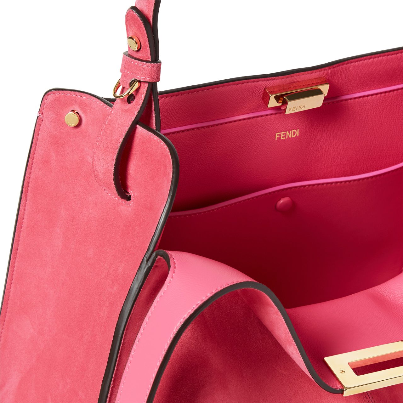 サイズはラージとミディアムの2種類で展開。素材とカラーの組み合わせも豊富に揃っており、ライラックとブラウンや、エレクトリックブルーとダブなどのバイカラーバリエーションは、鮮やかなスエードのインナーと組み合わされている。一方、今季のステートメントカラーとして登場するピンクとターコイズブルーのモノカラーバージョンは、スエード素材にレザーの裏地を施した仕様となっている。「FENDI Way」バッグは現在、FENDI 公式オンラインストアにて先行予約を受付中。また、同オンラインストア及び直営店にて、2026年2月5日より発売される。日常に寄り添う新たなホーボーバッグをぜひチェックしてみて。