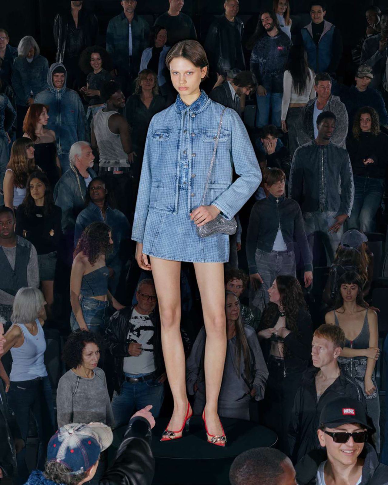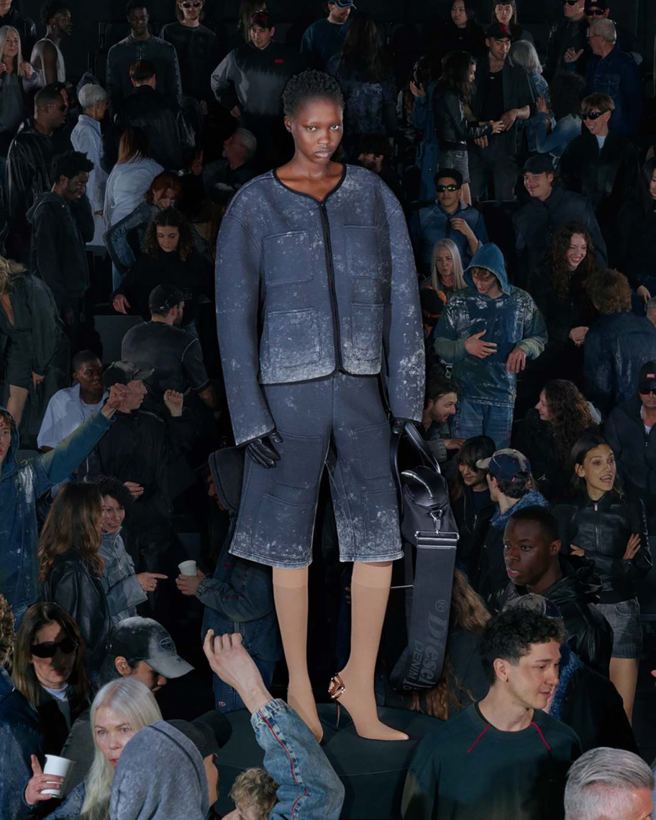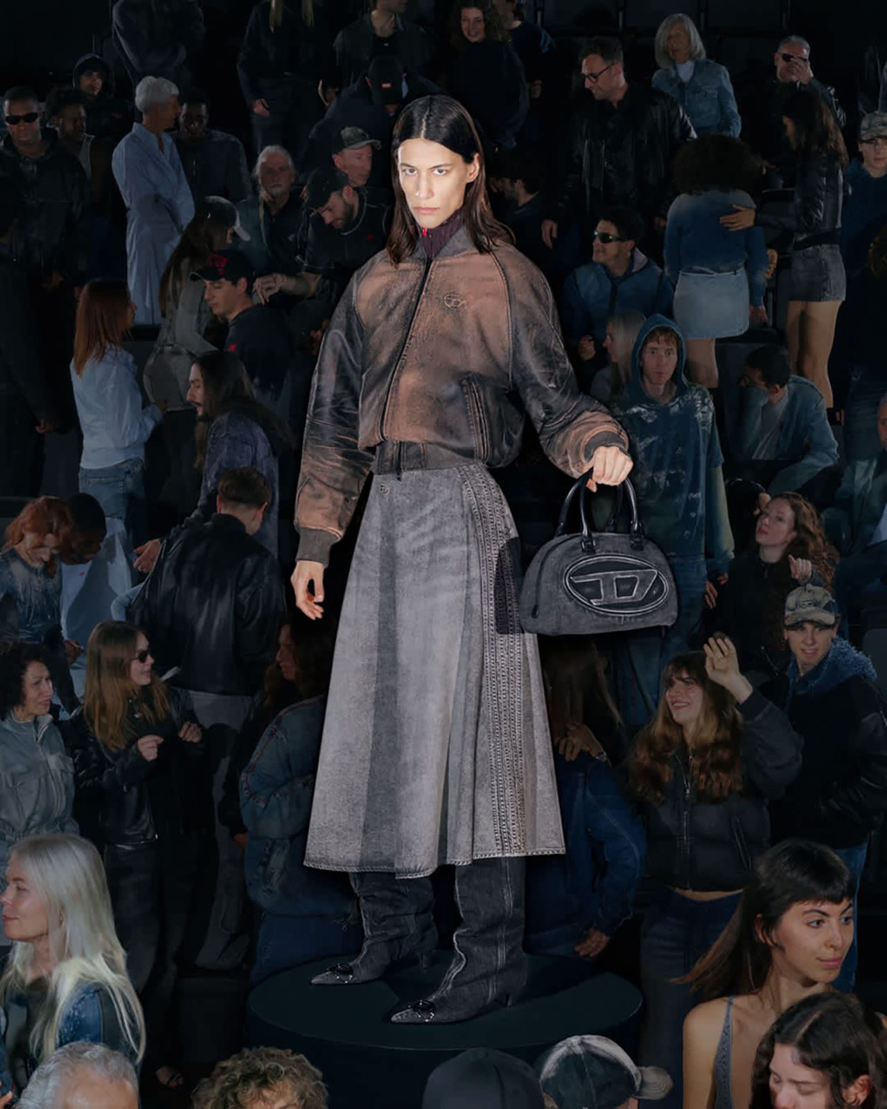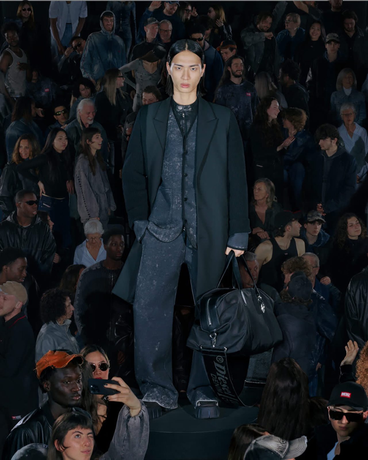 本コレクションを彩るラインナップには、DIESEL らしいデニム加工を施したネオプレン素材のドレスやパンツをはじめ、昨シーズンのランウェイに登場したノーカラーのリトルジャケットをネオプレンで再構築したアイテムが揃う。さらに、シンプルなフェイクレザーのシングルブレストコートや、ウールとネオプレンをボンディングしたダブルブレストコートも展開。ウォッシュドデニムのトレンチコートやテーラードジャケットには、レーザー加工によるツイードチェック柄を施し、すべてのアイテムに今シーズンのテーマである着こなしやすさが反映されている。ランウェイでの実験的なアイデアを日常へと昇華する、DIESEL ならではのアプローチによって生み出された本コレクションを、ぜひチェックしてほしい。