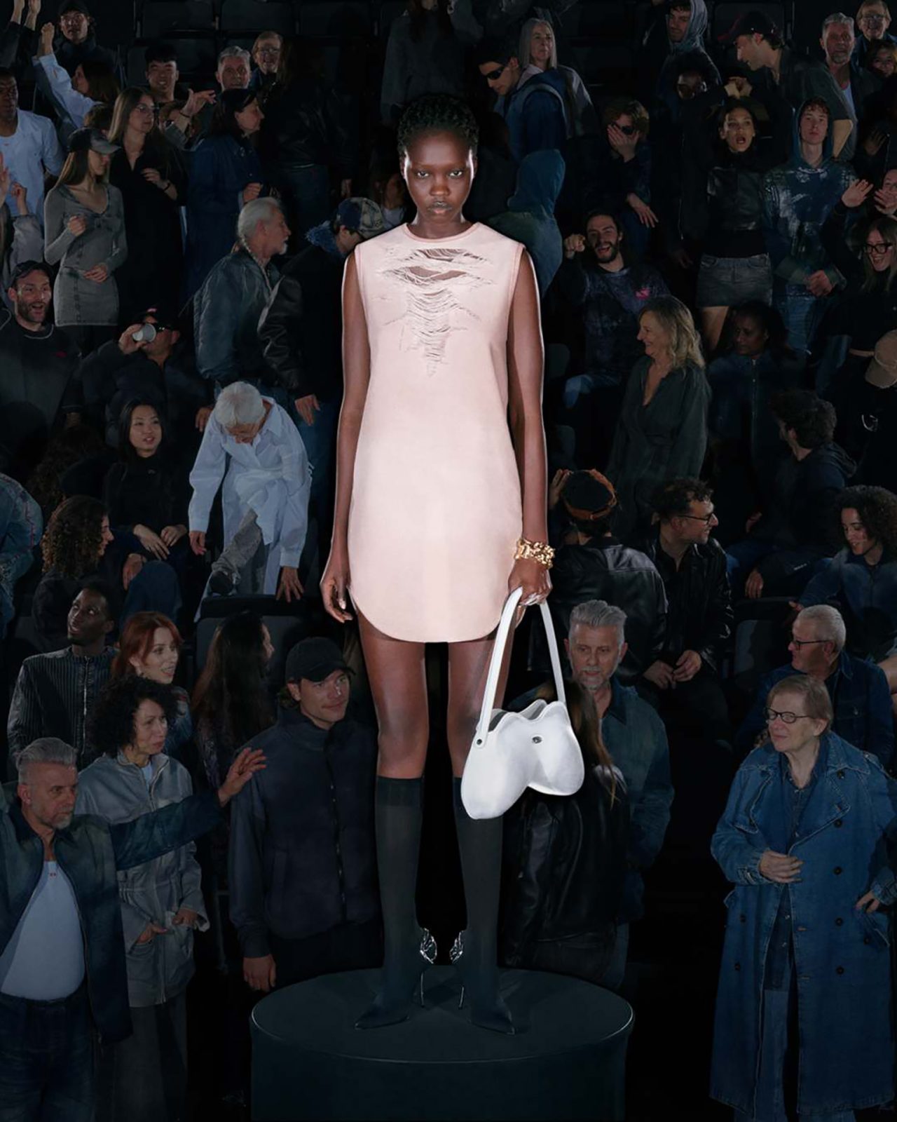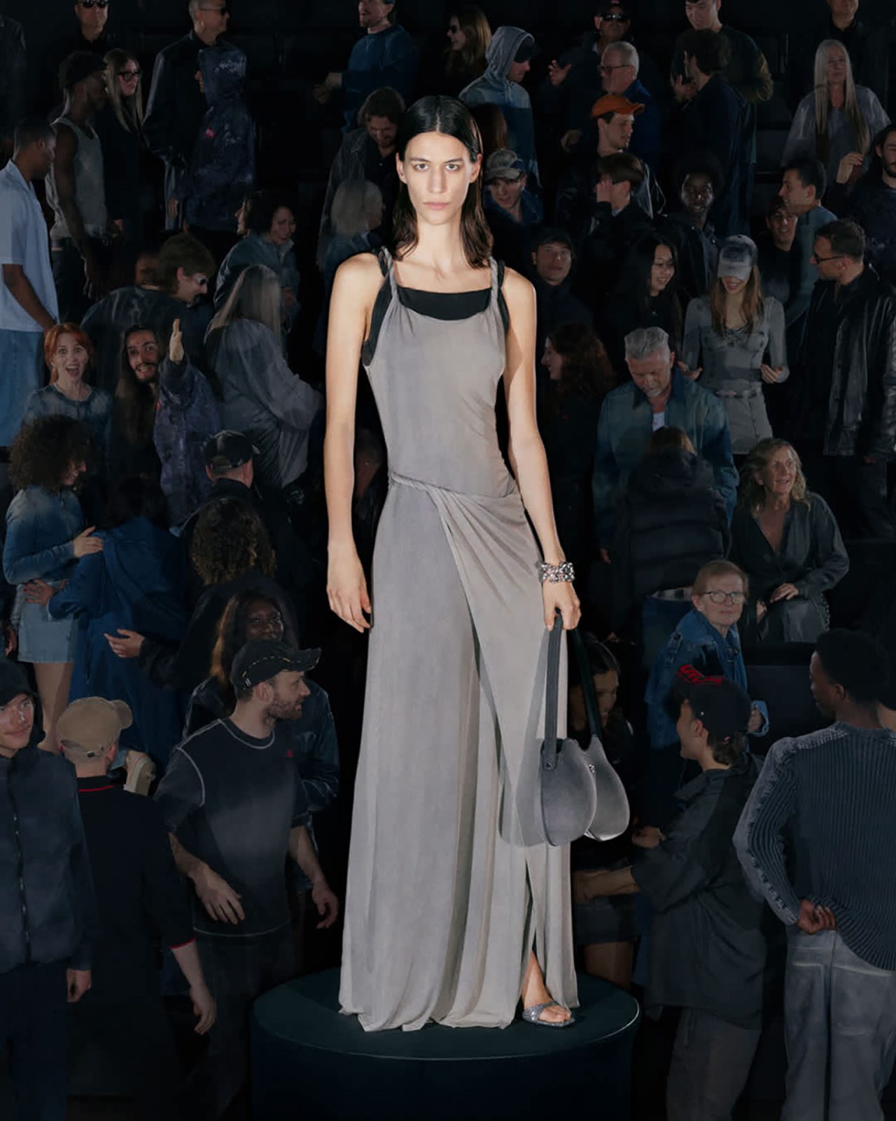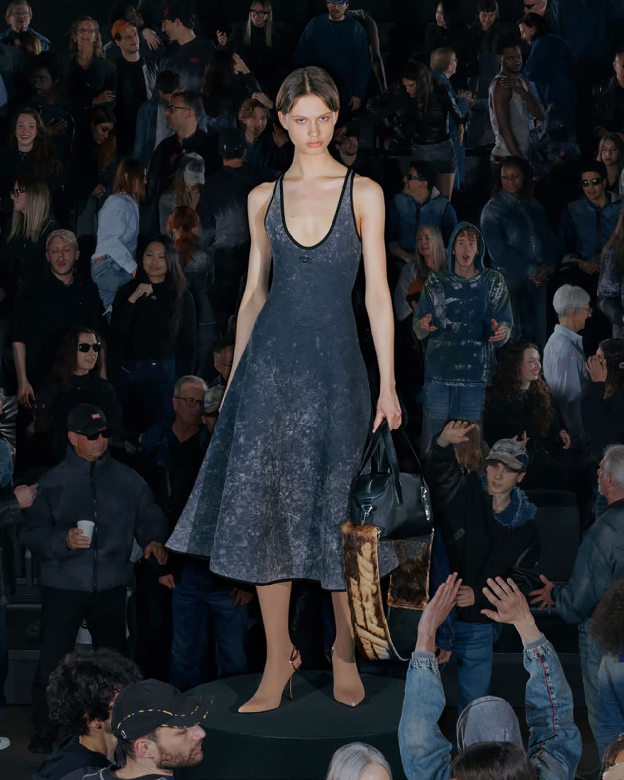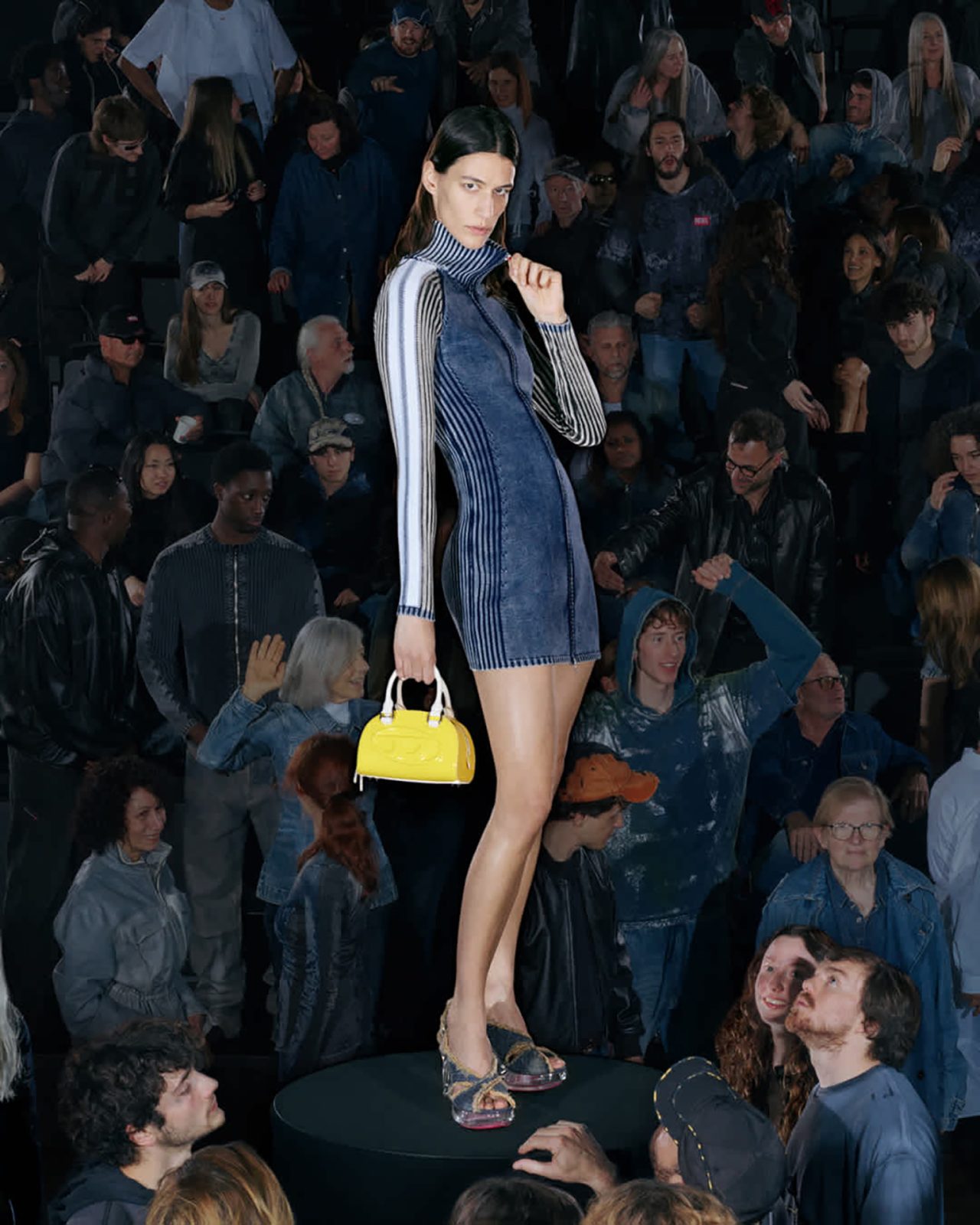 本コレクションを彩るラインナップには、DIESEL らしいデニム加工を施したネオプレン素材のドレスやパンツをはじめ、昨シーズンのランウェイに登場したノーカラーのリトルジャケットをネオプレンで再構築したアイテムが揃う。さらに、シンプルなフェイクレザーのシングルブレストコートや、ウールとネオプレンをボンディングしたダブルブレストコートも展開。ウォッシュドデニムのトレンチコートやテーラードジャケットには、レーザー加工によるツイードチェック柄を施し、すべてのアイテムに今シーズンのテーマである着こなしやすさが反映されている。ランウェイでの実験的なアイデアを日常へと昇華する、DIESEL ならではのアプローチによって生み出された本コレクションを、ぜひチェックしてほしい。