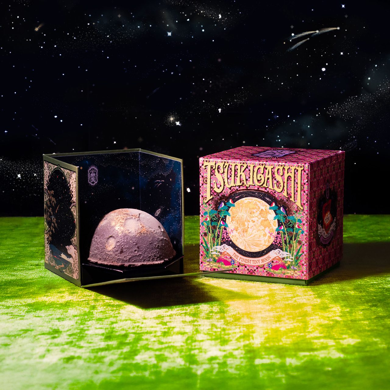 「桃源郷の土産物屋」から着想を得た和洋菓子店、「小楽園 TEA SALON & BOUTIQUE」がバレンタインに向けたイベント「The Utopian Hidden Cosmos」を2月23日まで開催中。日本の御伽噺や遠い異国のお話のような、 独特の物語性から導き出される世界観が魅力の小楽園。今年のバレンタインではかぐや姫の故郷である”月”がテーマとなり、チョコレート銀河から「天体のかけら」として個性的なチョコレートが削り起こされる。