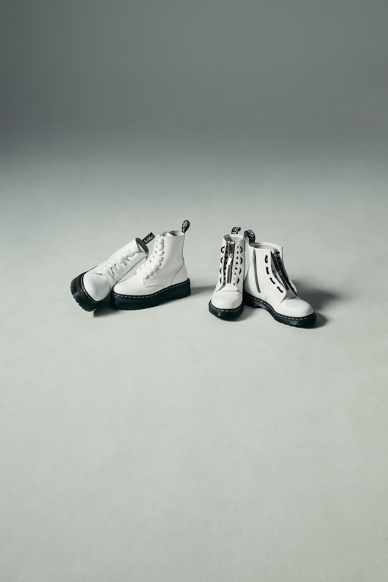 一方、「THE WHITE SMOOTH」は、プレーンでクリーンな印象のホワイトスムースレザーをアッパーに採用。取り外し可能な ZIP パーツによって2 WAY で着用できる「1460 ZIP ブーツ」と「JADON」が揃う。いずれのモデルも、フラットで太めのセカンドシューレースを備えるなど、日本限定で展開される特別なコレクションとなっている。