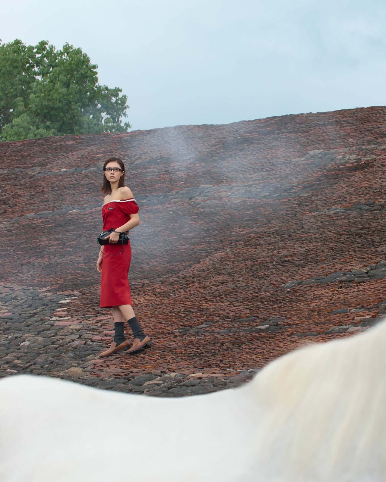 霧が立ち込めるブルータリズム様式の建築の中、国際的なファッションアイコンとしても知られる次世代シンガーソングライター Lexie Liu (レクシー・リウ) と大ヒット映画『琉球の地球』などで国民的人気を誇る実力派俳優 Zhao Jinmai (チャオ・ジンマイ) が、新作の象徴である白馬と出会う本作。この詩的な物語を形作るのは、ファッションと映画界を牽引する豪華なクリエイター陣だ。