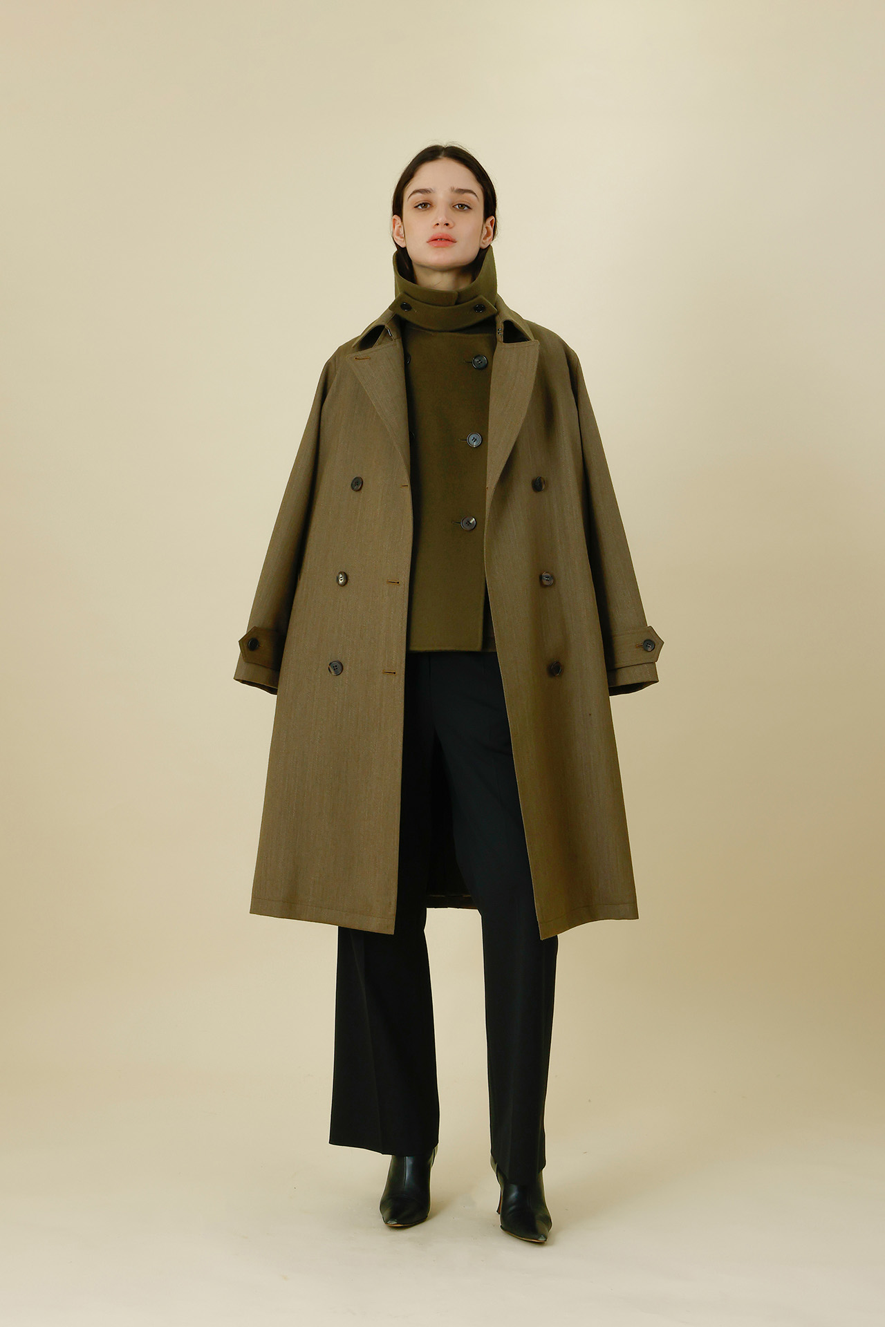 ブランドを象徴するカシミヤのアウターウェアは、異なるカシミヤ混率でひとつのモデルを展開。混率の違いで生まれる肌触りや質のニュアンスから、自分好みの一着をセレクトできるのも魅力。2025年秋冬コレクションでも、繊細なものづくりによるアウターウェアを核に、身に纏う人の個性を引き立てる、普遍的で長く愛されるアイテムを揃えている。