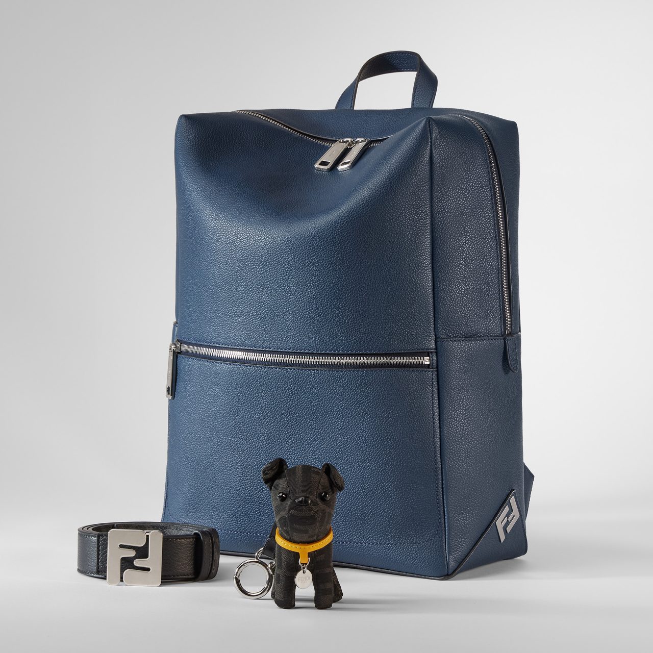メンズコレクションの主役となる「FENDI Lui」シリーズは、洗練された機能性とモダンなデザインを兼ね備えたバッグコレクション。「FENDI Lui」バックパックは、バックパックとしてはもちろん、付属のストラップによってショルダーバッグとしても使用可能な2 WAY 仕様。13インチのノートパソコンを収納できる内側コンパートメントや、ゆとりのあるフロントジップポケットを備え、日常使いに優れた実用性を誇る。同シリーズから登場するメッセンジャーバッグは、柔らかな質感のダブルジップ仕様で、軽量かつ機能的。ミディアムサイズは、ミニタブレットやスマートフォン、身の回りの必需品をすっきりと収納でき、エフォートレスな魅力を放つタイムレスなブラックカラーで仕上げられている。
