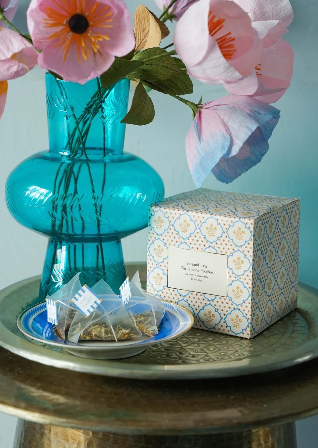 さらに、店内で税込33,000円以上購入すると特別なギフトがもらえるチャンスも。アートディレクターの川上恵莉子がパッケージデザインを手がけた、Pasand オリジナルハーブティーを用意。洗練されたデザインと香りに包まれるひとときは、Pasand が提案する心地よい暮らしのあり方を象徴している。