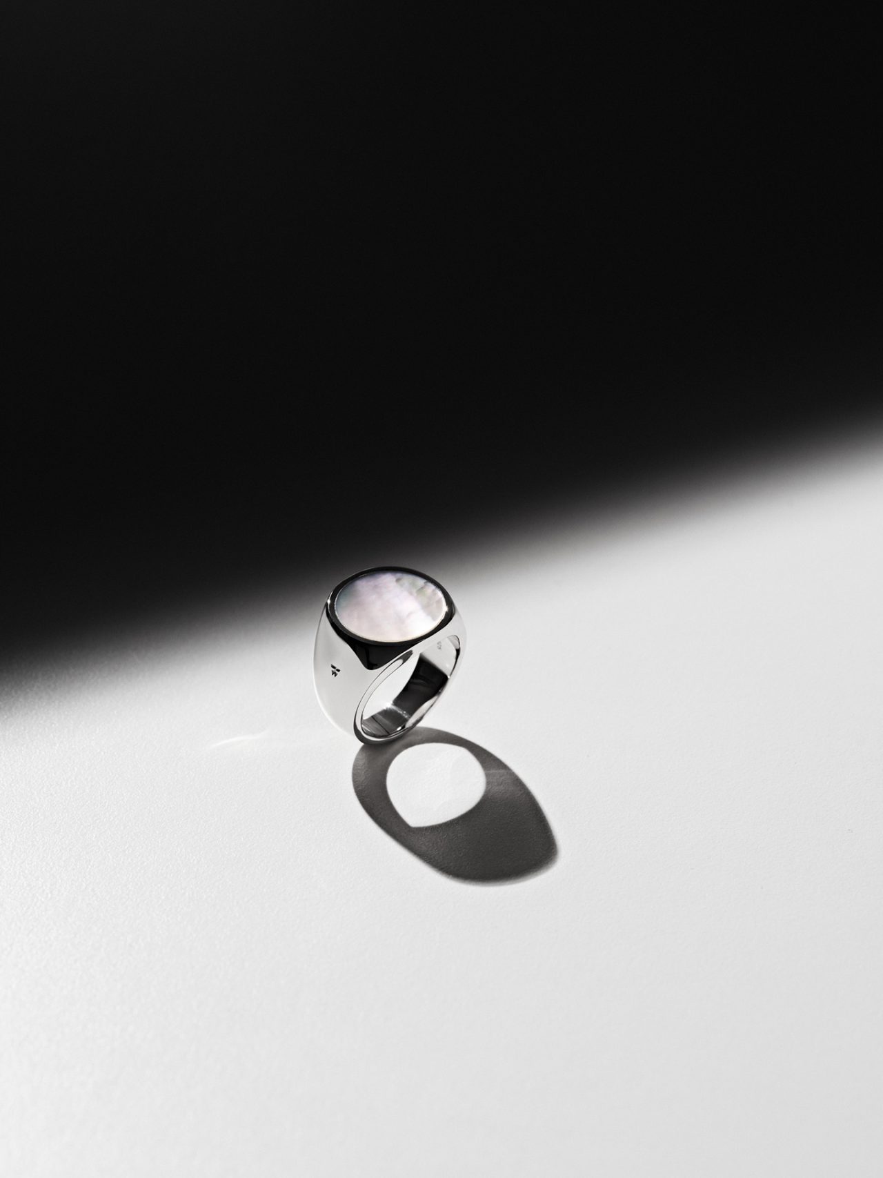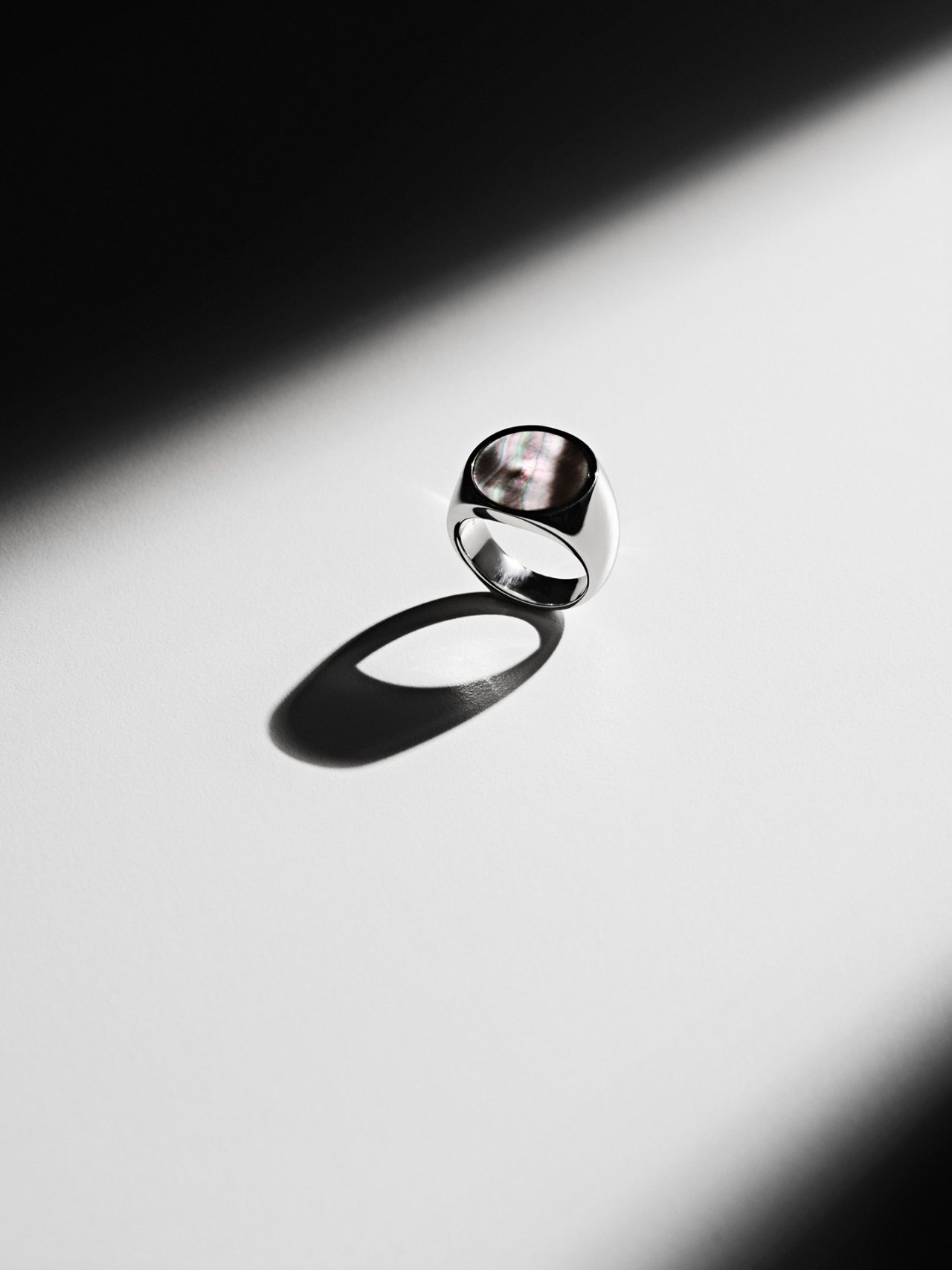 Tom Wood から今回登場するのは、長年コラボレーションをしてきた Dover Street Market Ginza 限定で発売される「Galaxy Ring」の新作リング。本アイテムは、これまで Dover Street Market Ginza 限定で展開されてきた「Galaxy Ring」に新たな解釈を加え、シーズナルリニューアルの一環として登場する。スカンジナビアの風景美にインスパイアされた本コレクションは、リサイクル925スターリングシルバーを採用し、マザーオブパールをフラッシュセッティングで配置。自然な虹色の輝きを放つマザーオブパールが、あらゆる角度から光を捉え、オーロラを思わせる繊細な色彩をさりげなく演出する。その光のニュアンスは、Tom Wood が持つ北欧のルーツとの深い結びつきを象徴している。Dover Street Market Ginza 限定で展開される本作は、コレクターピースとしても存在感を放つ唯一無二のジュエリー。日常の装いに静かな彩りを添える、限定発売の新たなジュエリーをぜひチェックしてほしい。