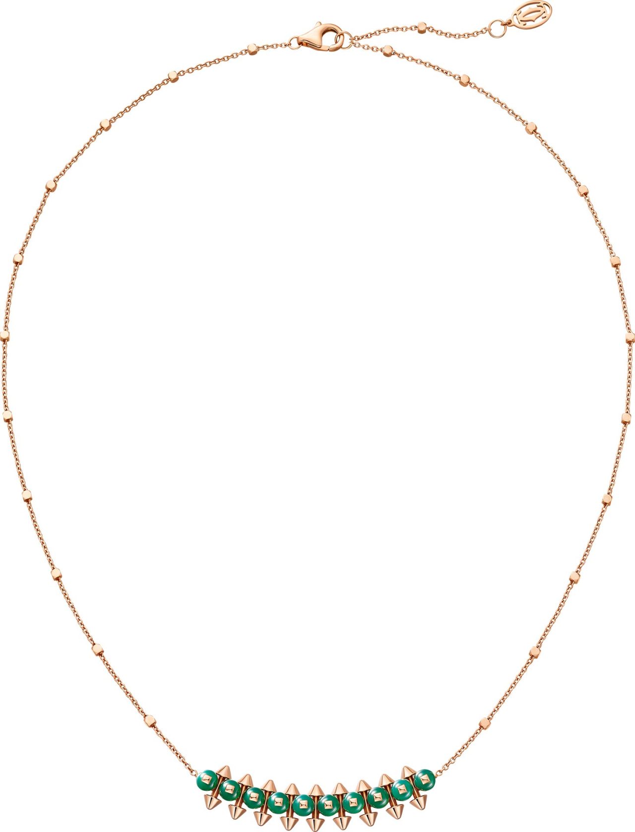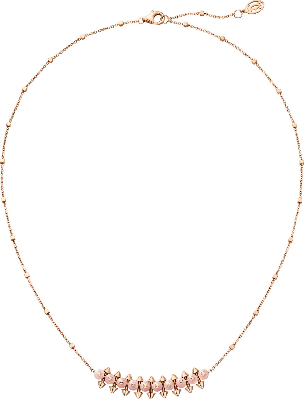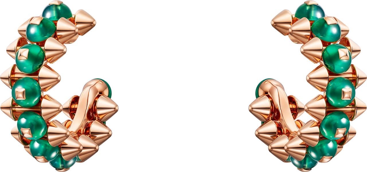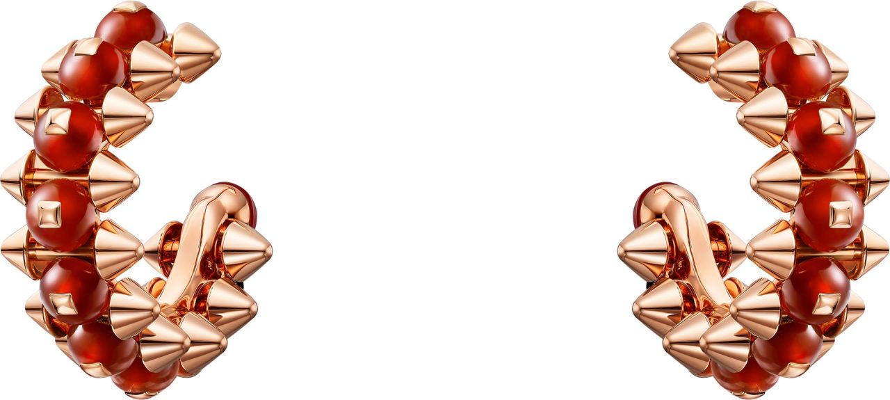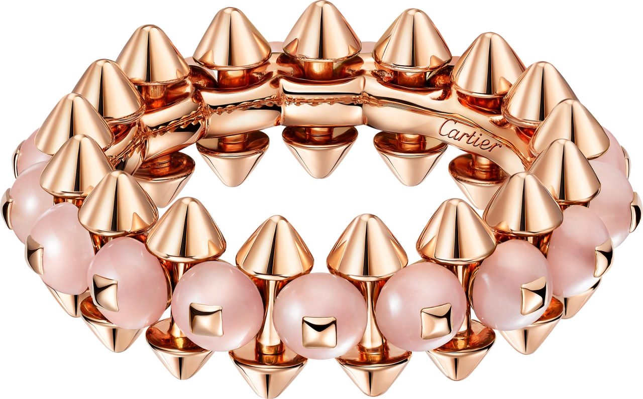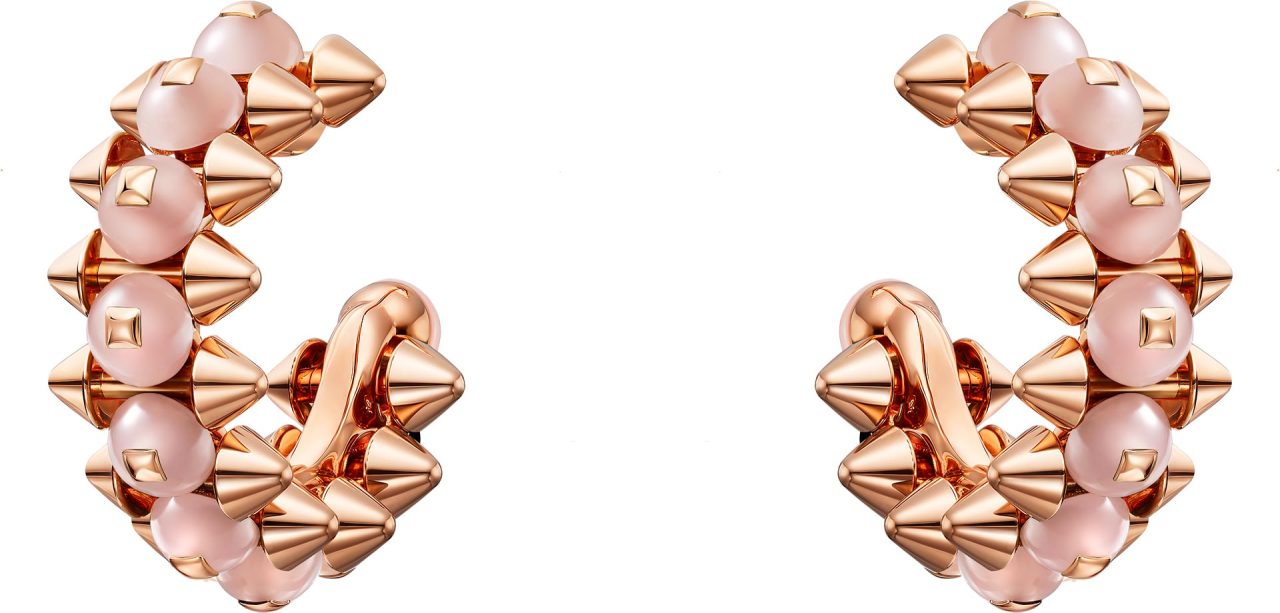ピンクゴールドにあしらわれたカラーストーンビーズは、レッド アゲート、グリーン アゲート、ピンクカルセドニー、オニキスといった石を使い、それぞれが繊細で奥行きのある色彩を放つ。ビーズは細かい計算のもと完璧に固定され、コレクション特有のボリューム感を一層引き立たせる。新作モデルは、ゴールドモデルの2倍にもおよぶパーツを精密に組み合わせるため、機械と人の手で成り立つ Cartier の巧みな技術が要となる。研ぎ澄まされた職人技によって生み出されるクリエイティブな新作に、魅了されてみて。