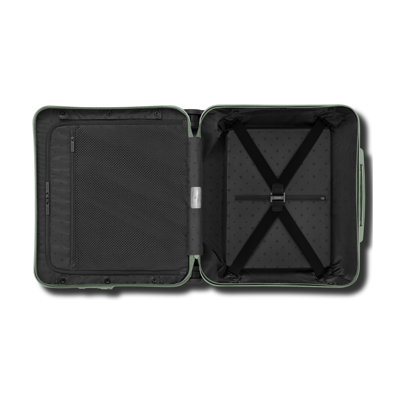 2000年に世界初のポリカーボネート製スーツケースとして誕生して以来、軽量製と耐久性を両立させてきた RIMOWA の象徴的デザイン。新色「ユーカリプタス」は、柔らかなグリーンにシルバーのニュアンスを加え、控えめながらも印象に残る洗練されたカラーリングに仕上げられた。