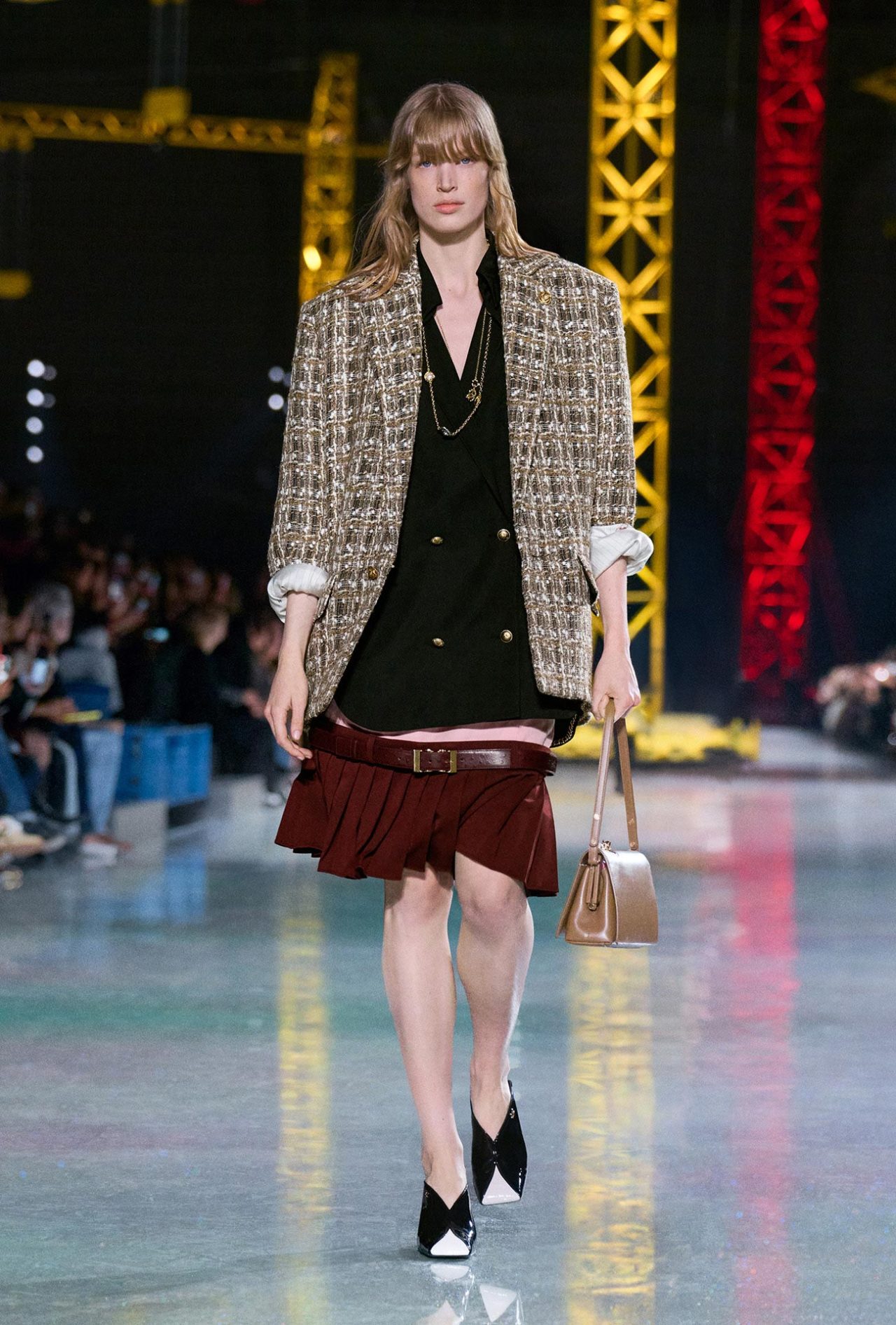 また、メゾンの新たなスタイルとして、ブークレツイードのオーバーシャツや、メンズウェアから着想を得たコンパクトツイードのブルゾン、1920年代のベルトドレスを彷彿とさせるドロップウエストドレスなどが登場。軽やかな佇まいは、自立した女性像をより引き立てる。