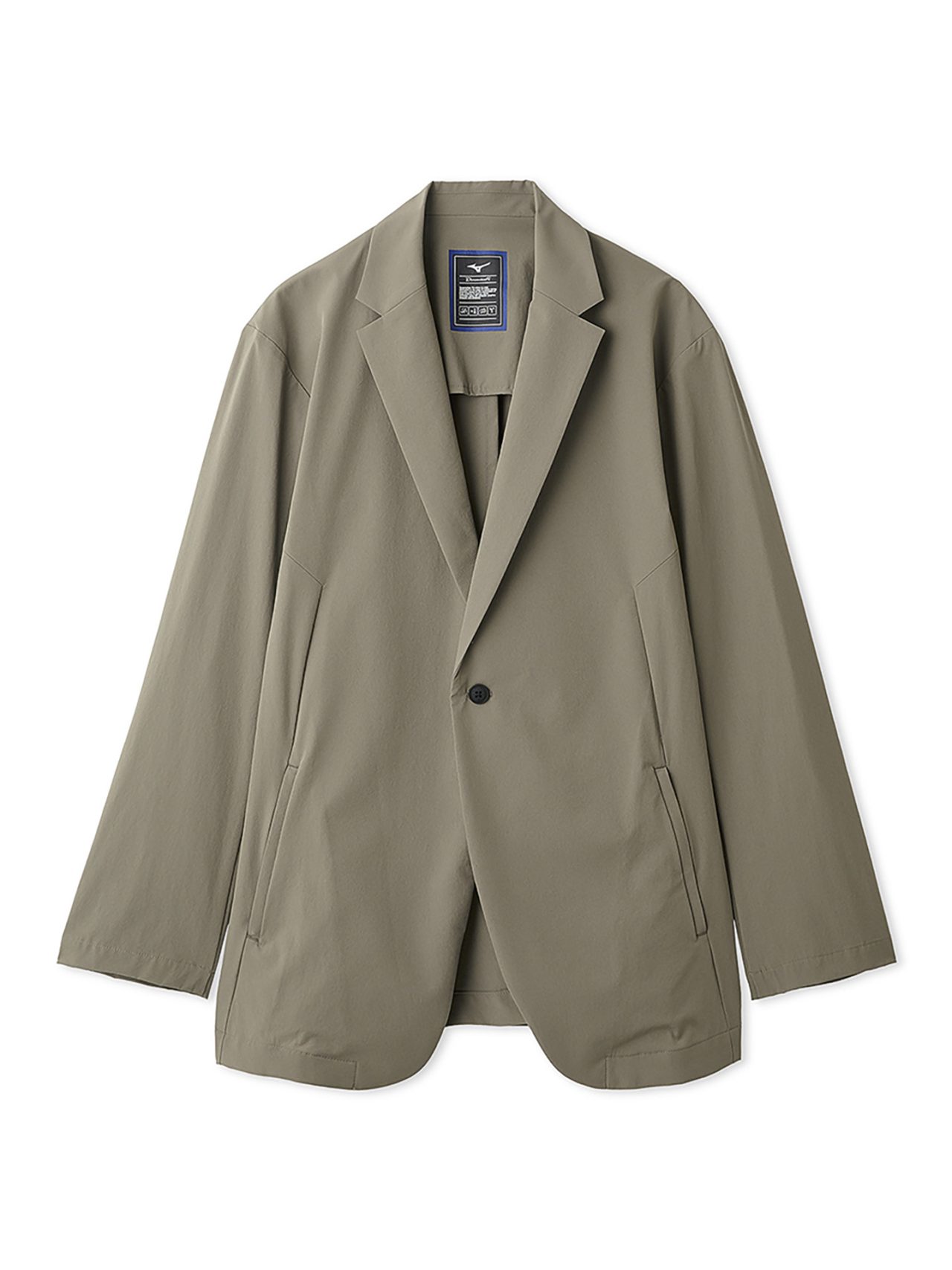 ジャケットとパンツは、吸汗速乾性と接触冷感機能に優れた Mizuno 独自素材「アイスタッチ」を用いたナイロンストレッチ生地で仕上げられている。カラーはグレーベージュとブラックの2色をラインナップ。単体での着用はもちろん、セットアップでのスタイリングは、涼やかさと品のある佇まいを両立する。さらに、オリジナル刻印入りボタンやランバードマークのプリントといったディテールもさりげないアクセントに。
