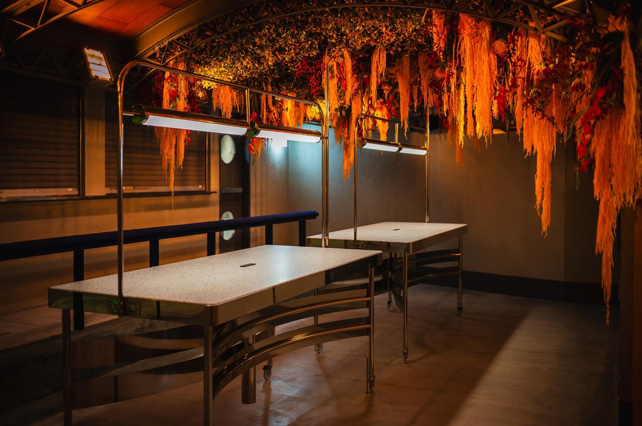インスタレーションイベントは、「Bal d’Afrique」が都会に放つ力強くも優美な植物のフォルムを視覚的に表現。原宿のクリエイティブスペース「THE TUNNEL」の無機質な空間に、アフリカの生命力を象徴する鮮烈なオレンジ色の演出が施された。また、花と植物を扱うクリエイティブスタジオ edenworks (エデンワークス) の設立者で、フラワークリエーターの篠崎恵美によるフラワーインスタレーションも展開され、ダイナミックで鮮やかな花々がいっそう空間を彩った。