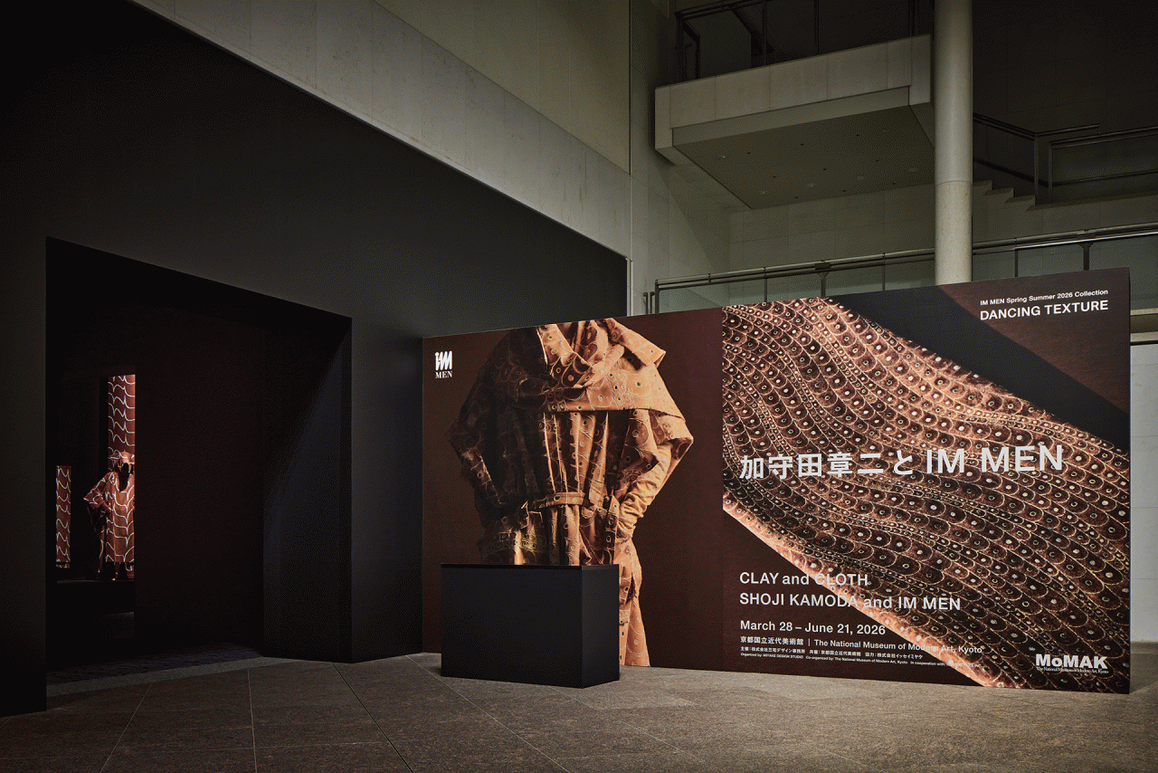 IM MEN (アイム メン) の2026年春夏コレクション「DANCING TEXTURE」の着想源となったのは、日本の陶芸家・加守田章二 (1933-1983) の作品。本展では、最新コレクションを象徴するオリジナルテキスタイルで仕立てられたピースとともに、加守田の挑戦的かつ独自の造形美を放つ陶芸作品をあわせて紹介する。さらに同氏にゆかりの土地や人々の記録、ブランドのコレクション製作の工程を綴った映像作品も上映される。また ISSEY MIYAKE KYOTO (イッセイミヤケ) のギャラリー・KURA (クラ) では、KURA 展「ELEMENTS」が開催中。加守田の繊細な仕上げを衣服づくりの手法で具現化したシリーズを展開する。
