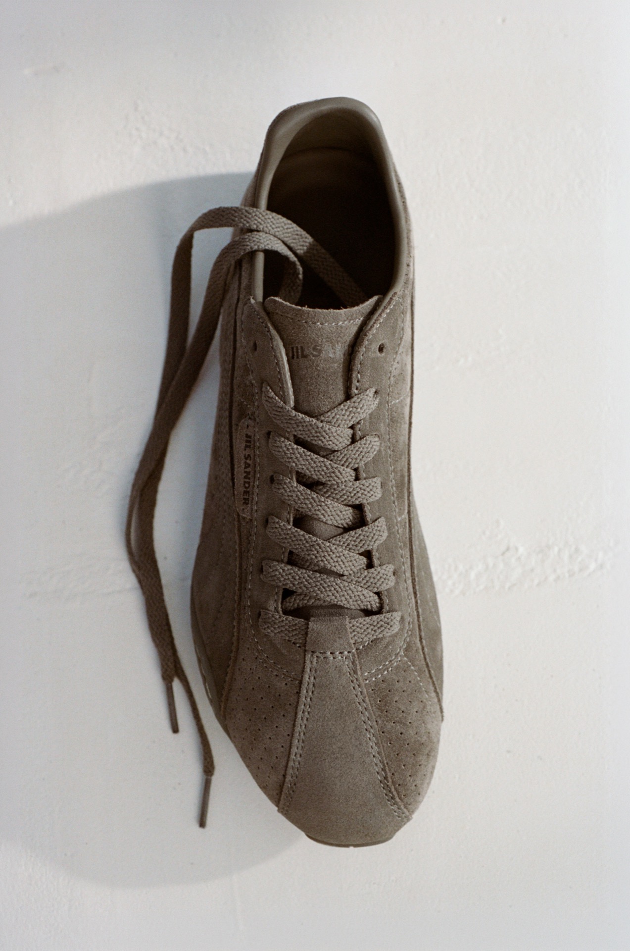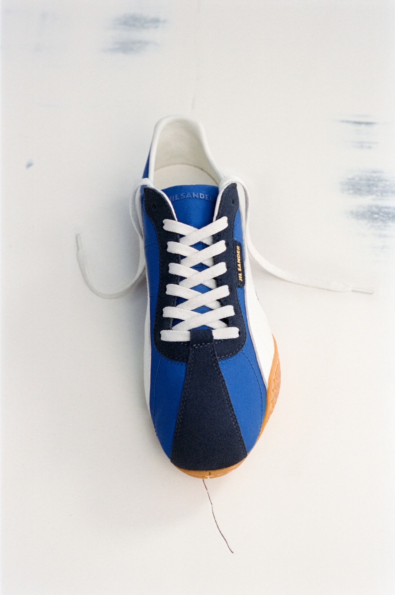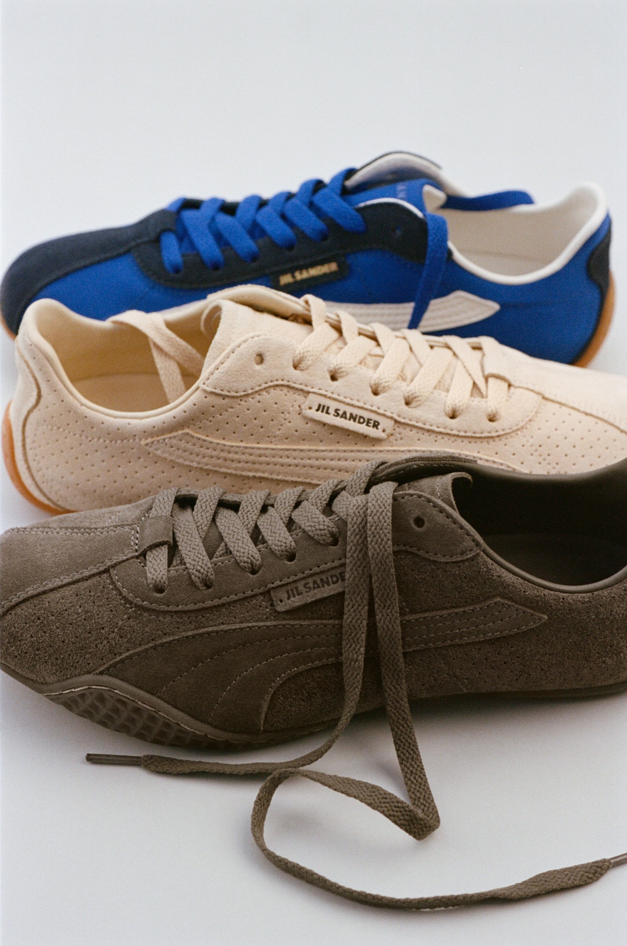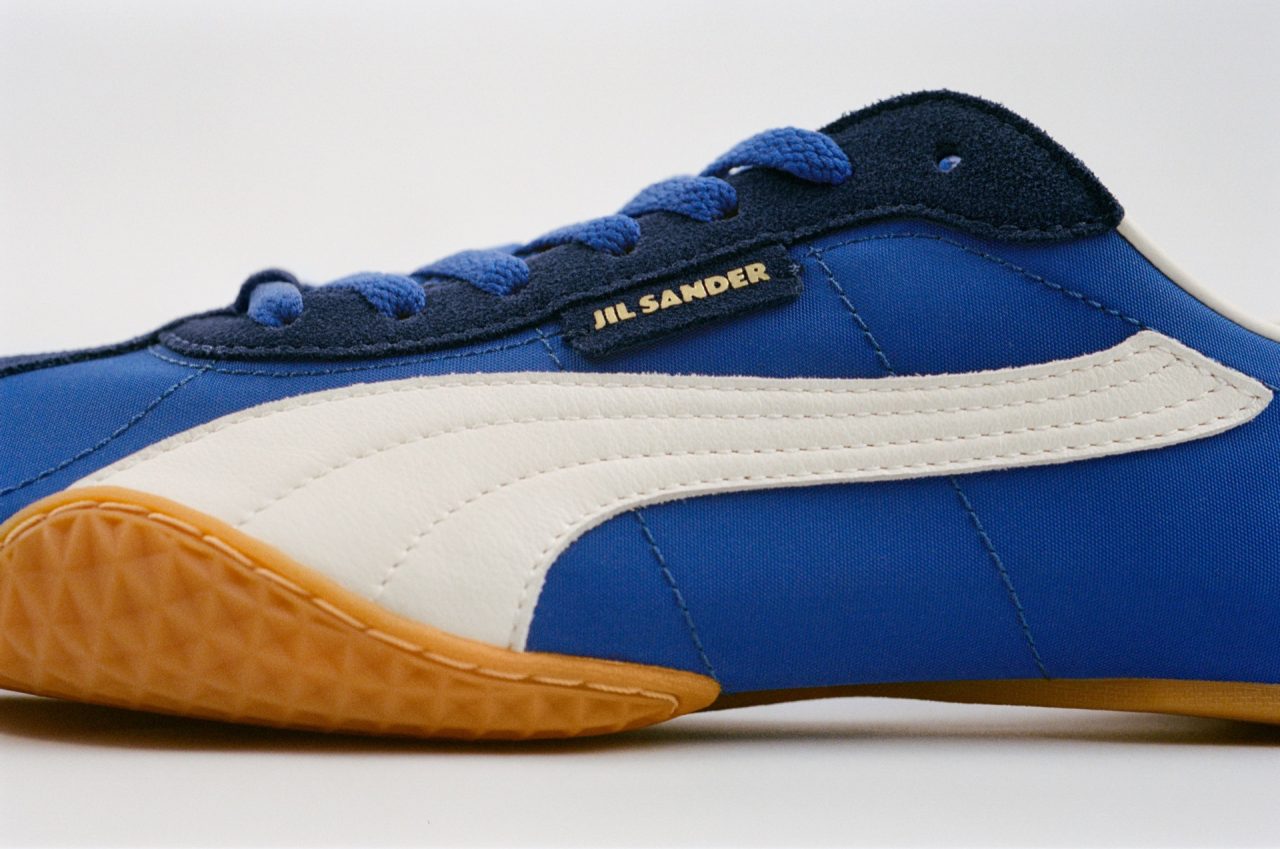 落ち着いたブラウンと、柔らかなベージュのスエード素材の2種、鮮やかなブルーのナイロン素材の1種を加えた、全3型がラインナップ。シュータンとアッパーのピスネームには、JIL SANDER のブランドロゴが配され、さらにヒール部分にも PUMA のキャットロゴがさりげなくあしらわれている。両ブランドのネームが揃う一足という特別感もまた、コラボレーションならでは。