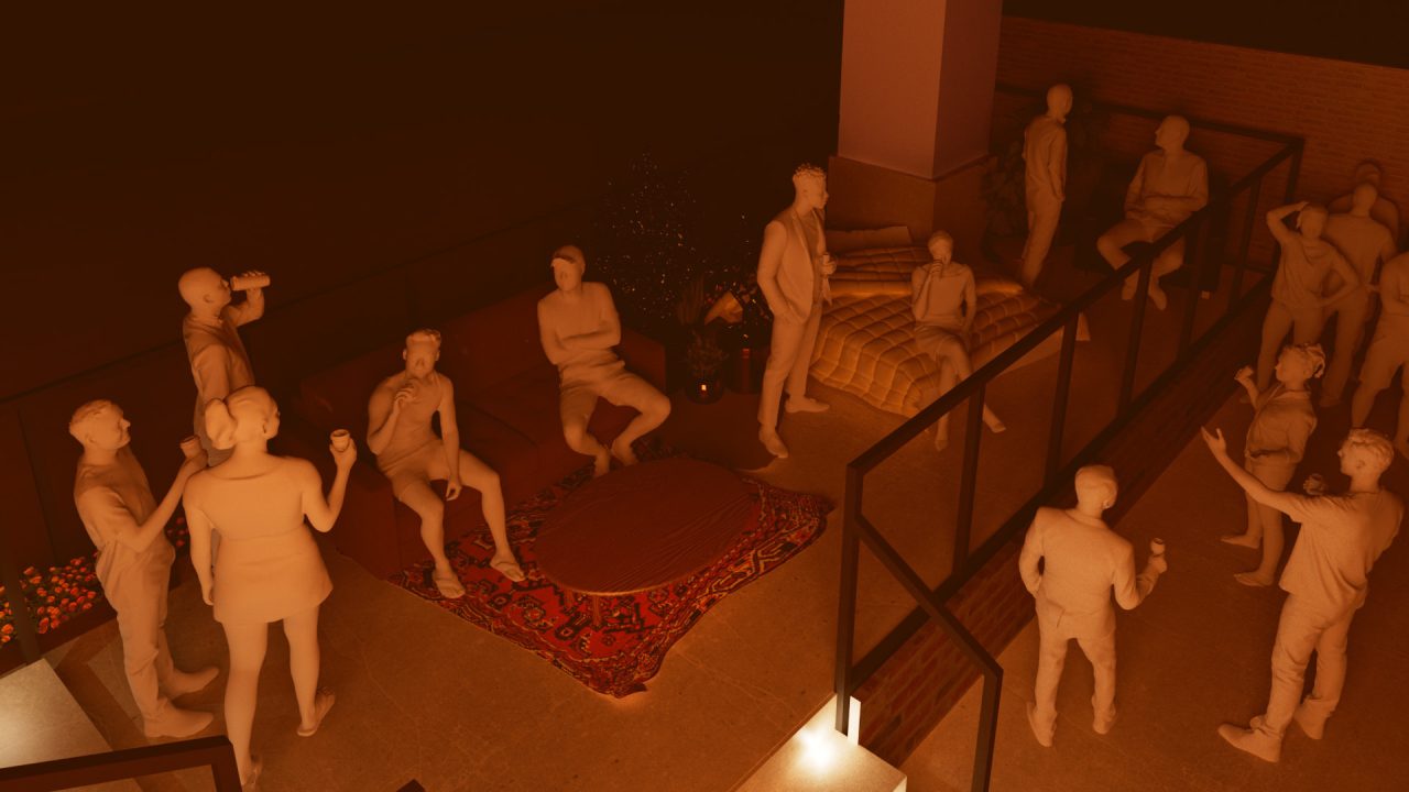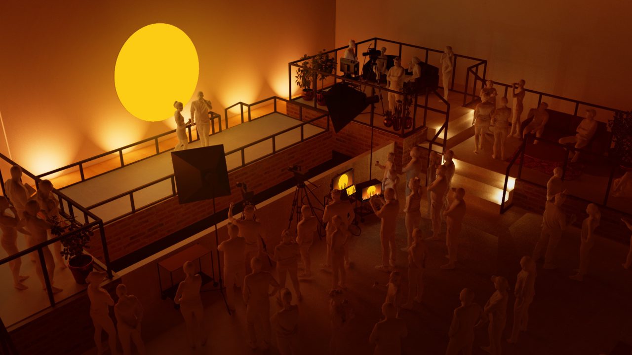 会場には、実際に使用されたCMの撮影現場がセットされ、来場者はその世界観の中で「BLONDE」を飲みながら美術セットや “裏側” の様子を体験・撮影することが可能だ。マジックアワー仕様の巨⼤な太陽を眺めながら、屋上を歩き渡ってみたり、ベンチでくつろいでみたりと、自由に過ごしながらCMの被写体になったかのような気分を味わえる。