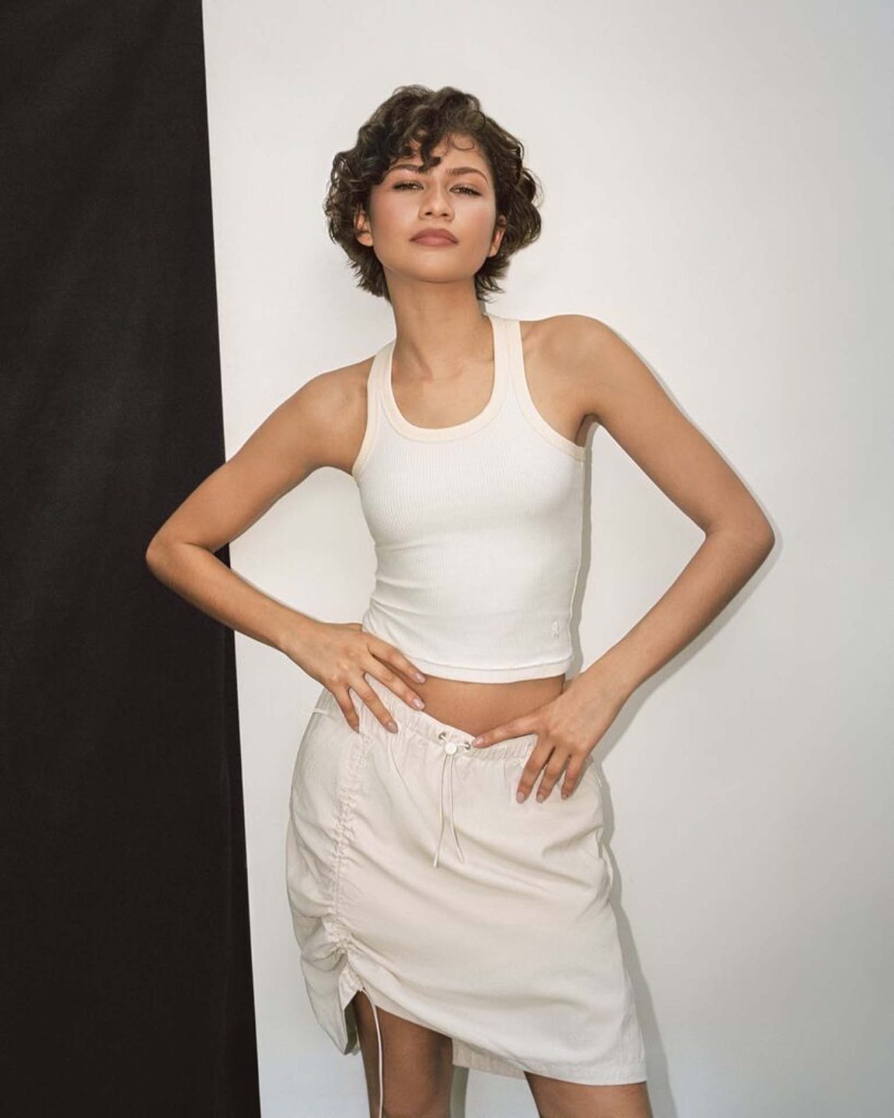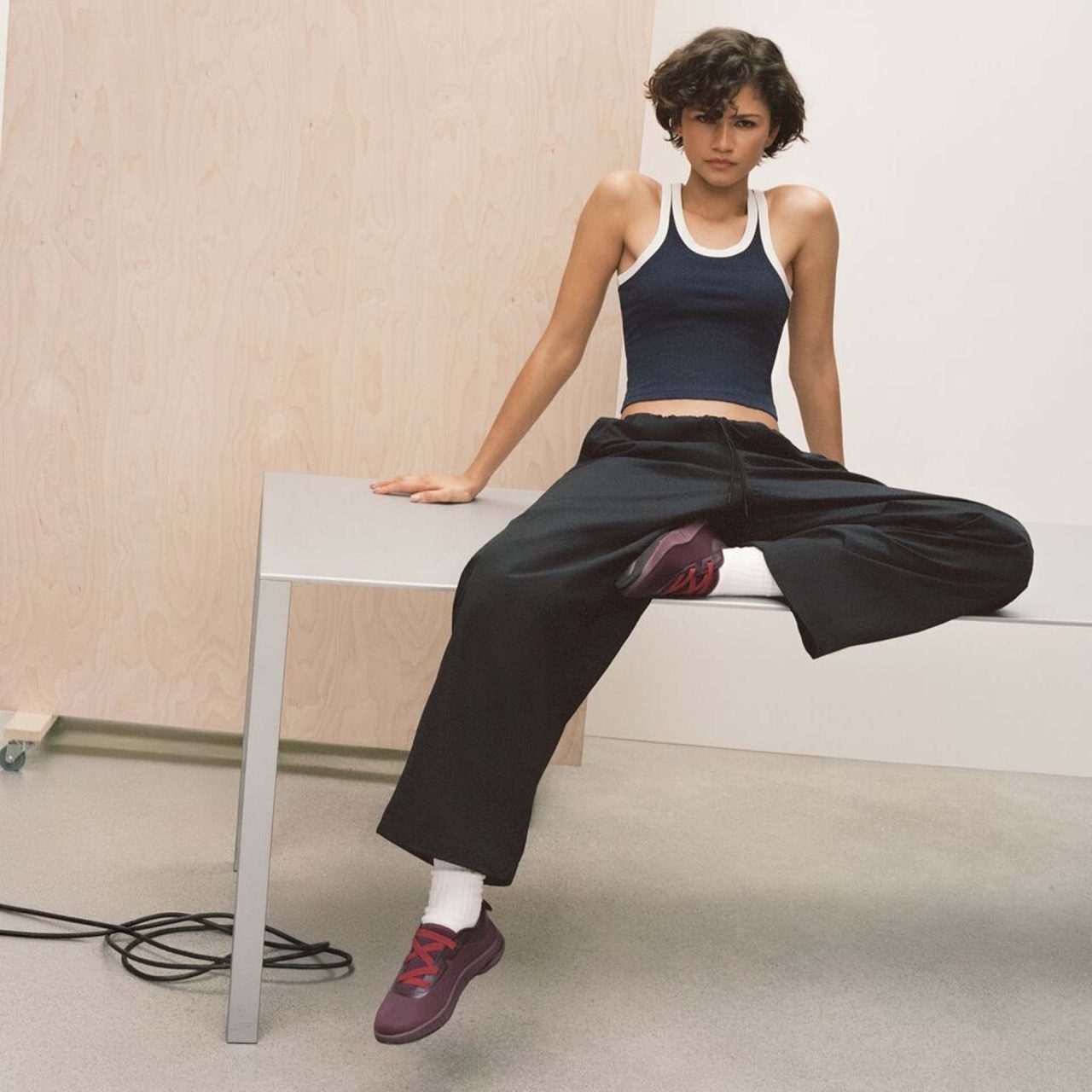 Zendaya と、彼女の長年のコラボレーターである Law Roach (ロー・ローチ) の視点が反映された本コレクション。機能性とエフォートレスなスタイルを両立させたアパレルラインには、リブタンクトップやハーフジップアノラック、ドローストリングミディスカート、パラシュートパンツなど、日常のあらゆる動きに寄り添う汎用性の高いアイテムが揃う。
