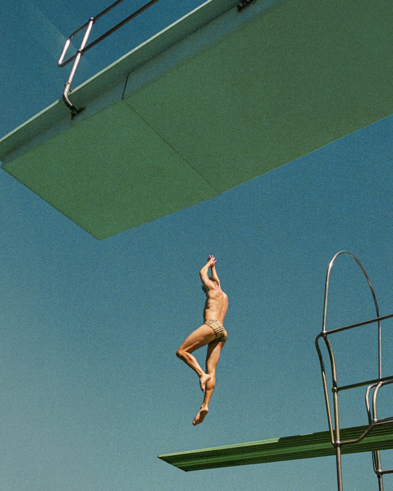 彩り豊かなパラソルやビーチチェア、青空に映える飛び込み台などが夏を象徴し、弧を描くようなダイブ、午後の柔らかな光を受けた休息といったプールサイドにおける躍動感と静けさを交錯させた。 Burberry のチーフ・クリエイティブ・オフィサー、Daniel Lee (ダニエル・リー) が次の通り語るように、 “夏の記憶” を呼び起こすような情景を切り取っている。「屋外プールには、イギリス人にとって特別なノスタルジーが宿っている。日差しが差し込むそのときを逃さず、誰もが夏を楽しもうとする。そんな1日を、水辺で過ごす親密な時間として表現した」。