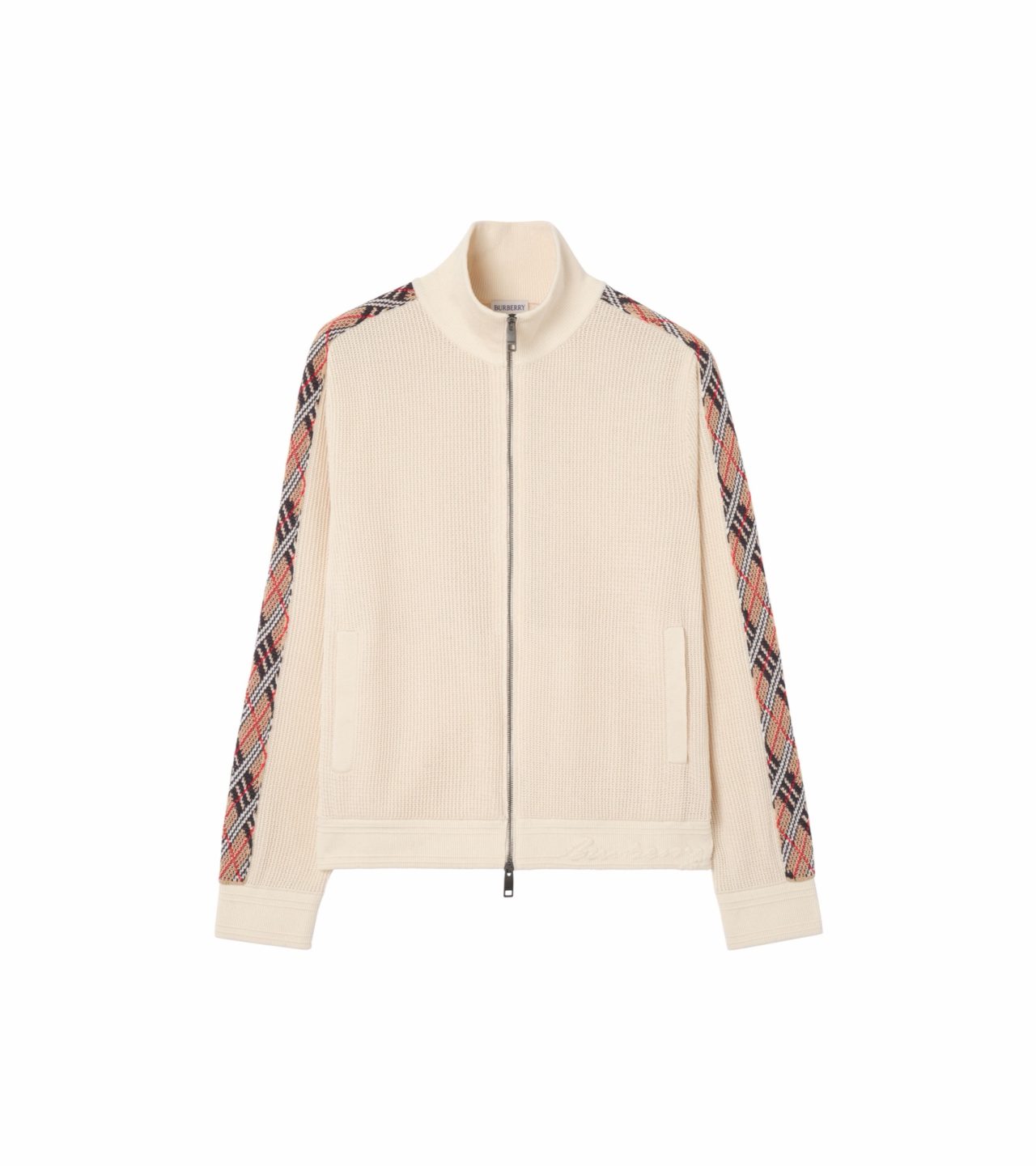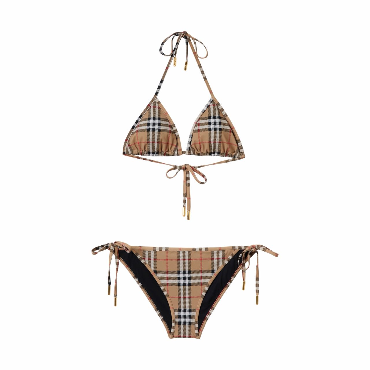 さらにフットウェアでは、ややフラットでスリムな形のスニーカー「Knight Runner (ナイトランナー )」のほか、ストラップにチェックを取り入れたサンダル「Urchin (アーチン)」やスライドタイプの「Pavilion (パビリオン)」などが揃い、軽快な足元を演出してくれる。またサンドベージュのバーバリーチェックが目を引くバッグ「Margate (マーゲート)」は、マダガスカル原産の植物、ラフィアヤシを用い、職人によって丁寧に編み上げられている。クロシェ編みのバケットハットやラップアラウンド型のサングラスなど、夏の日差しに寄り添うアイテムも用意。水着からウェア、足元や小物に至るまで多彩に展開する Burberry のサマーコレクション。夏への期待を高める、魅力的な提案となっている。