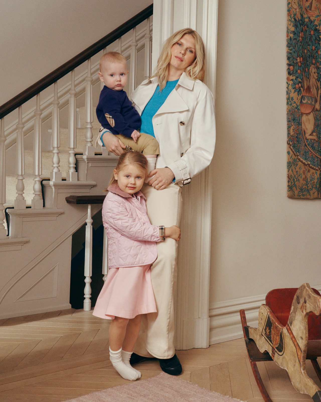 長年にわたり Burberry と関係を築いてきた一家は、これまでもメゾンのキャンペーンに登場してきた。最新キャンペーンでは、世代を越えて受け継がれるスタイルを、家族のポートレートを通して表現。家族と過ごすひとときから、母としての偉大さや美しさが描き出されている。