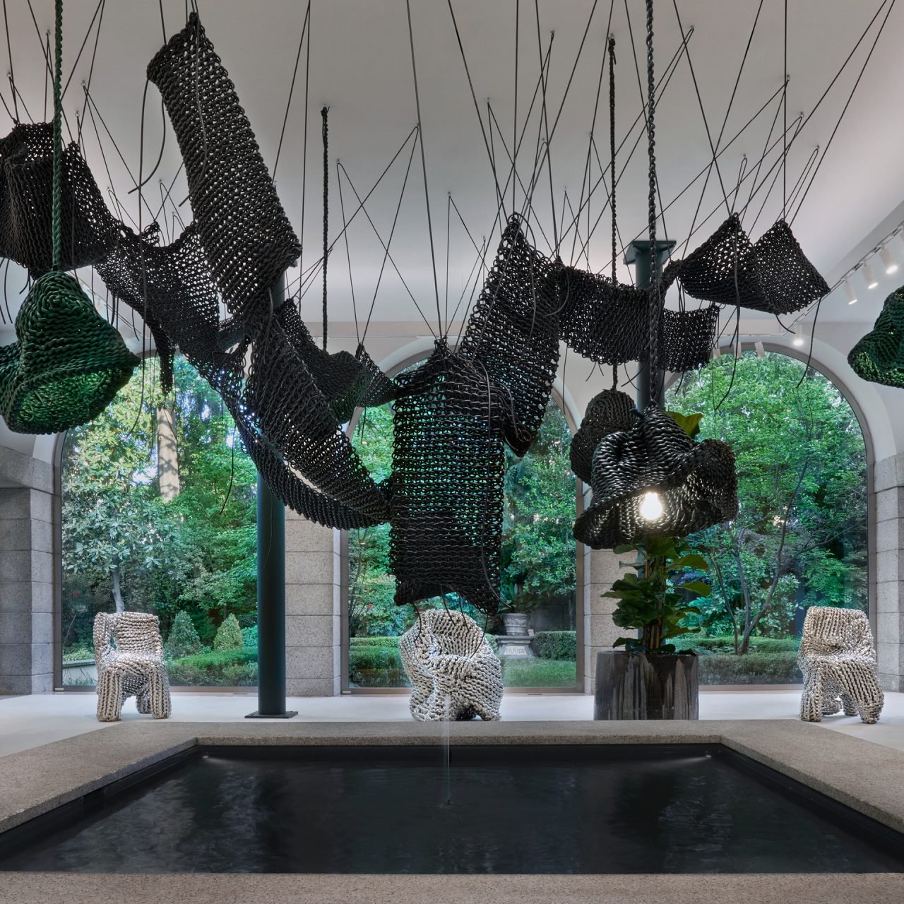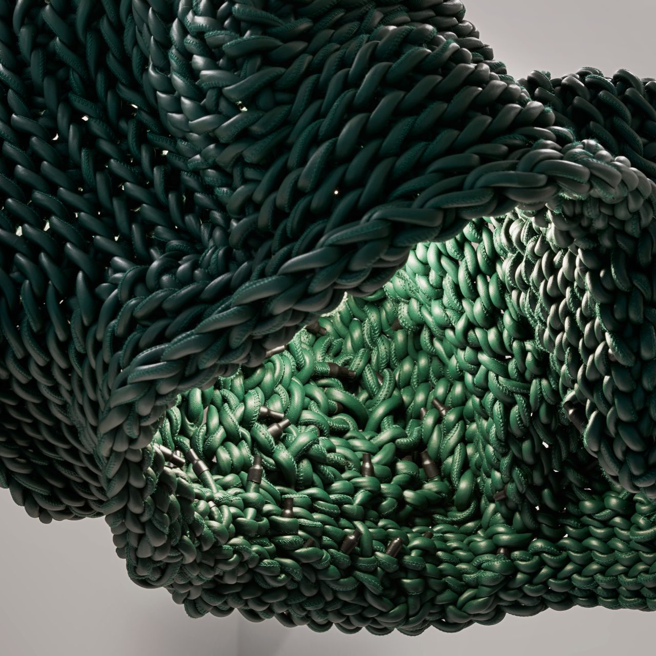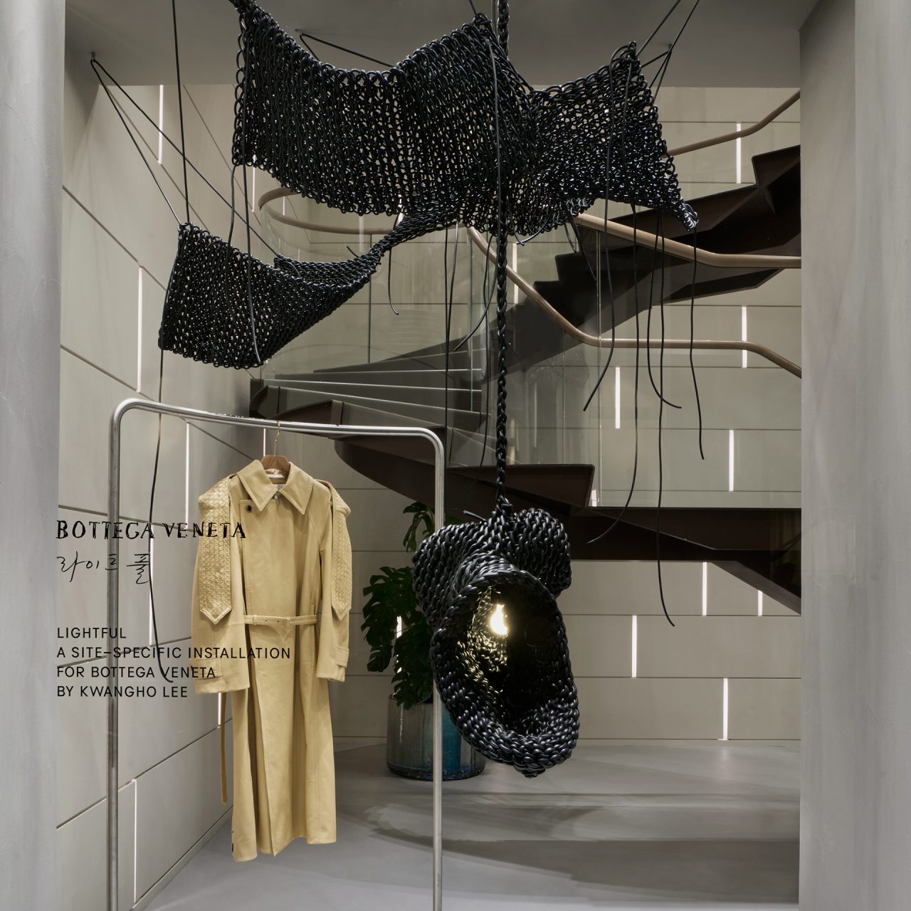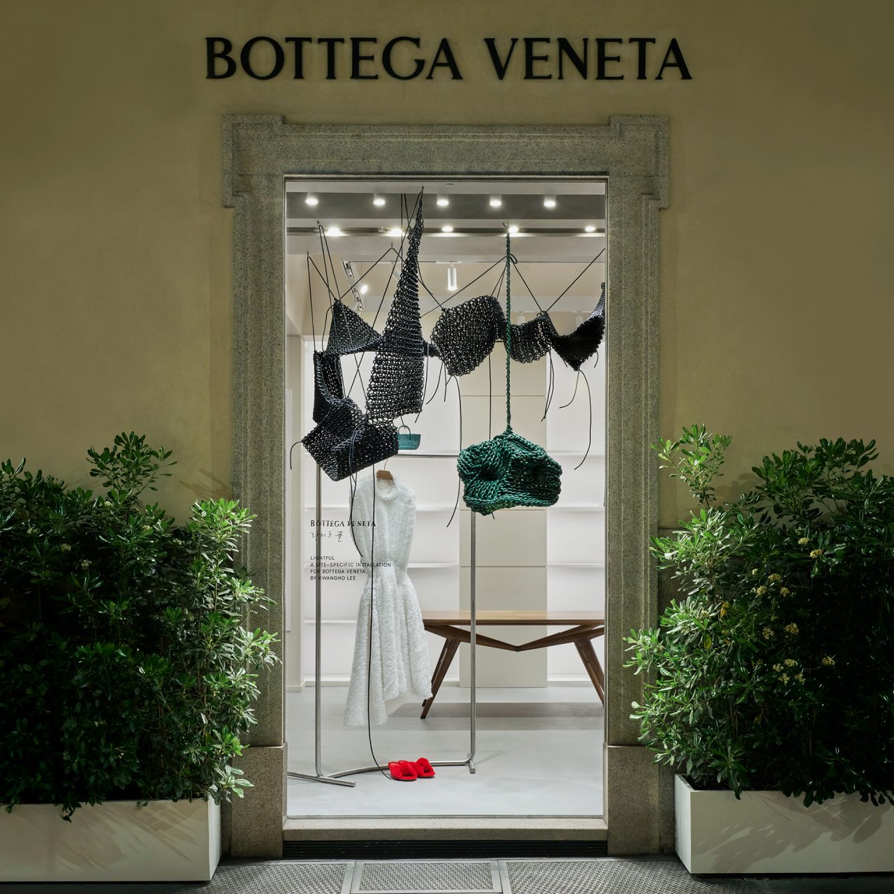 黒と緑のレザーで彩る。ボッテガ・ヴェネタがイ・カンホとコラボレーションしたインスタレーションを開催