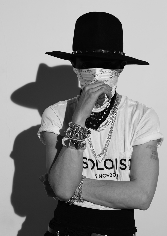 デザイナーの宮下貴裕が創造してきたもの、過去から存在するものを破壊し、再構築することで生み出されるTAKAHIROMIYASHITATheSoloist. の洋服。“INTRO.” では、ウエスタンコスチューム、エドワーディアン、ヴィクトリアン、バロック、テーラード、ワーク、ミリタリーなど、実にさまざまなエッセンスが召還され、宮下による多角的な解釈を介して、先鋭的にアップデートされた世界観を生成している。オールハンドメイドのフックやDカン、メタルボタン、ウエスタンディテールのコンチョやブレードなどの装飾も欠かせない要素で、時代や様式、国籍を超越したフラットな広がりの中で自由にチューニングされ、大きな存在感を放っている。