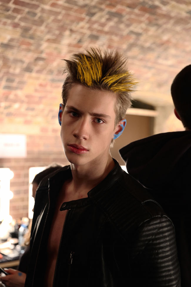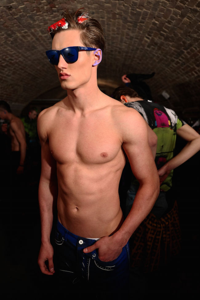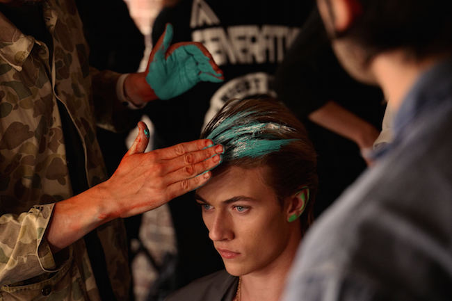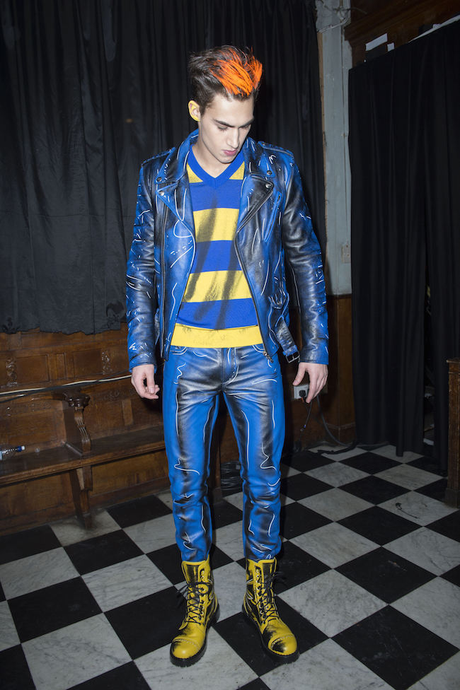 現代アートから飛び出してきたようなヘアメイクが主役、ジェレミー・スコットによるモスキーノメンズバックステージ