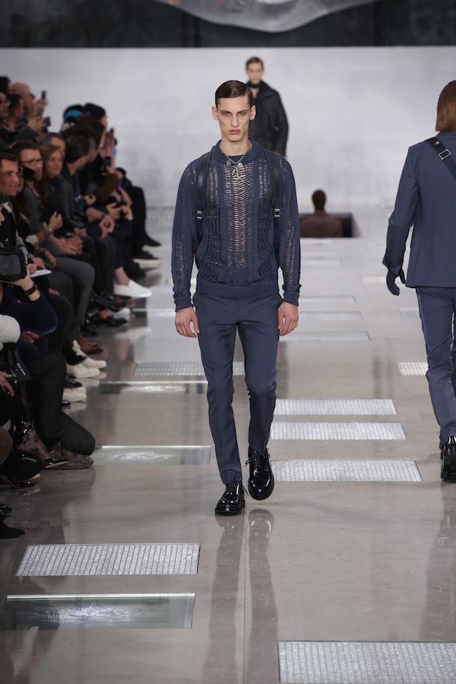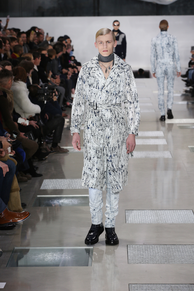 フランス人にとってジャポニズムが永遠の憧れであるように、今回のショーにおいても日本の文化はストーリーの重要な役割を担っている。ショーの後半で登場したひび割れたような質感のデニムは、日本に古くから伝わる伝統的な染色技術「ろうけつ染め」を用いたもの。ショーでは、同じく「ろうけつ染め」を世界初レザーに用いたユニークなアイテムも登場している。またショーの会場では日本人の現代美術家、大巻伸嗣によるアートインスタレーションを設置。中に浮かぶ極めて薄いファブリックは、風を受けてフリュイッドな流れを捉えるとともに、イリデッセントな輝きでショーの幻想的なアトモスフィアを引き立てた。