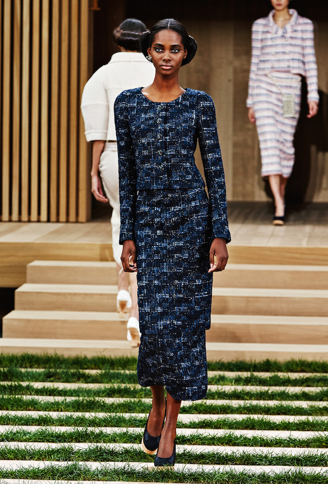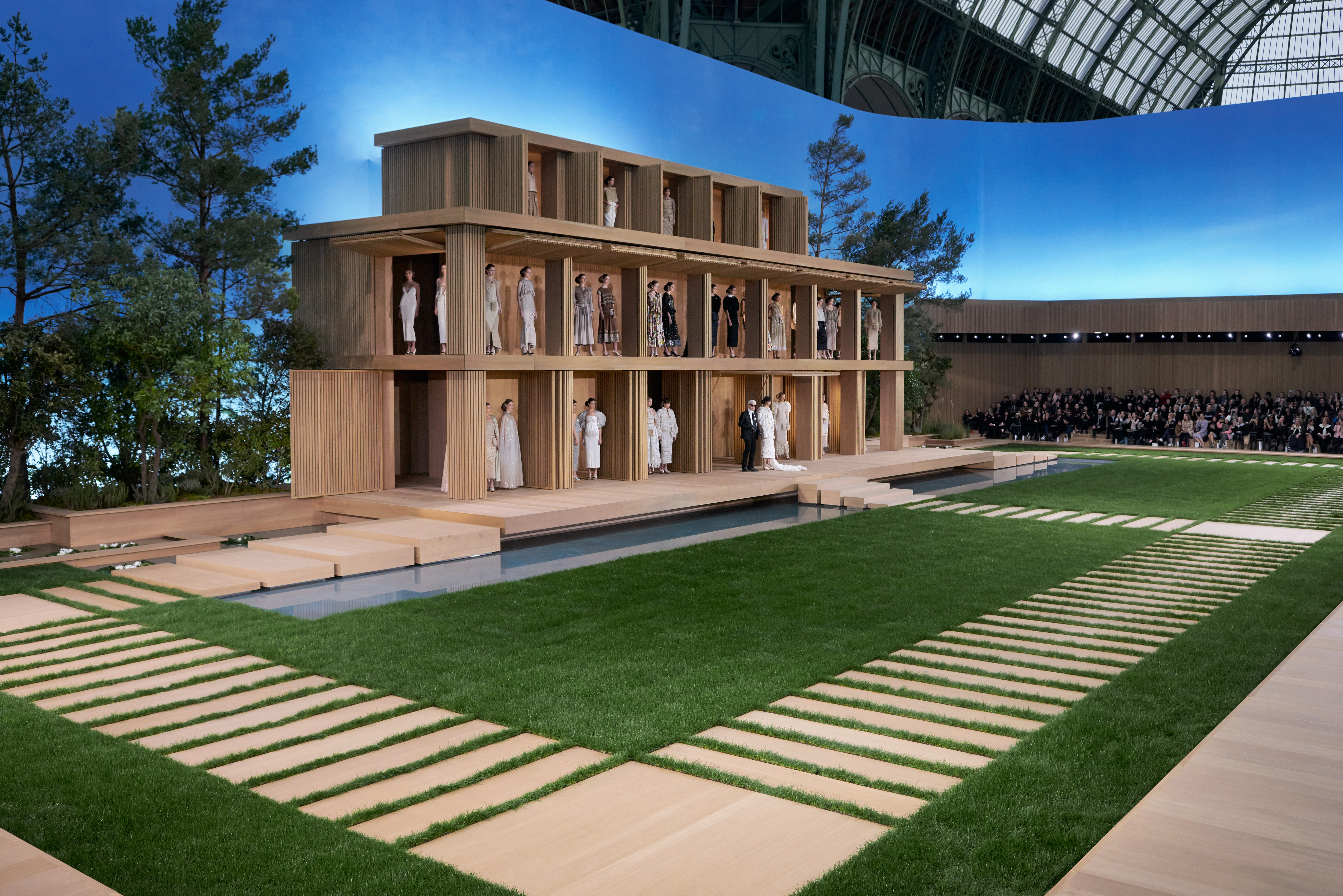 Chanel (シャネル) 無くしてクチュールにあらず。モードの帝王 Karl Lagerfeld (カール・ラガーフェルド) は毎シーズン意表をつくようなテーマと新たなアイデア、そして絢爛豪華なステージでファンを楽しませてくれる。このたった1日のショーのために会場である Grand Palais (グラン パレ) はこれまでに Le Corbusier (ル コルビュジェ) を彷彿とさせる現代建築から巨大なバーチャル温室、そしてセレブリティが集うカジノなど様々な変身を遂げてきた。そして今季2016年春夏シーズンのステージはというと、芝生のランウェイと日本家屋のような木造の家。ジャポニズムがインスピレーションかと思いきや、真相はより壮大だ。メゾンを象徴するカラーであるベージュを再解釈したコレクションでは、史上最もラグジュアリーなエシカルファッションがテーマとなっている。