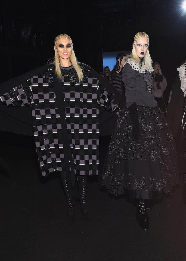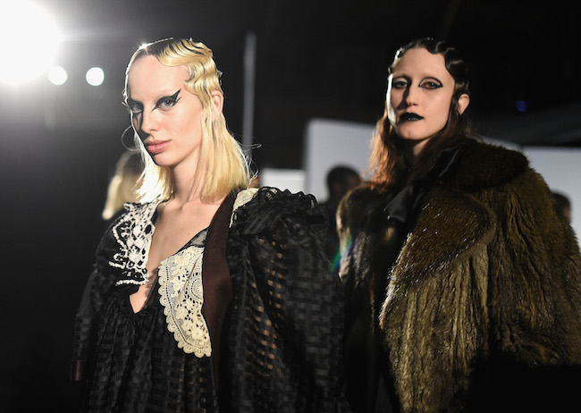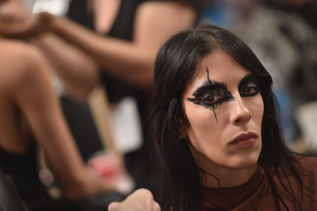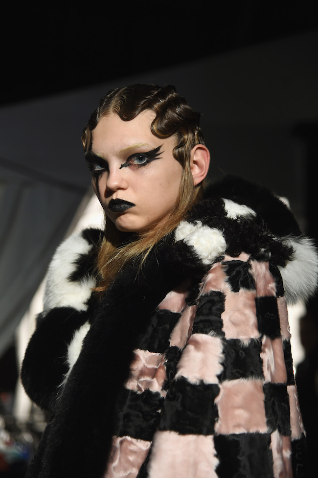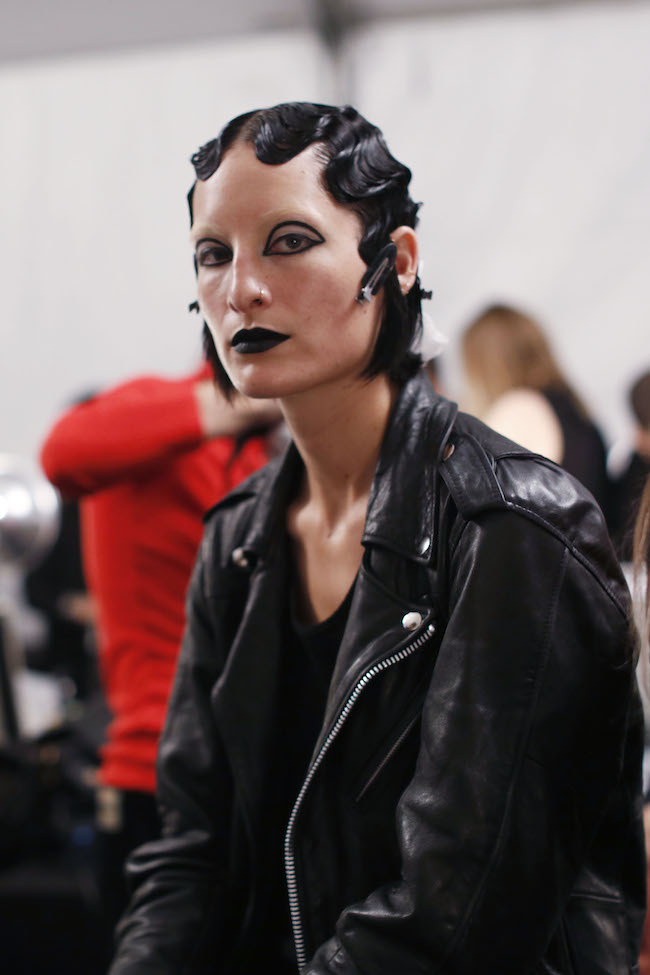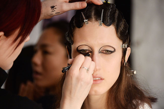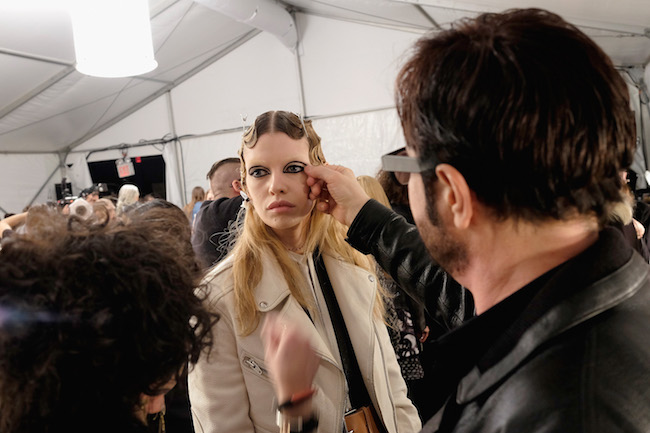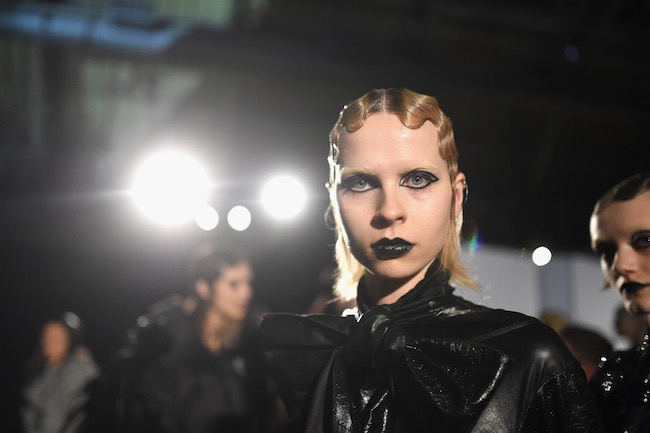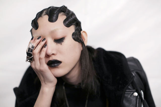 18日に NY にて発表された Marc Jacobs (マーク・ジェイコブス) の2016-17年秋冬コレクション。Vetements (ヴェトモン) もビックリのスーパーオーバーサイズの洋服やプラットフォームシューズ、それに加えサプライズゲストとして Lady Gaga (レディ・ガガ) がランウェイに登場するなど様々な “バズ” が飛び交ったが、それにも増して注目すべきはゴシックムード満載のメイクアップ。毎度お馴染み、NARS (ナーズ) の創設者 François Nars (フランソワ・ナーズ) が魔法の筆をふるい、Guido Palau (グィド・パラウ) が鮮やかなコテさばきでフィンガーウェーブを作り出すバックステージは、ランウェイと同じくダークでロマンティックなムードに包まれている。