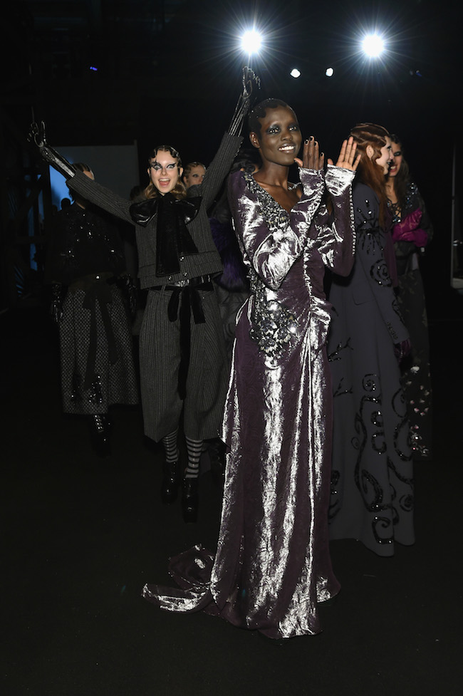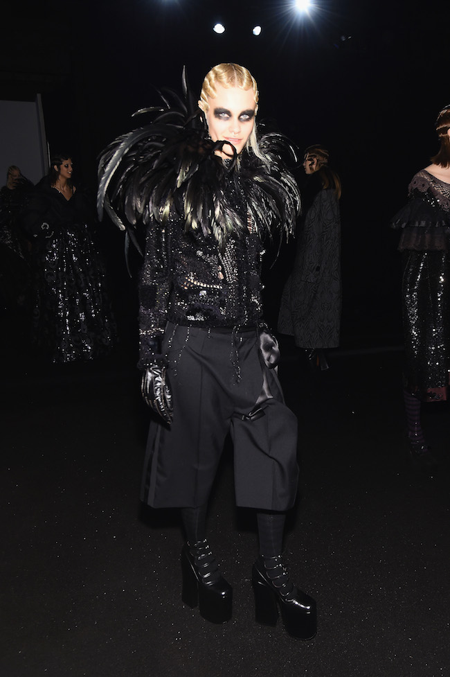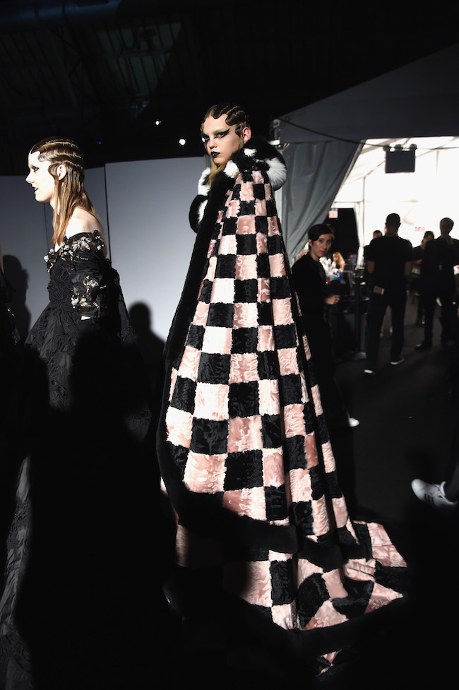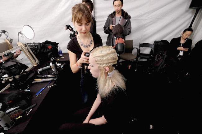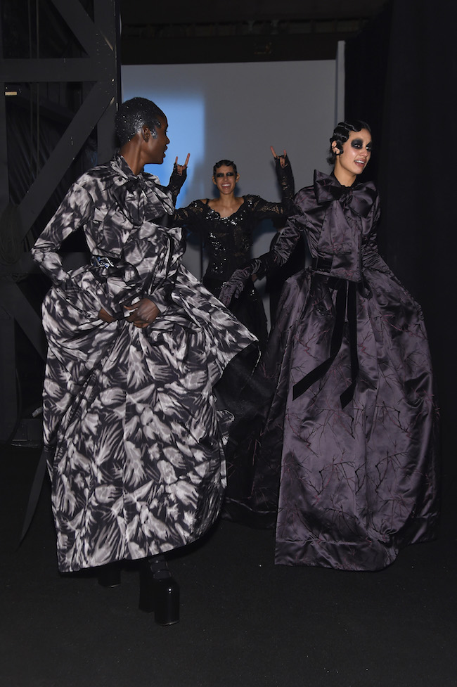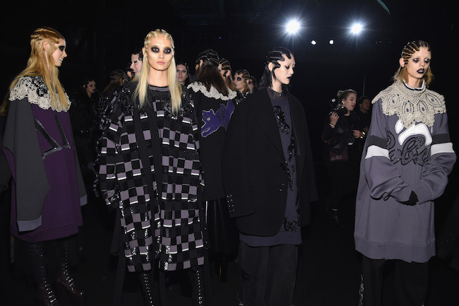 18日に NY にて発表された Marc Jacobs (マーク・ジェイコブス) の2016-17年秋冬コレクション。Vetements (ヴェトモン) もビックリのスーパーオーバーサイズの洋服やプラットフォームシューズ、それに加えサプライズゲストとして Lady Gaga (レディ・ガガ) がランウェイに登場するなど様々な “バズ” が飛び交ったが、それにも増して注目すべきはゴシックムード満載のメイクアップ。毎度お馴染み、NARS (ナーズ) の創設者 François Nars (フランソワ・ナーズ) が魔法の筆をふるい、Guido Palau (グィド・パラウ) が鮮やかなコテさばきでフィンガーウェーブを作り出すバックステージは、ランウェイと同じくダークでロマンティックなムードに包まれている。