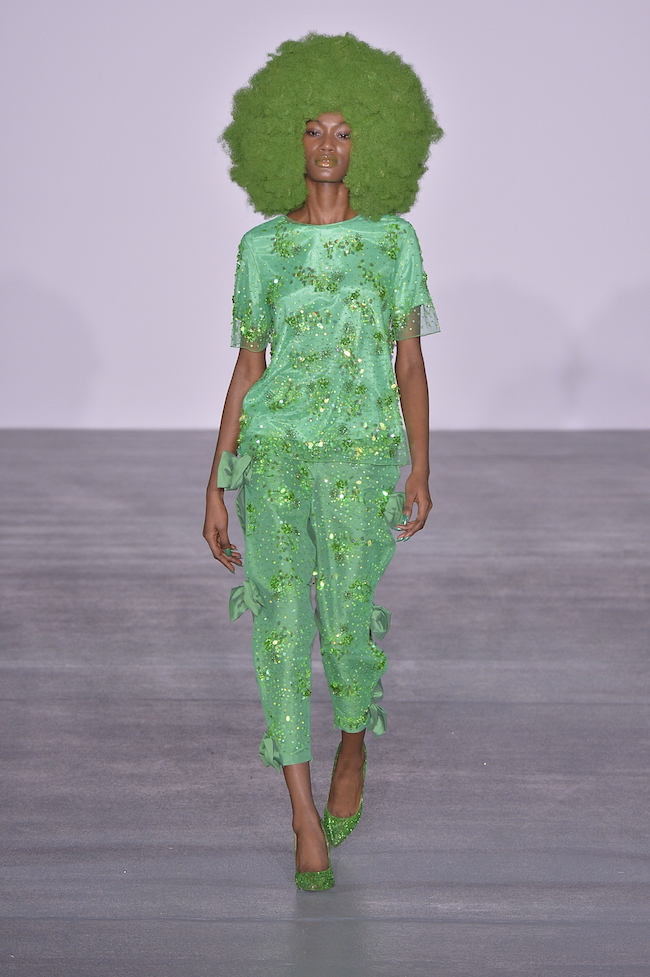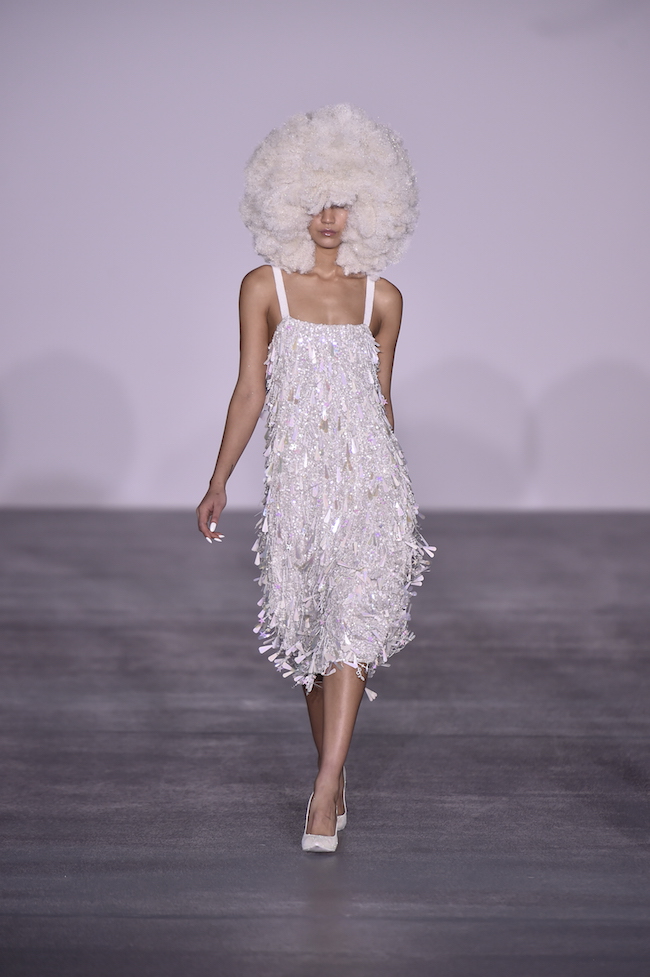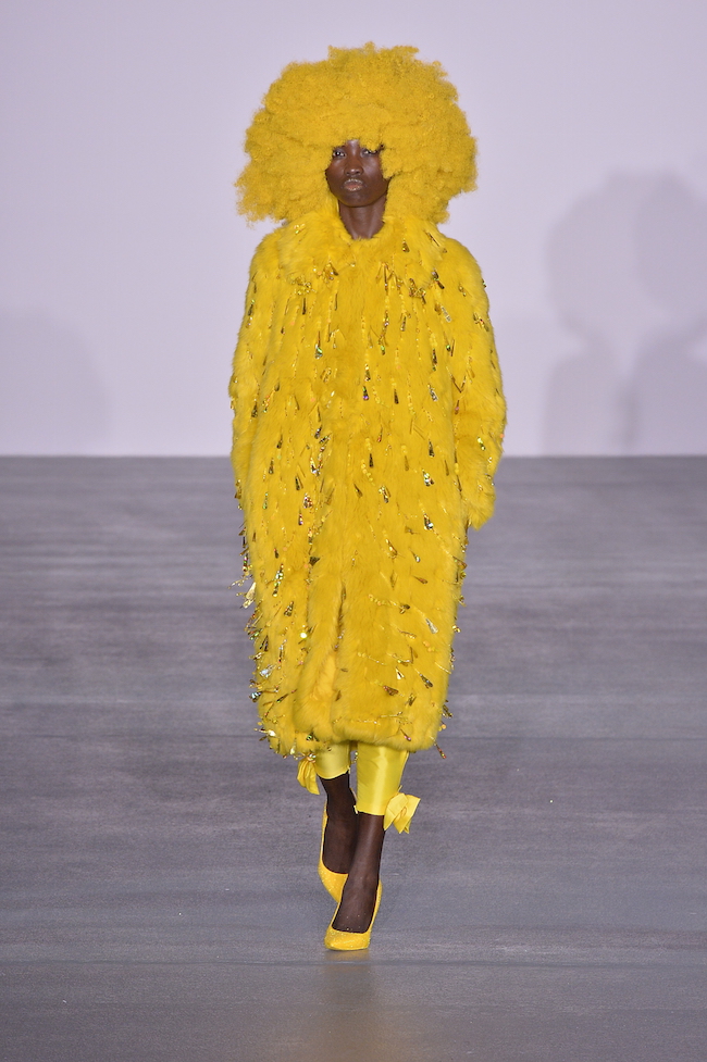 ロンドンの新進気鋭デザイナー、Ashish Gupta (アシシュ・グプタ) が手がけるウィメンズウェアブランド Ashish (アシシュ) はいつも単純明確だ。まず第一に彼はカラフル、それも目の醒めるような鮮やかな色をふんだんに使ったスタイルが特徴だ。このことは2004年に発表されたデビューコレクションから現在に至るまで、一貫して打ち出されてきたブランドの DNA だ。そして第二に、彼はスパンコールに目がない。彼が2014年秋冬コレクションで発表した、総スパンコールのプルオーバーは、そのキャッチーさから世界中のセレブリティやアーティスト、そしてインスタグラマーたちを虜にした。そして今季、2016-17年秋冬コレクションにおいては、一目で分かる明確なテーマがある。虹色のカラーパレット、当然ながら総スパンコール刺繍、そして頭はメガサイズのアフロヘア。その様子はさながら映画「サタデー・ナイト・フィーバー」から飛び出してきたような派手さだ。ショーでは全身ワントーンのキャッチーなスタイリングが提案されたが、ルック2のイリデッセントなスパンココールをあしらったフラッパードレスは、きっと Rihanna (リアーナ) あたりがスニーカーと合わせて着用するはずだ。