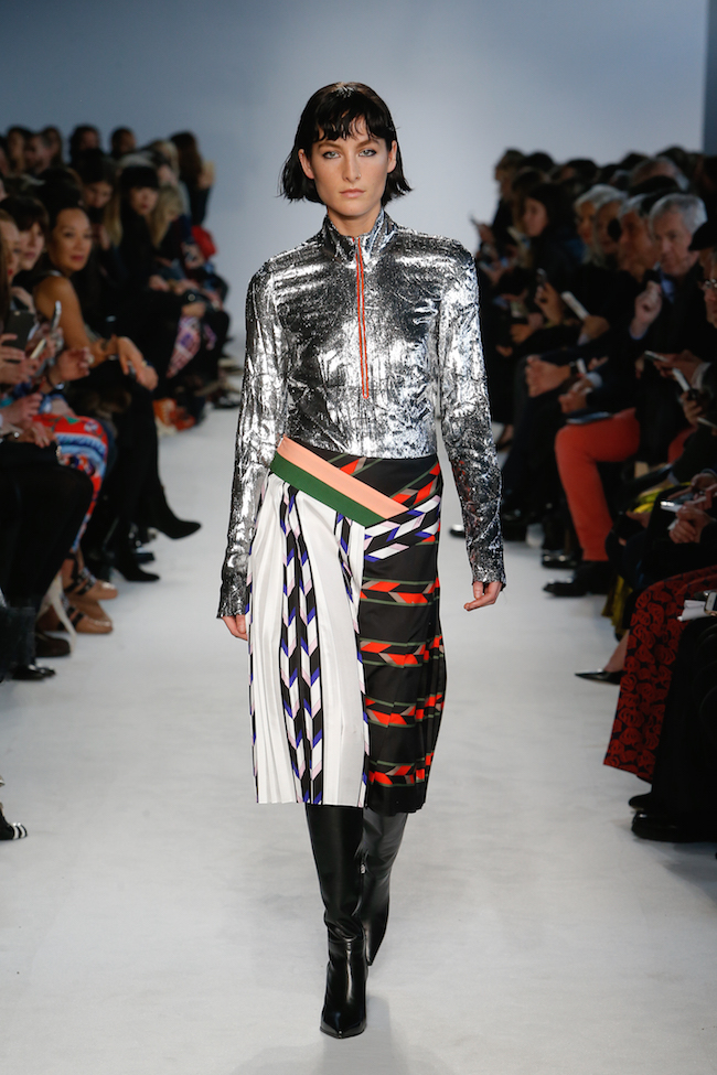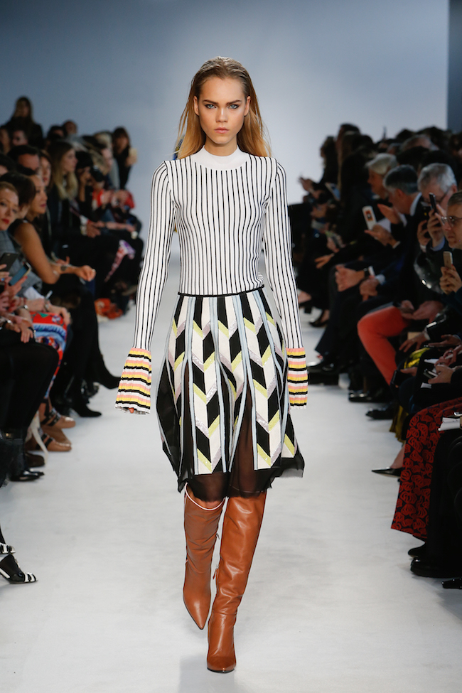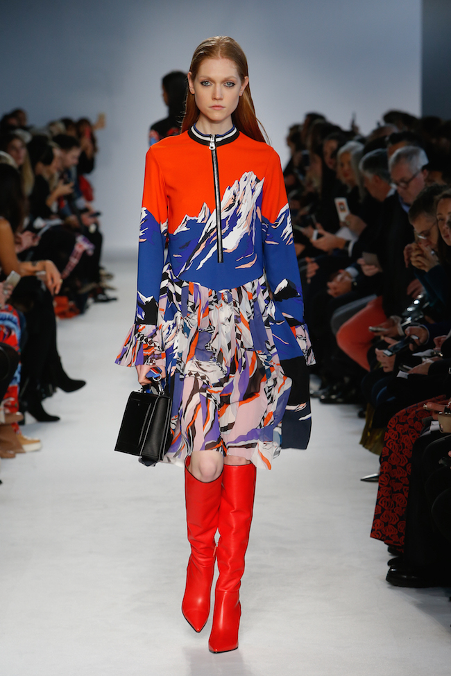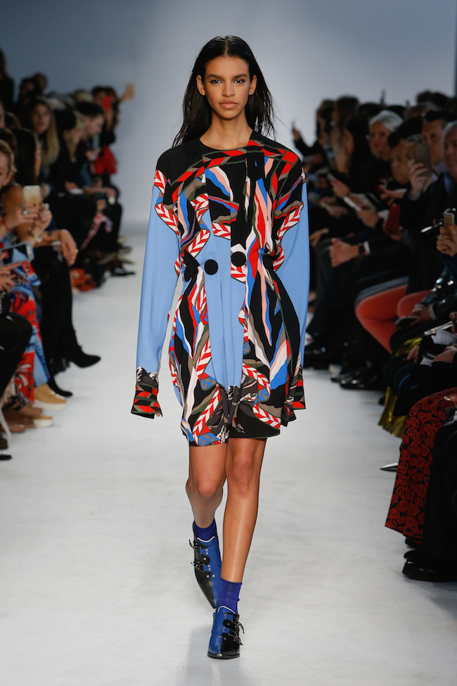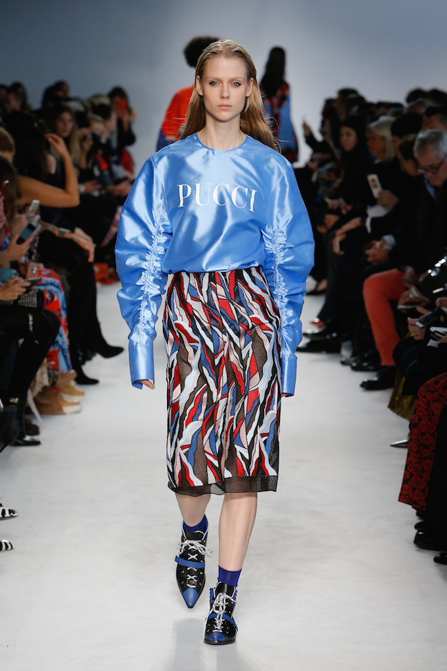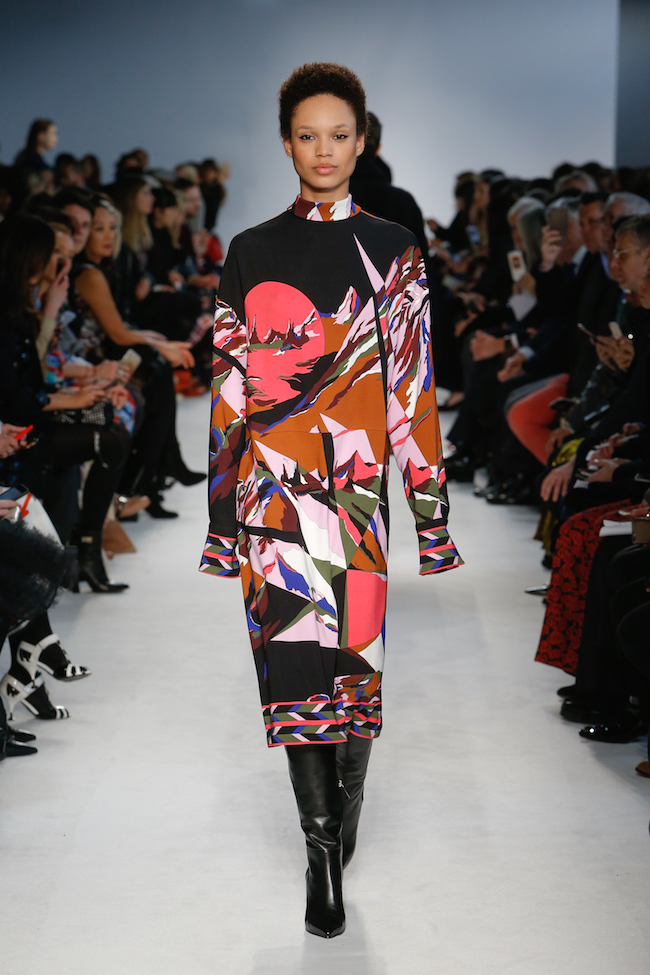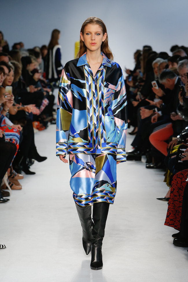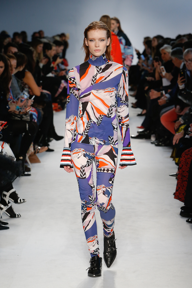 EMILIO PUCCI (エミリオ・プッチ) 2016-17年秋冬コレクションがミラノにて発表された。Massimo Giogetti (マッシモ・ジョルジェッティ) がクリエイティブ・ディレクターに就任して2回目となる本格的なランウェイショーを開催した今季、インスピレーションとして思い描いたのは、50年代を代表する写真家であり、60~70年代にかけてのジェットセッターのライフスタイルを撮り続けた Slim Aarons (スリム・アーロンズ) の風景写真だ。ハッとするほど鮮やかな紺碧の空にクルーザー、そしてビーチサイドで日焼けに勤しむ富裕層の観光客。奇しくも EMILIO PUCCI が世を風靡し、アイコニックな幾何学模様が世界中のジェットセッターのワードローブとして定着していた当時に思いを馳せた今回のコレクションでは、イタリアらしい鮮やかなカラーパレットと、ボディコンシャスとオーバーサイズを対比的に見せるシルエットのコントラスト、そしてスポーツウェアを思わせるジップ使いやスウィンギングロンドンを彷彿とさせるオーバーニーブーツなどインパクトのあるアクセサリー使いが目を引いた。