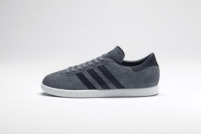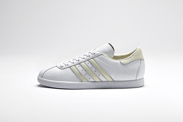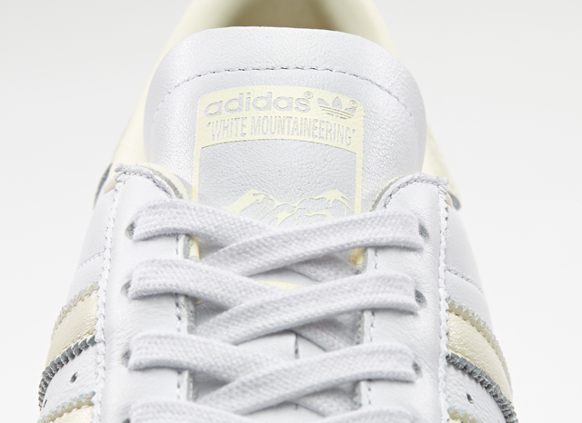 今回、新たに登場したスニーカーは2型。まず adidas Original のコアなファンからも熱い支持を集める名作「TOBACCO (タバコ)」。カラーは、落ち着いた印象のチャコールグレーとクリーンなホワイトの2色展開となっている。チャコールグレーのシューズには毛足の長いスエードをメインに採用し、ヒールパッチやスリーストライプスにはヌバックを用いた。素材感の違いが生み出す濃淡が White Mountaineering らしさを再現している。また、ホワイトカラーのシューズは適度なシボと柔らかさのある高品質なスムースレザーをベースに、ヒールパッチには生成りを用いオーセンティックな雰囲気に仕上がっている。
